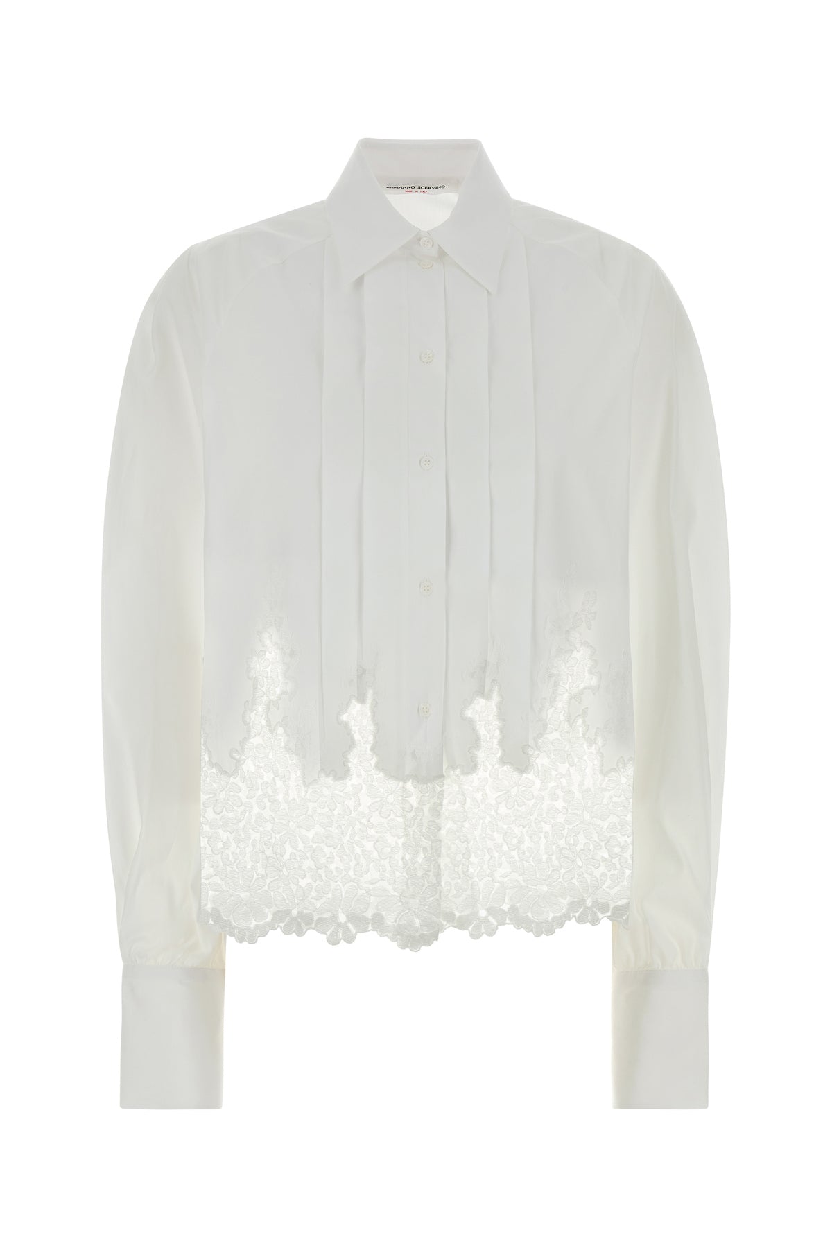 Shirt realized in pure cotton poplin characterized by tonal floral embroidery on the hemline.