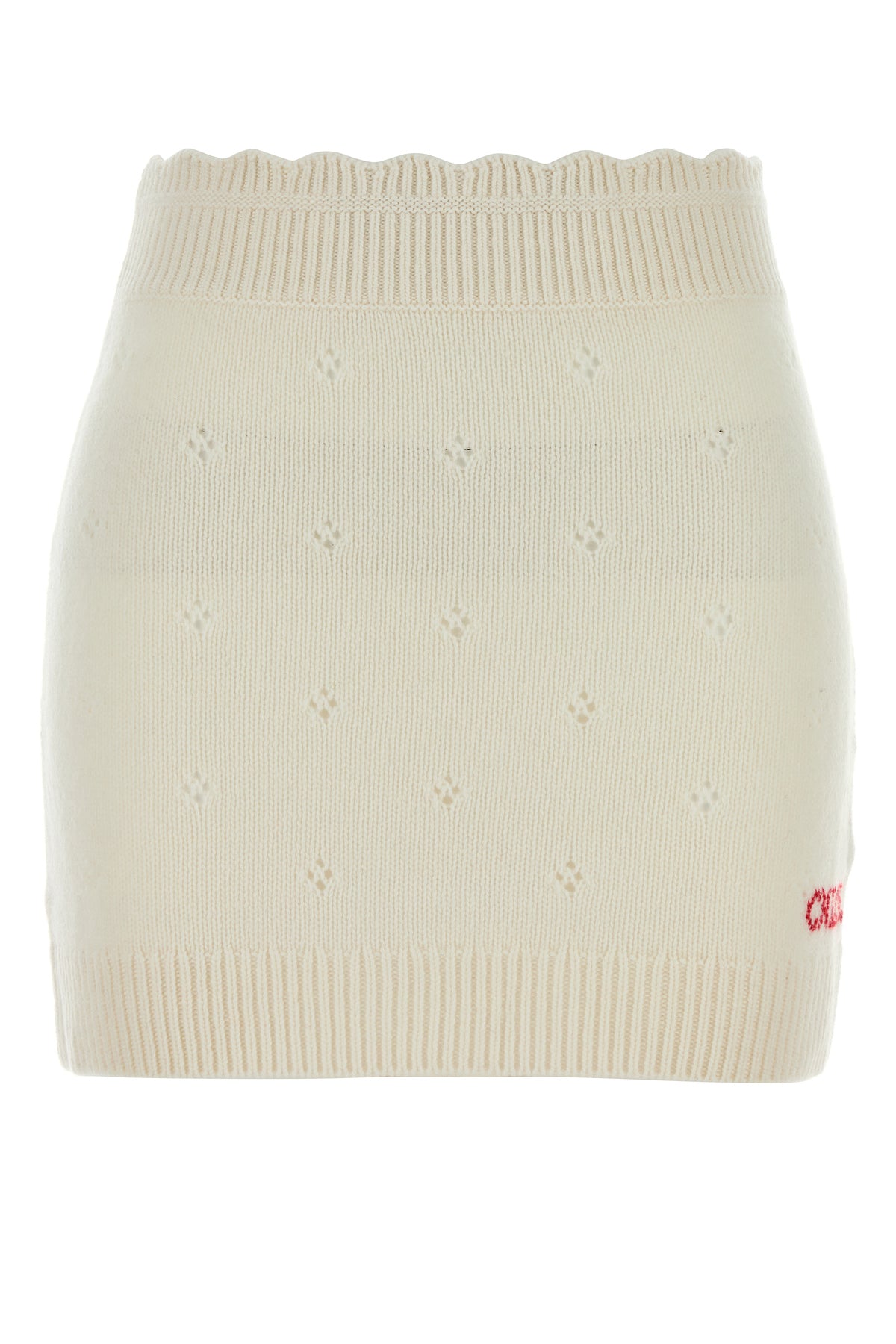 Mini skirt realized in wool and cashmere characterized by peculiar embroideries on the entire surface and embroidered logo on the hemline.
