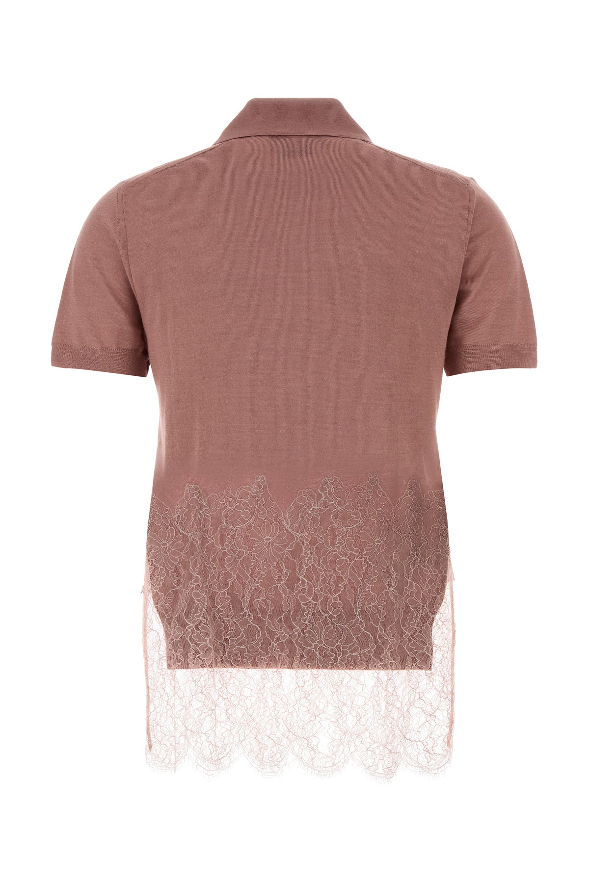 Polo shirt realized in cashmere blend with lace insert on the hemline.