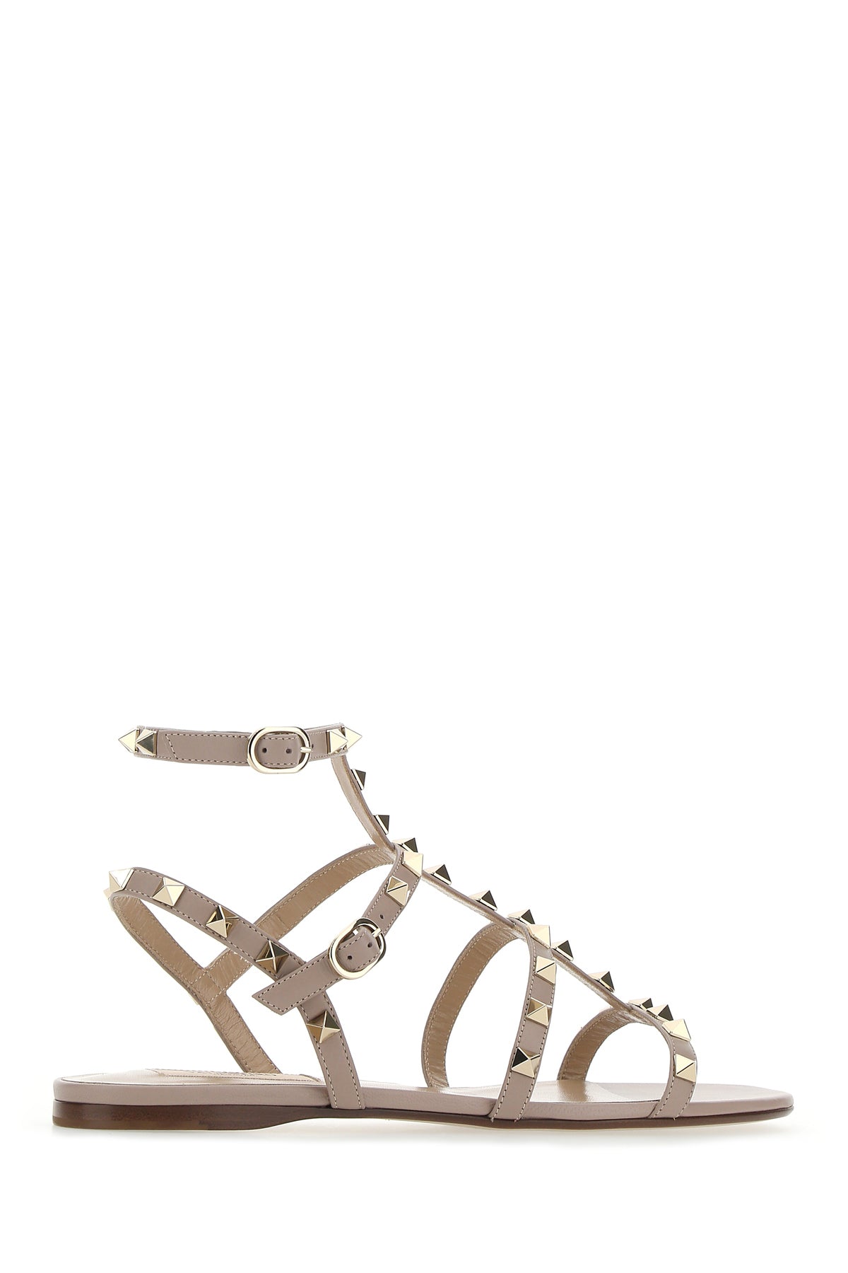 Sandals realized in smooth calf leather enriched by metal studs on the entire surface.