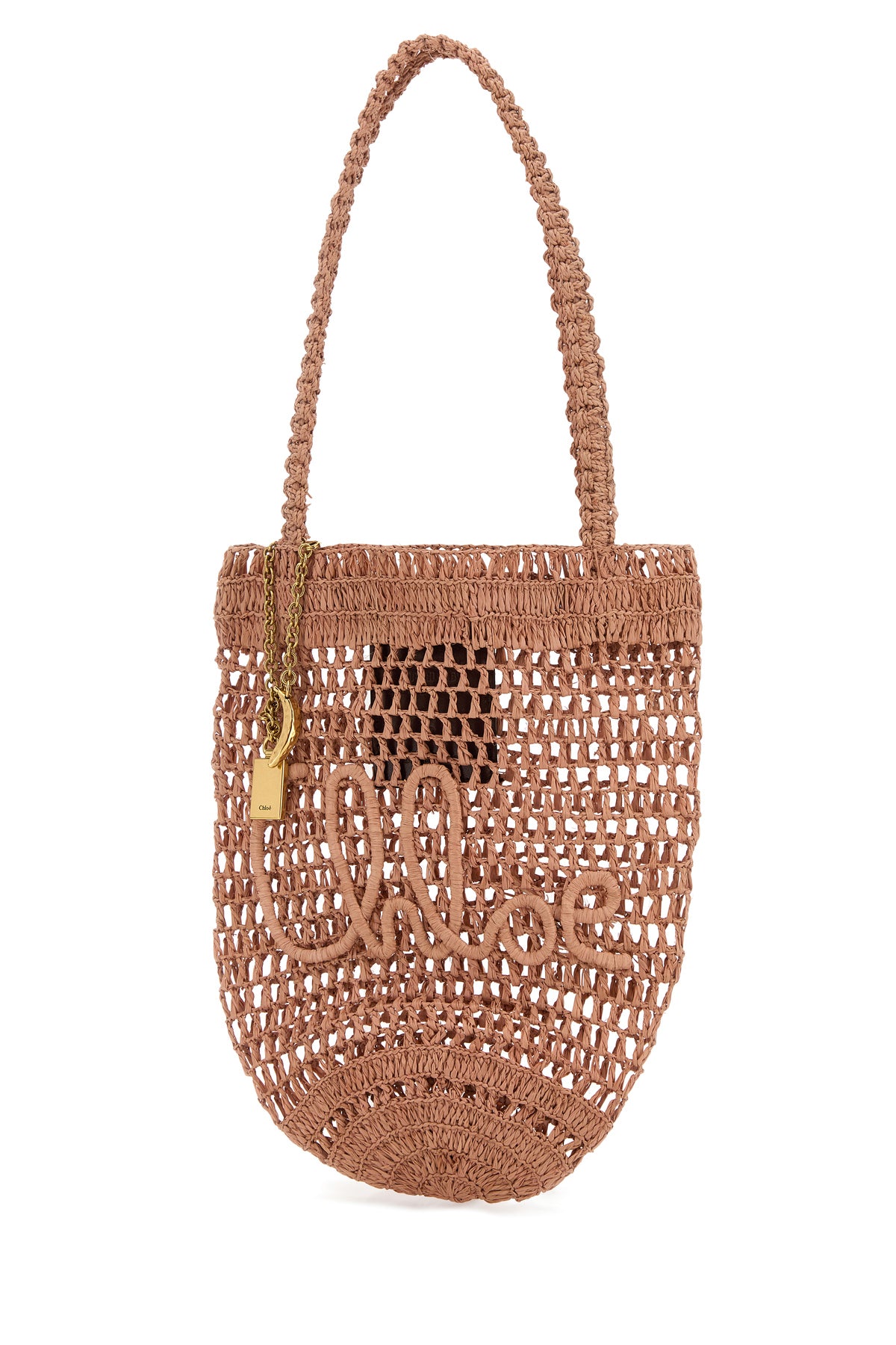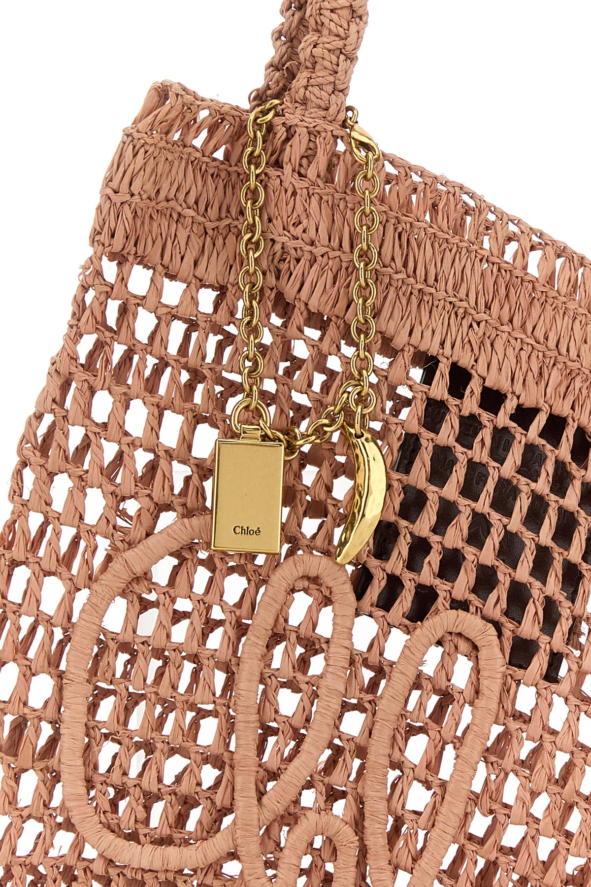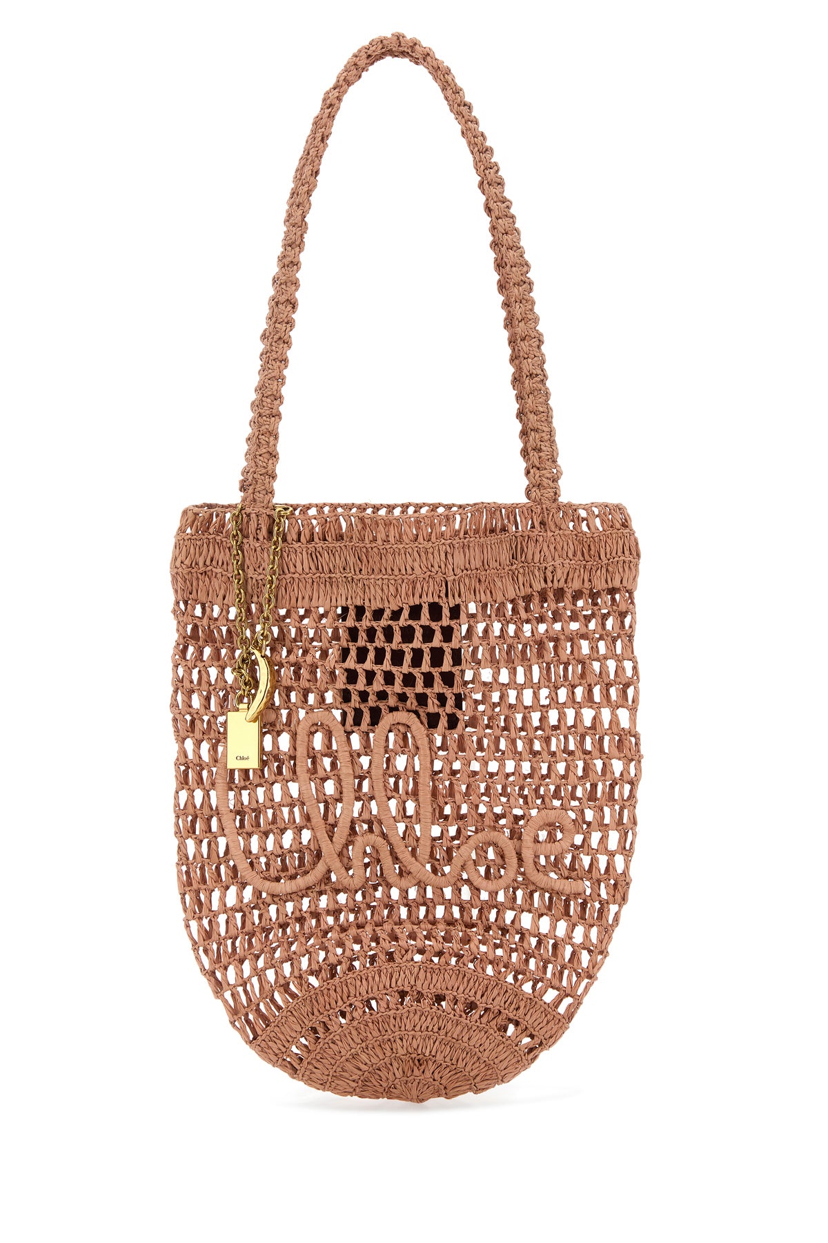 Shopping bag realized in woven raffia characterized by Chloé embroidery at the front enriched by detachable logoed charm.