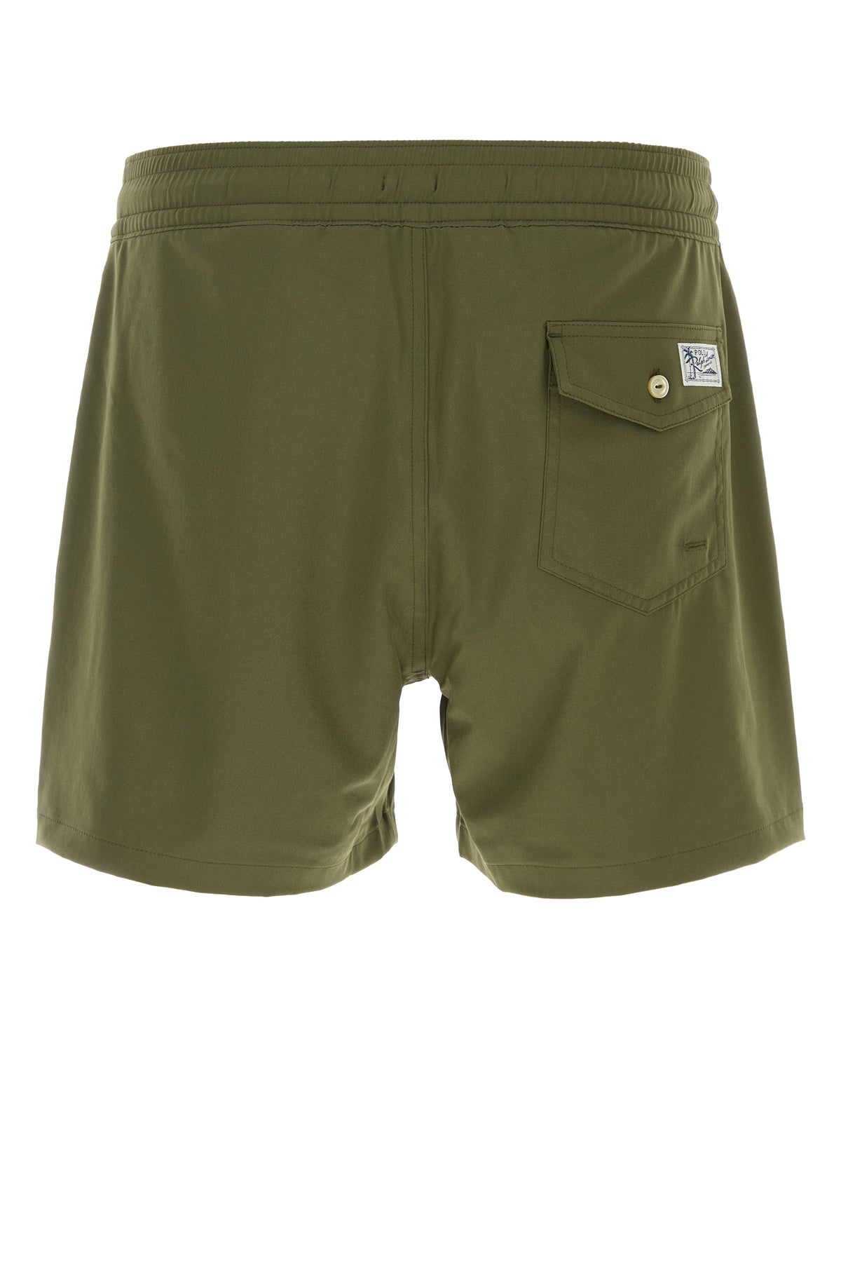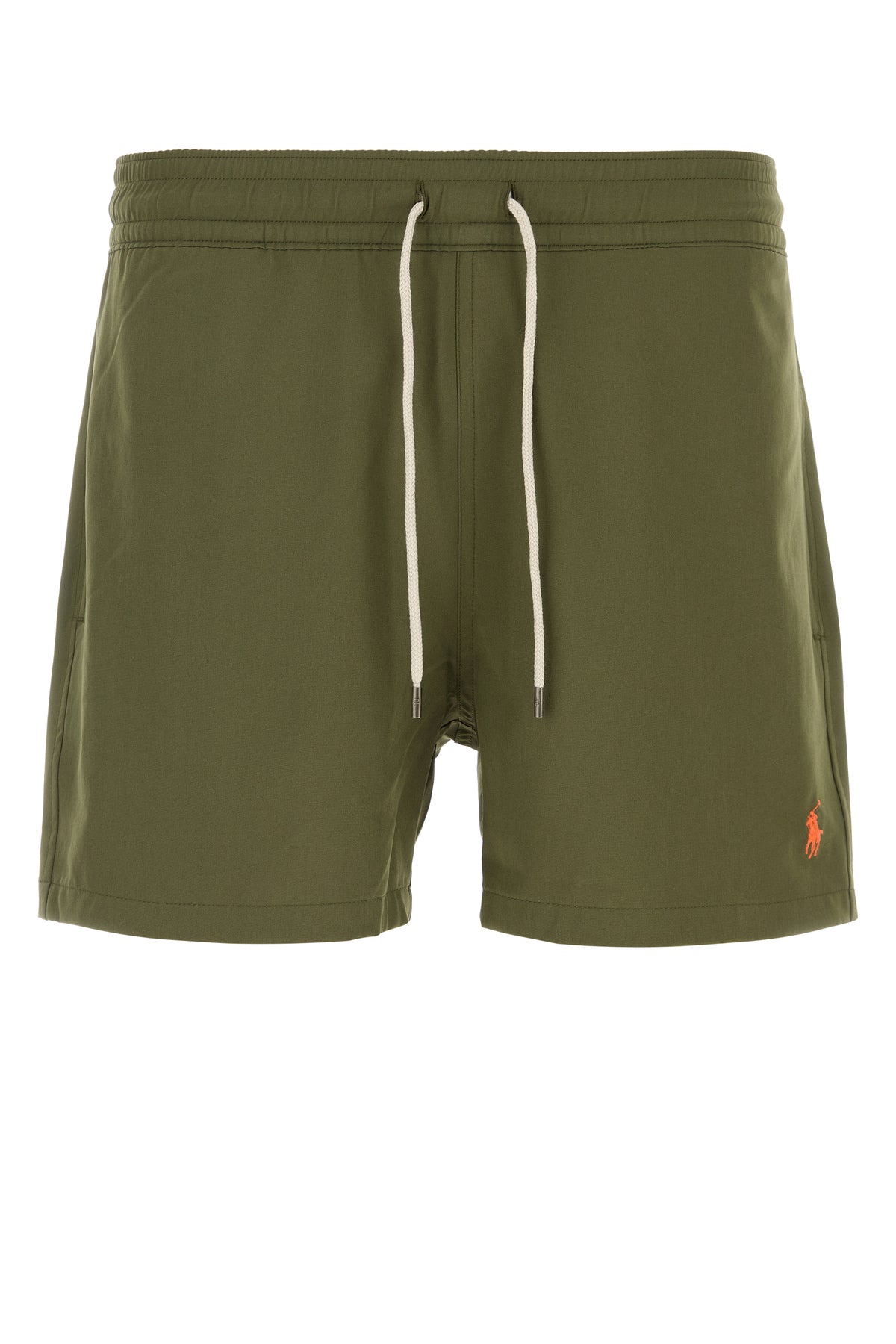 Army green stretch polyester swimming shorts