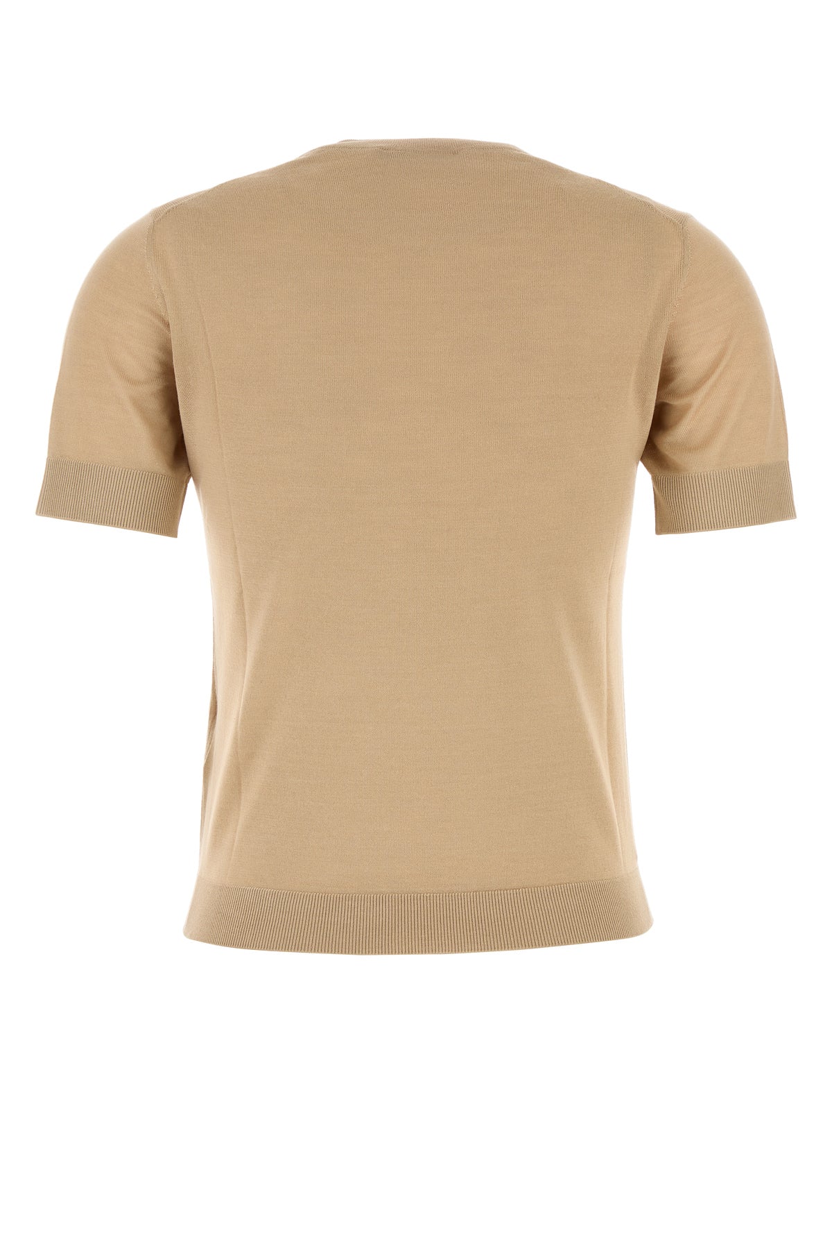 Short-sleeves sweater realized in cashmere and silk characterized by contrasting embroidered logo on the chest.
