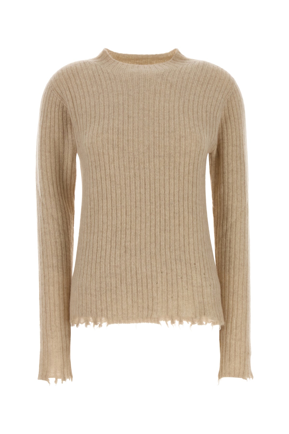 Sweater realized in pure ribbed cashmere characterized by distressed effect cuffs and hemline.