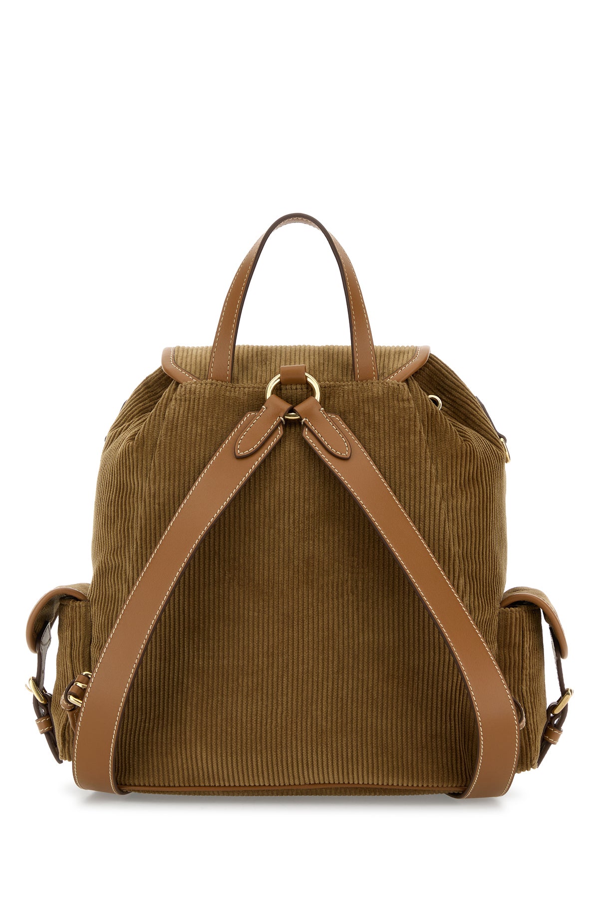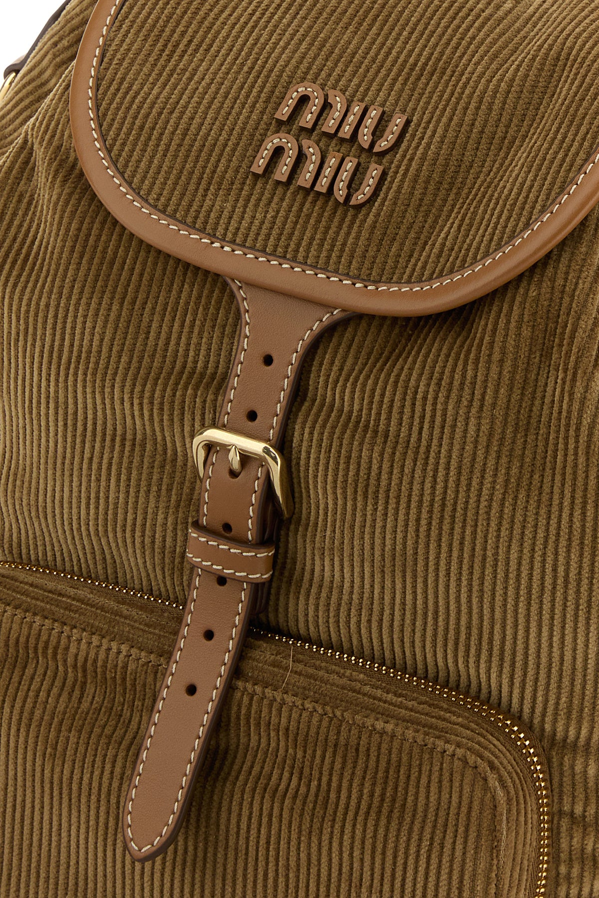 Backpack realized in corduroy enriched by logoed patch at the front.