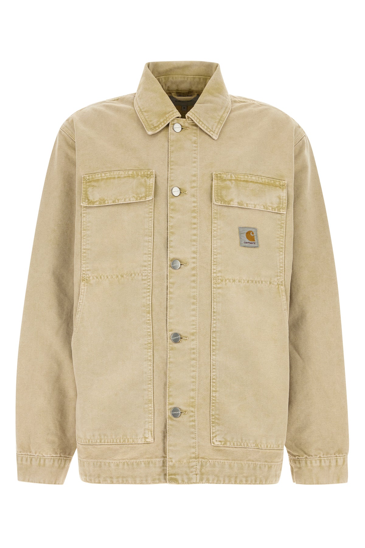 Jacket realized in pure cotton denim enriched by contrasting logoed label on the chest.