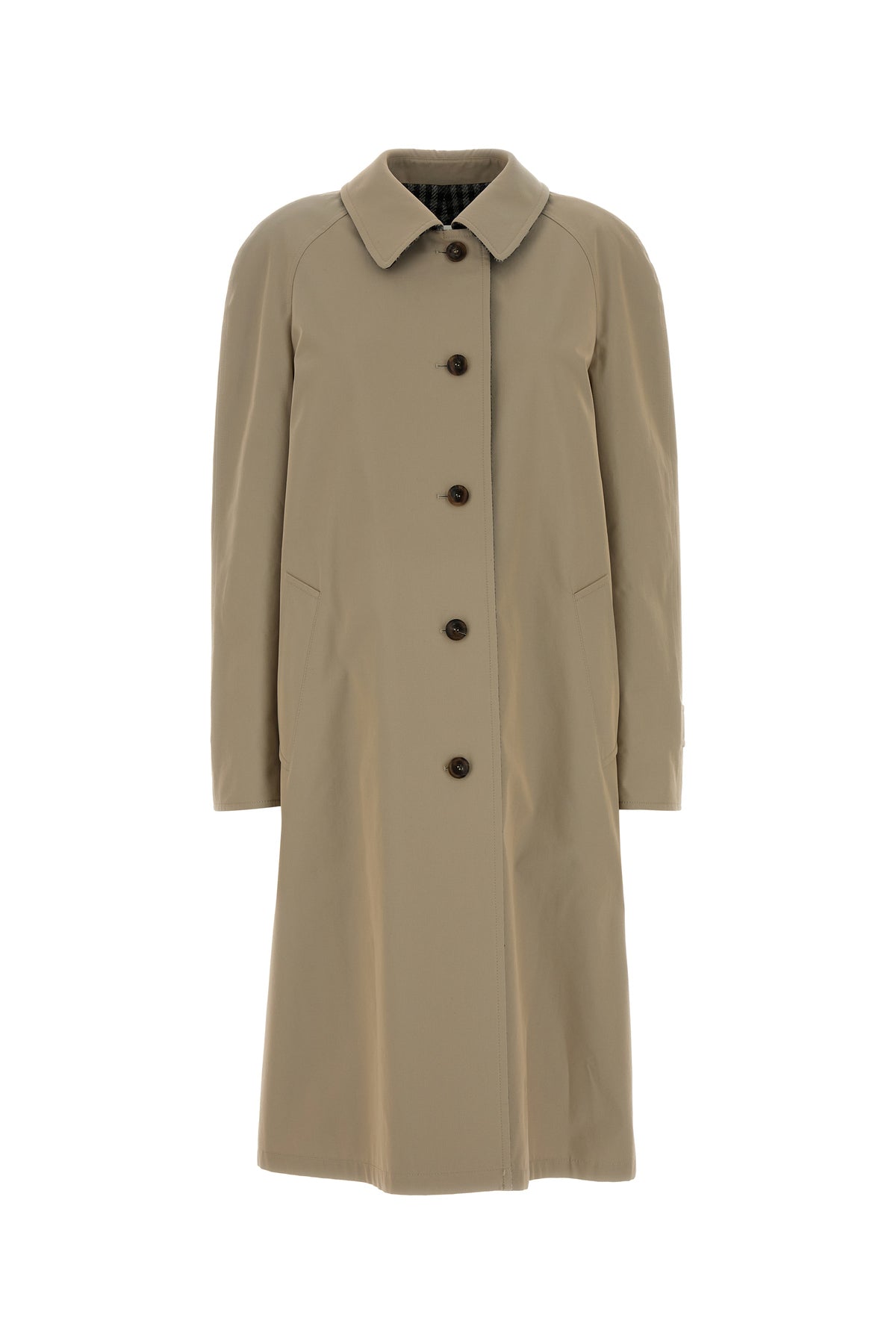 Reversible trench coat realized in pure cotton gabardine enriched by logoed patch at the back.