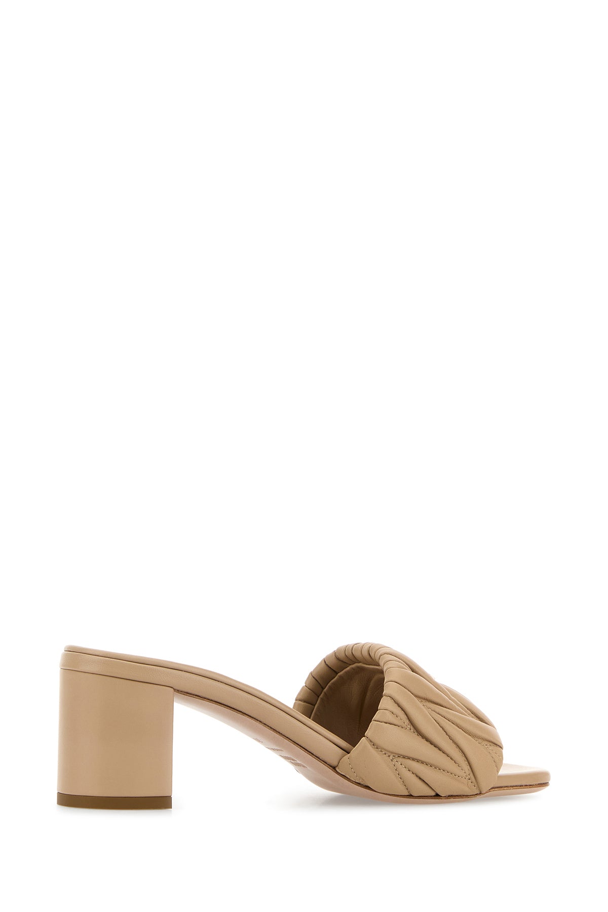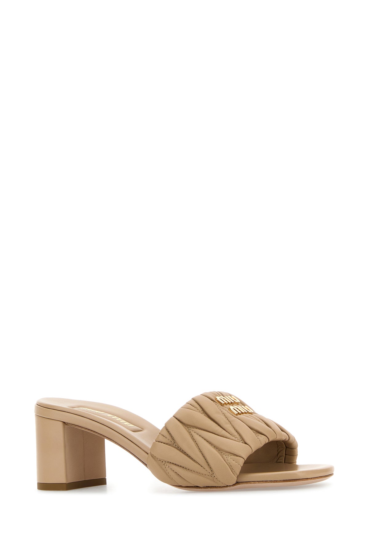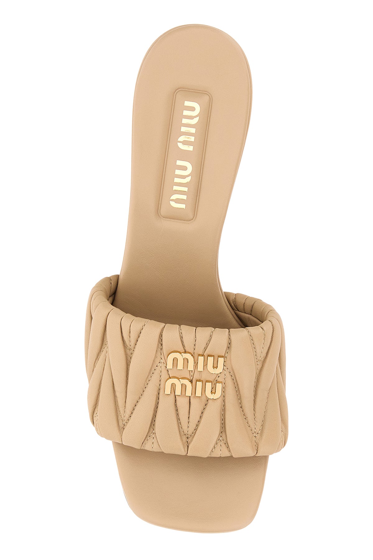Mules realized in matelasse nappa leather enriched by metal lettering logo on the instep.
