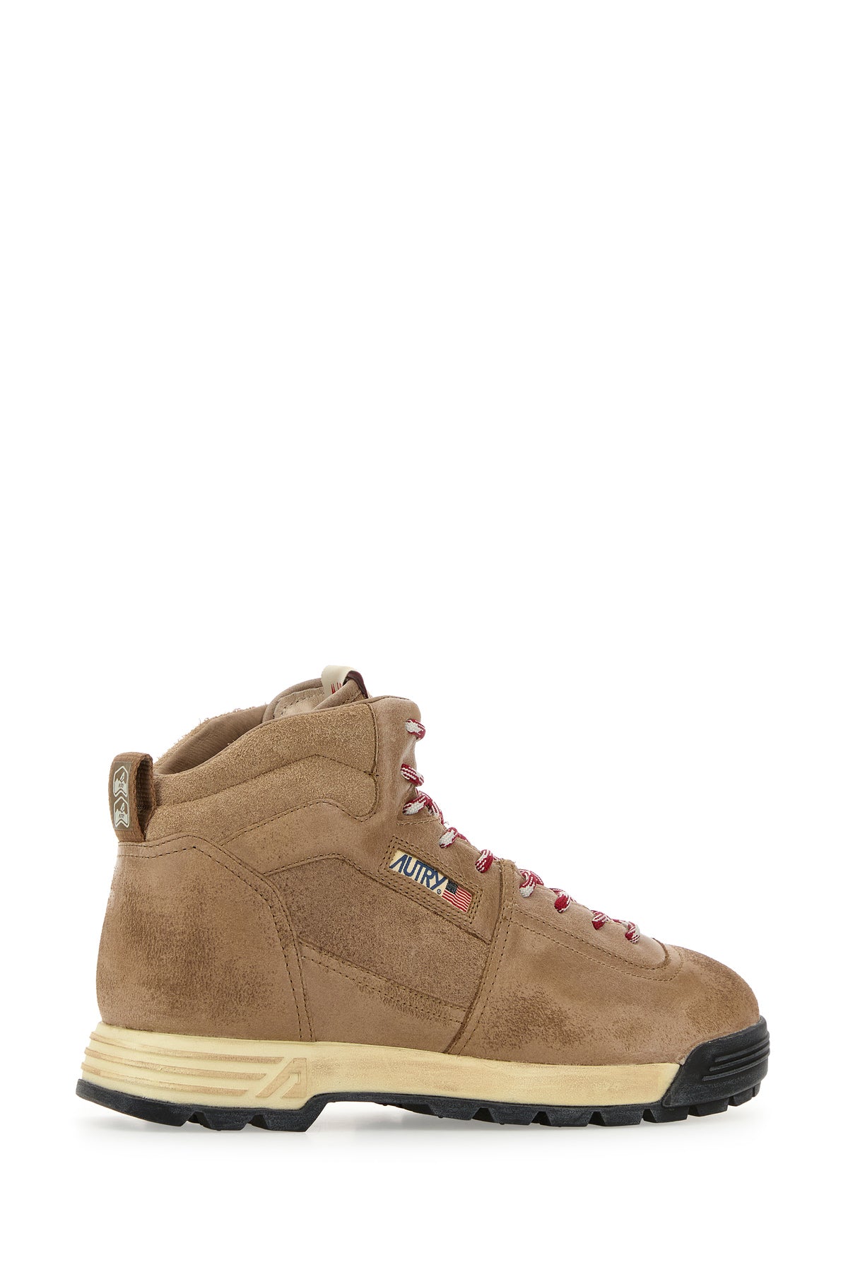 Ankle boots realized in suede enriched by contrasting logoed label on the side.