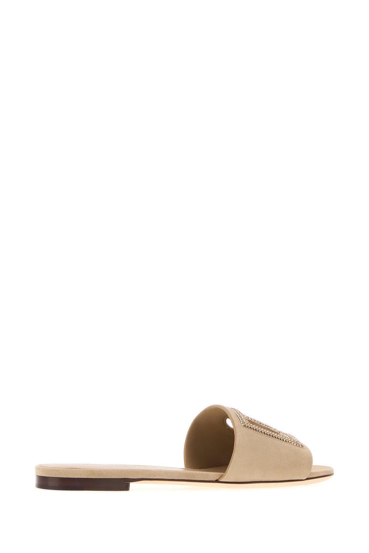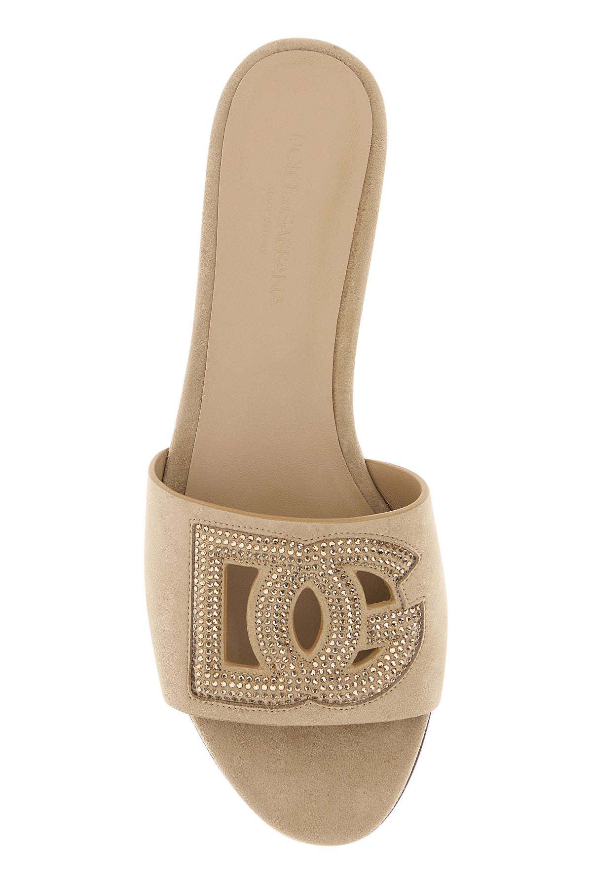 Slippers realized in suede characterized by DG motif with rhinestones on the instep.
