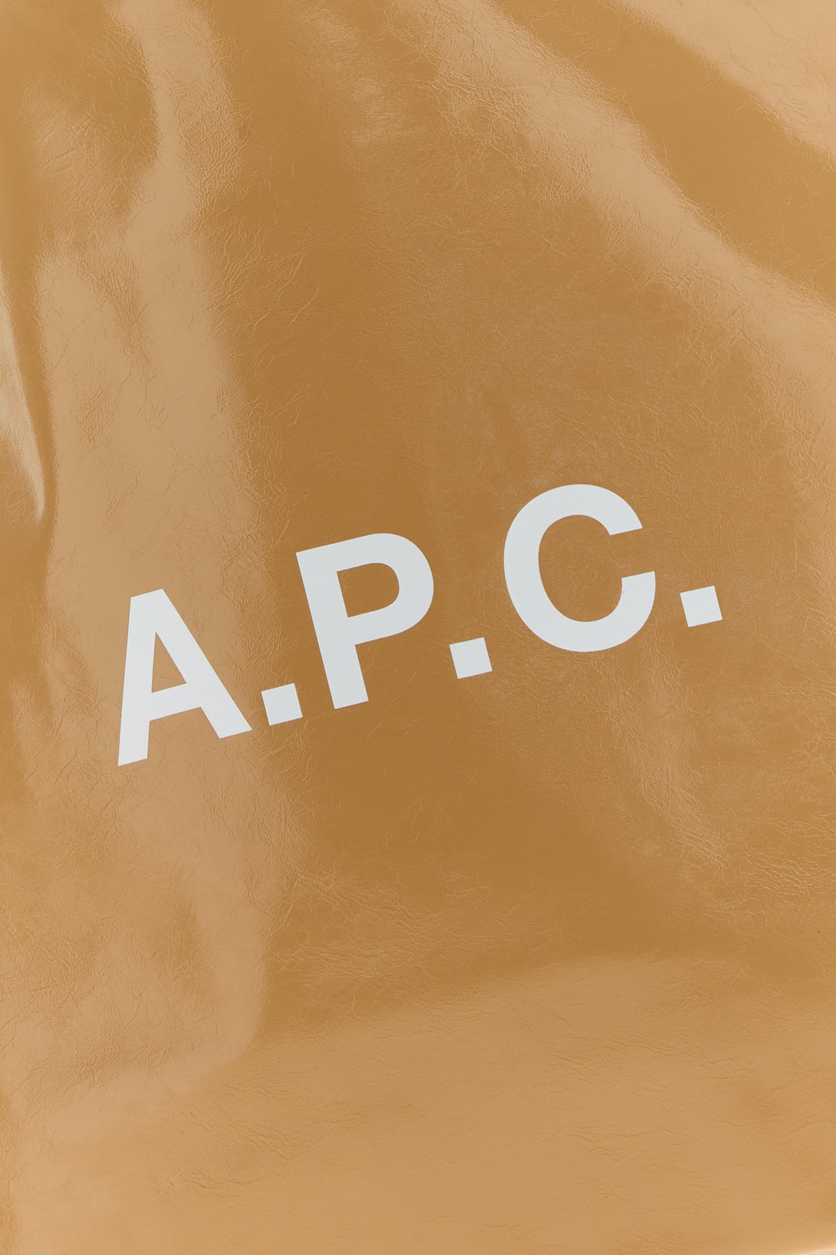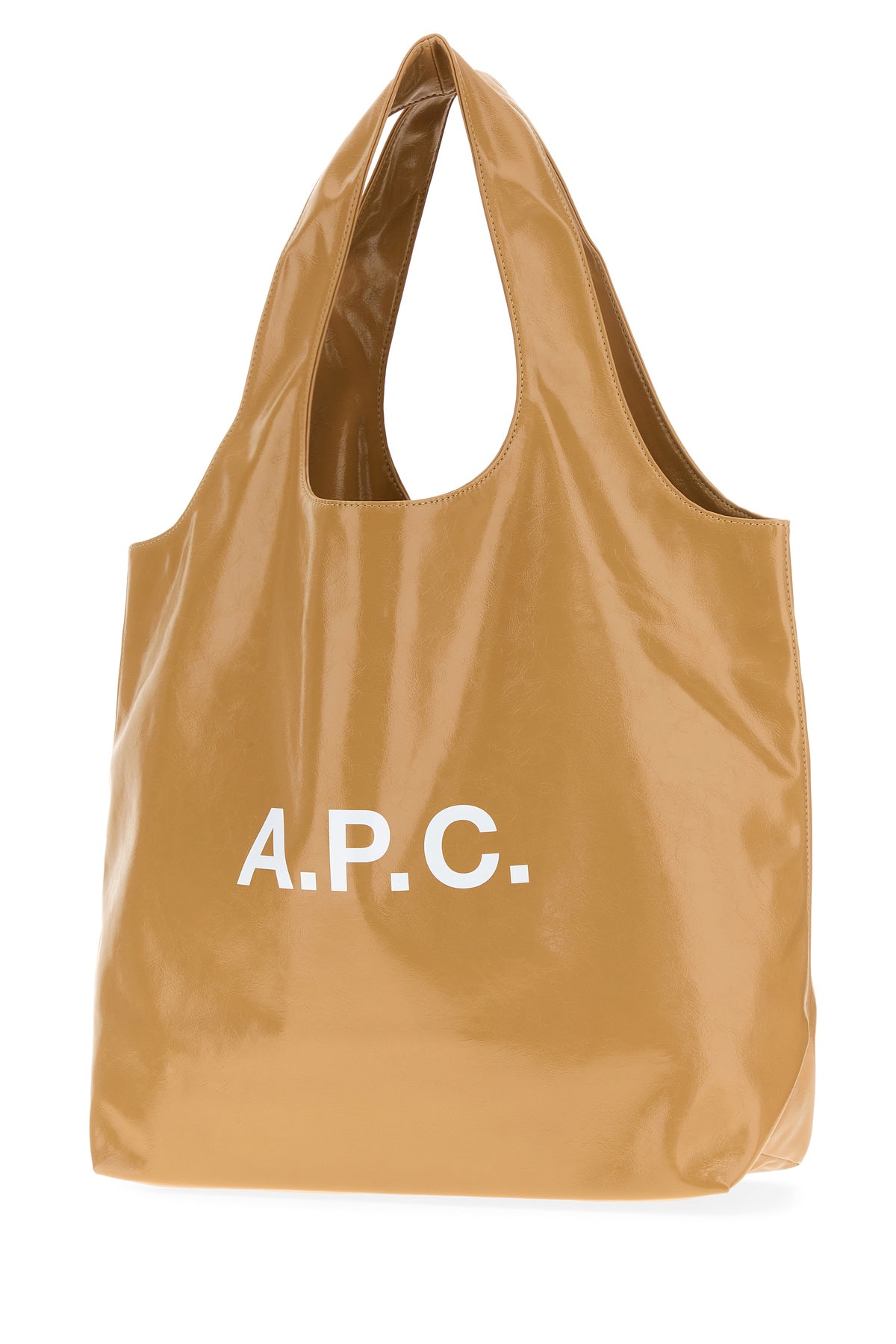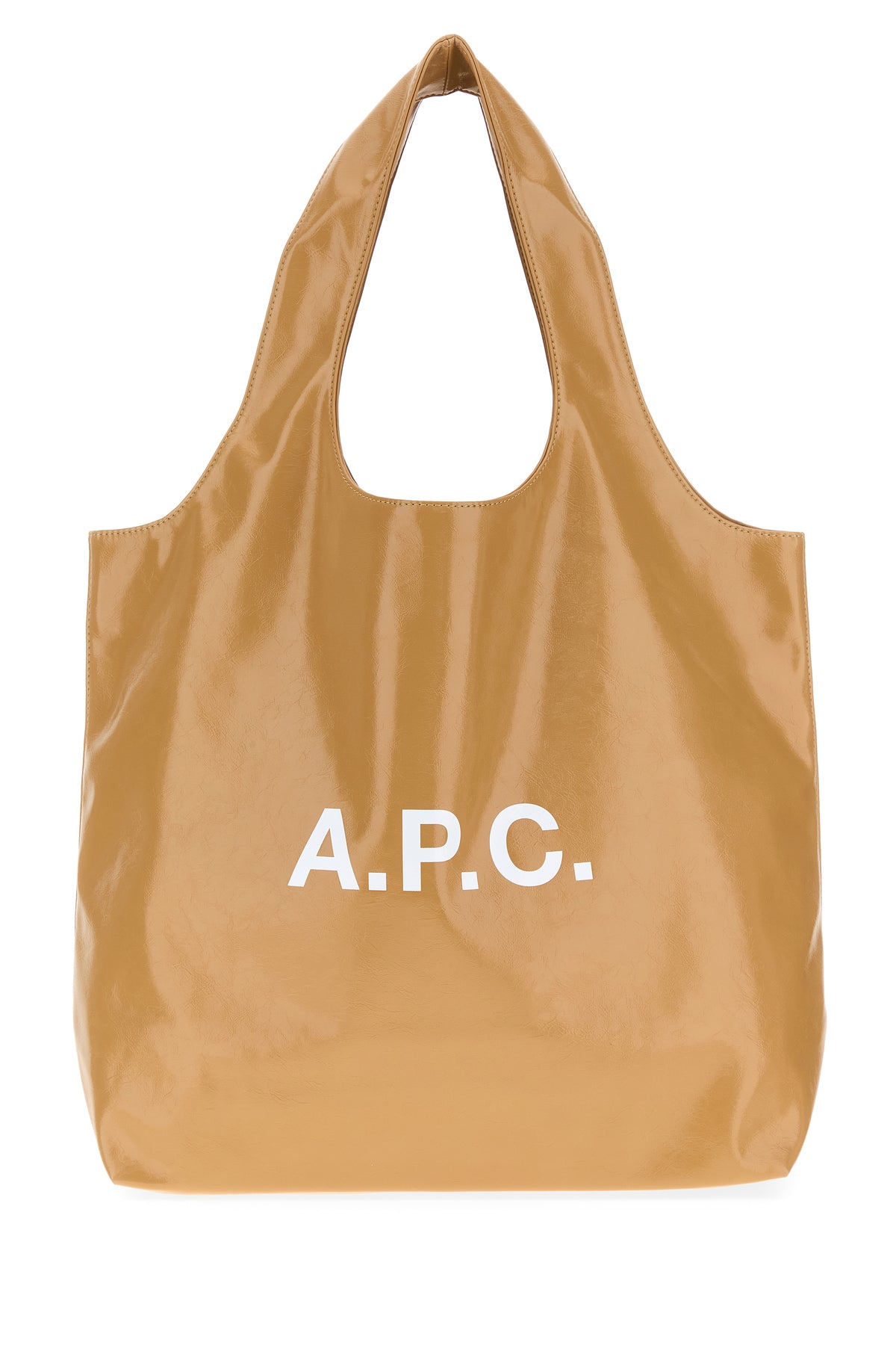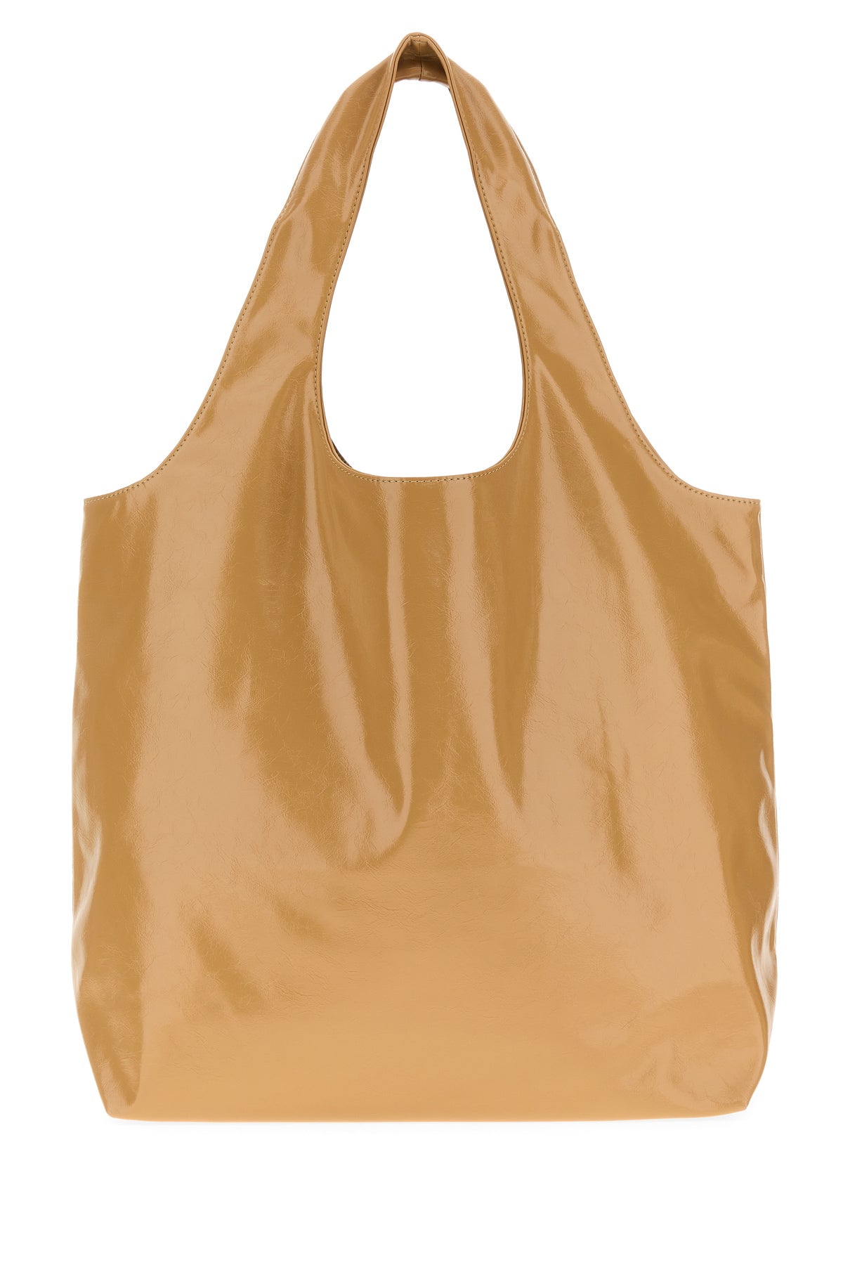 Shopping bag realized in polished finish embossed synthetic leather characterized by contrasting printed logo at the front.