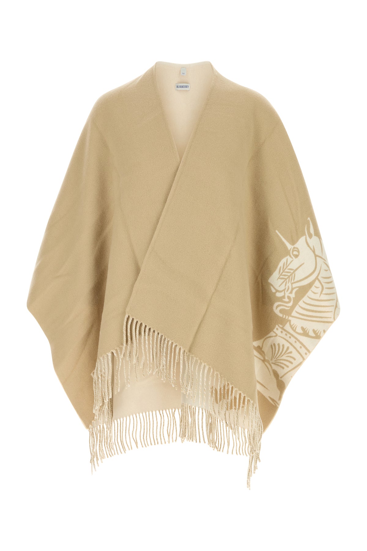 Cape realized in wool and cashmere characterized by Equestrian Knight embroidery on the side.