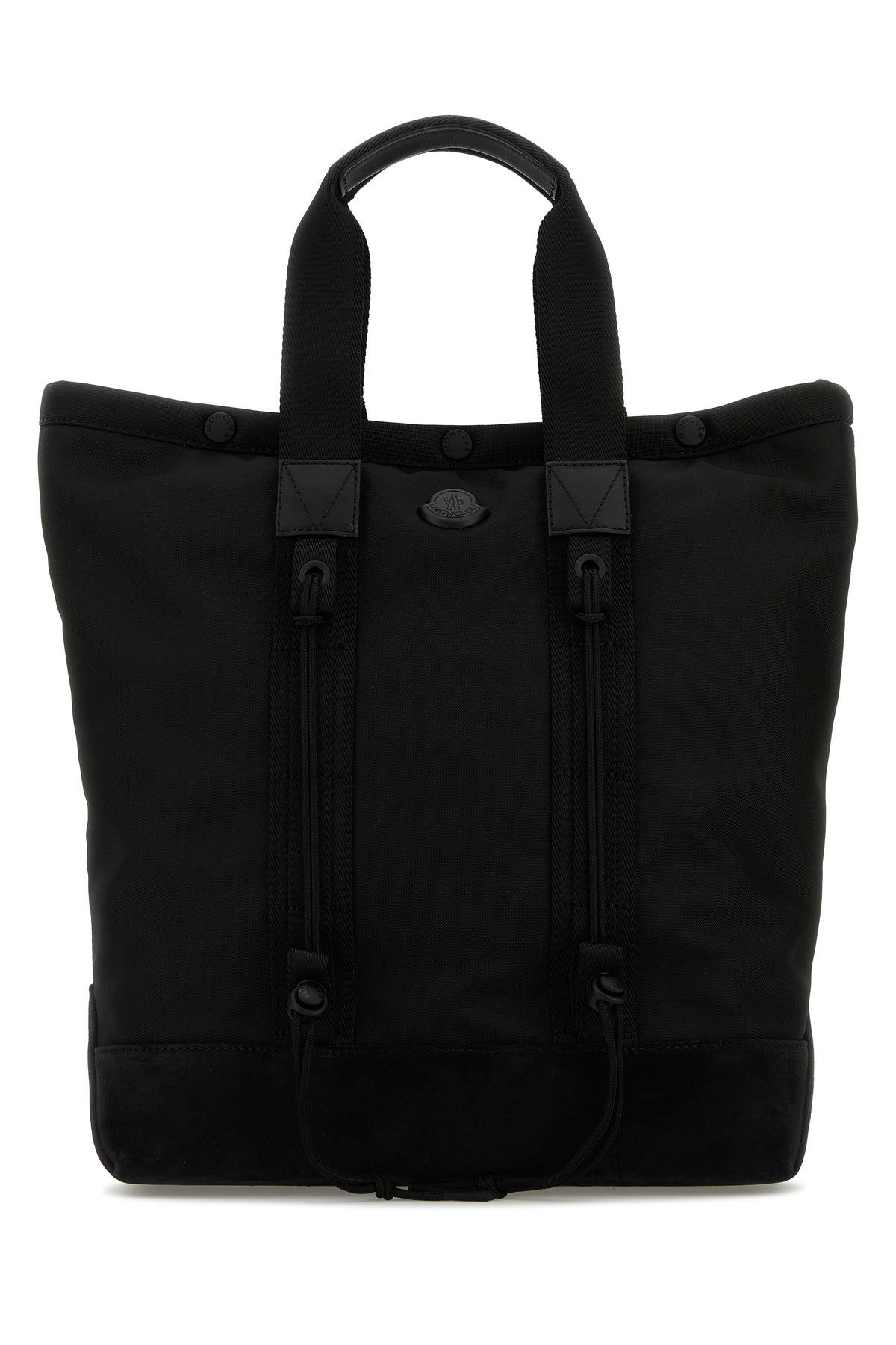 Shopping bag realized in canvas with suede insert on the hemline enriched by tonal logoed patch at the front.