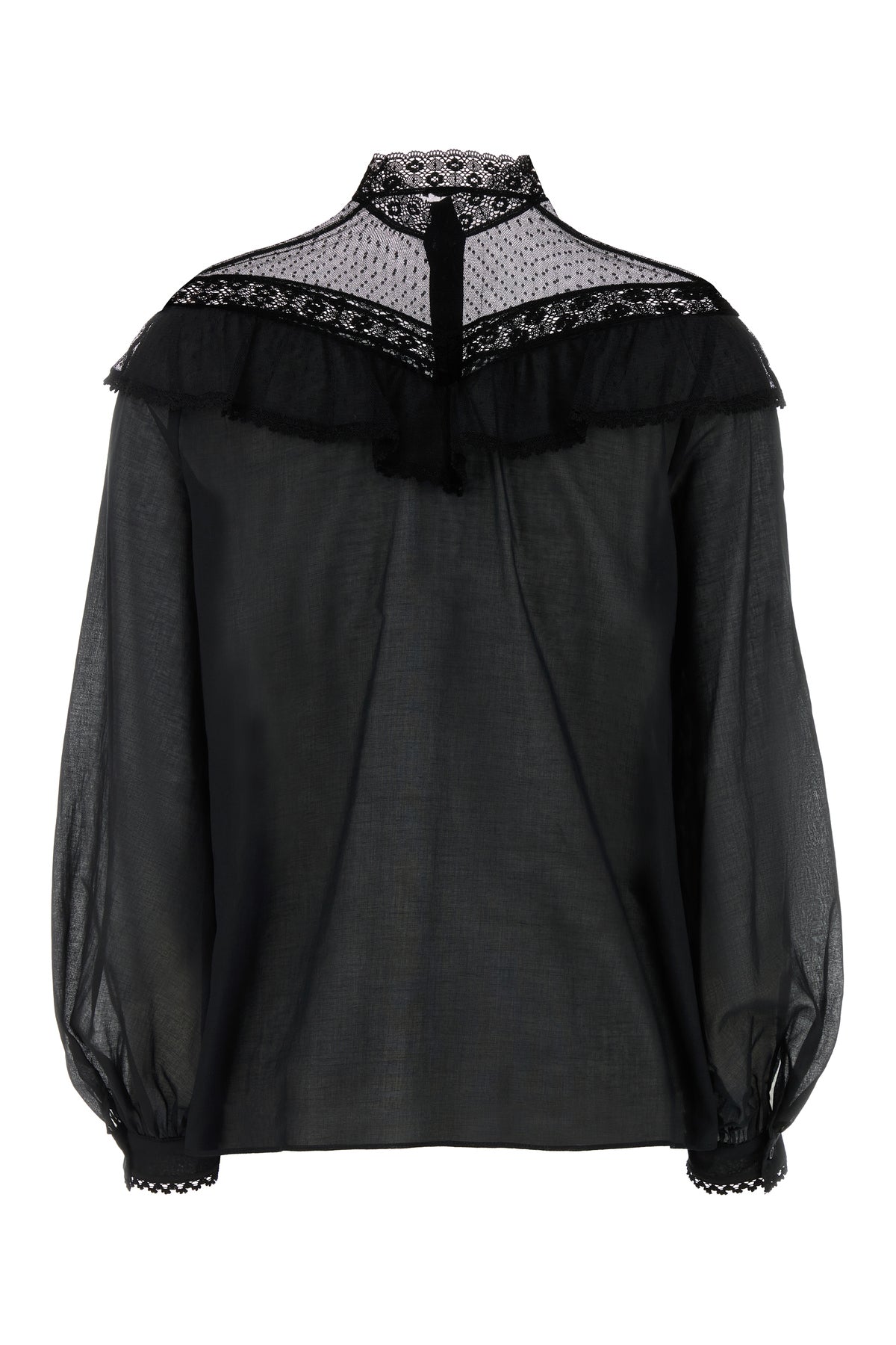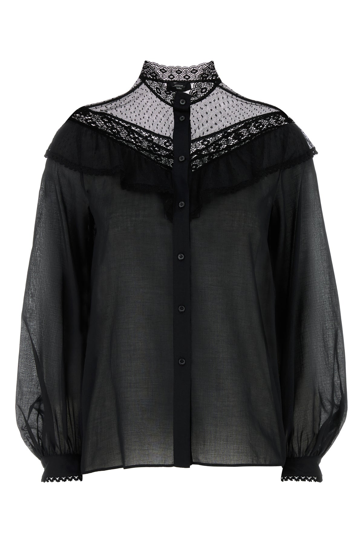 Shirt realized in pure cotton with lace insert at the top.