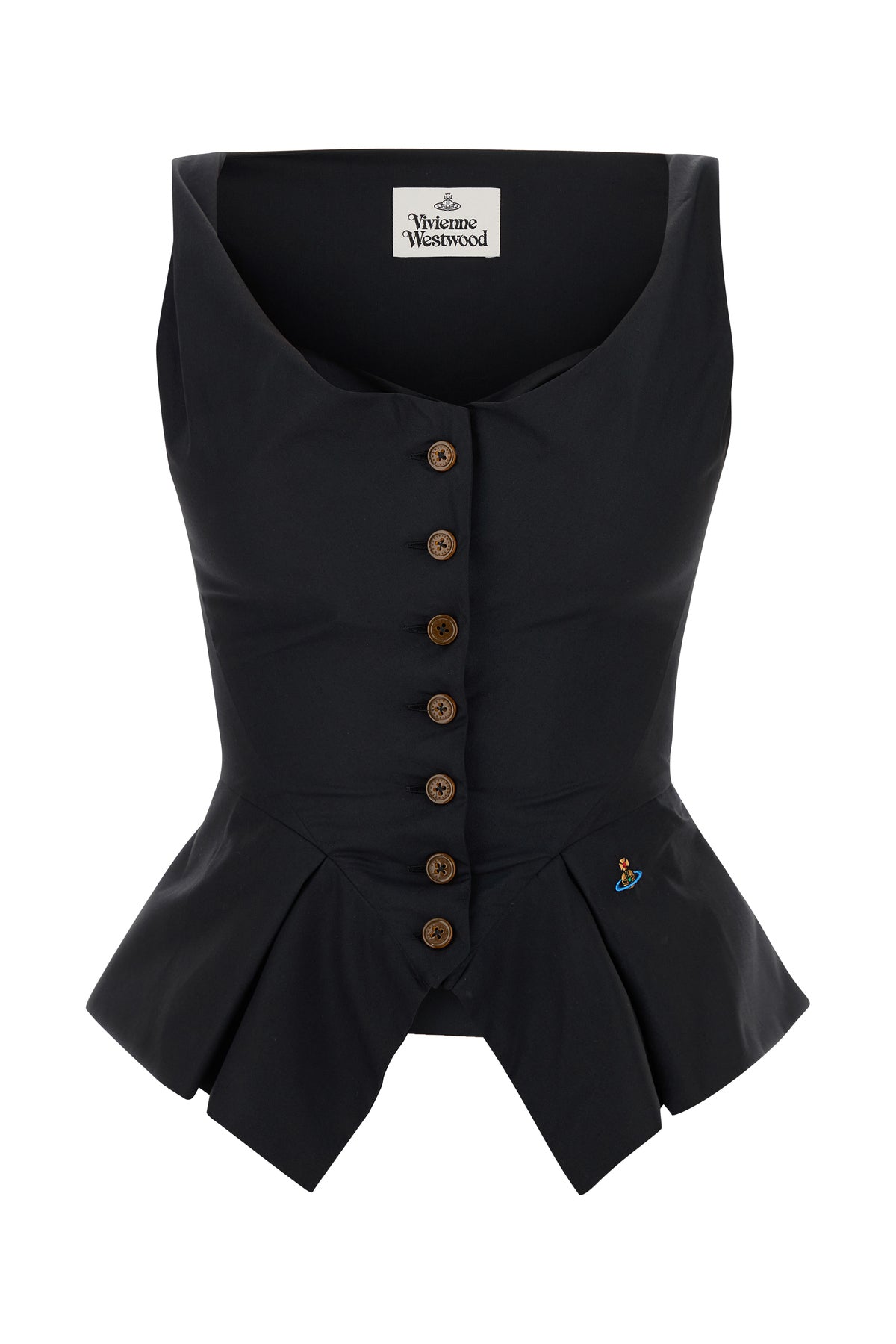 Vest realized in pure cotton characterized by contrasting Orb embroidery on the hemline.