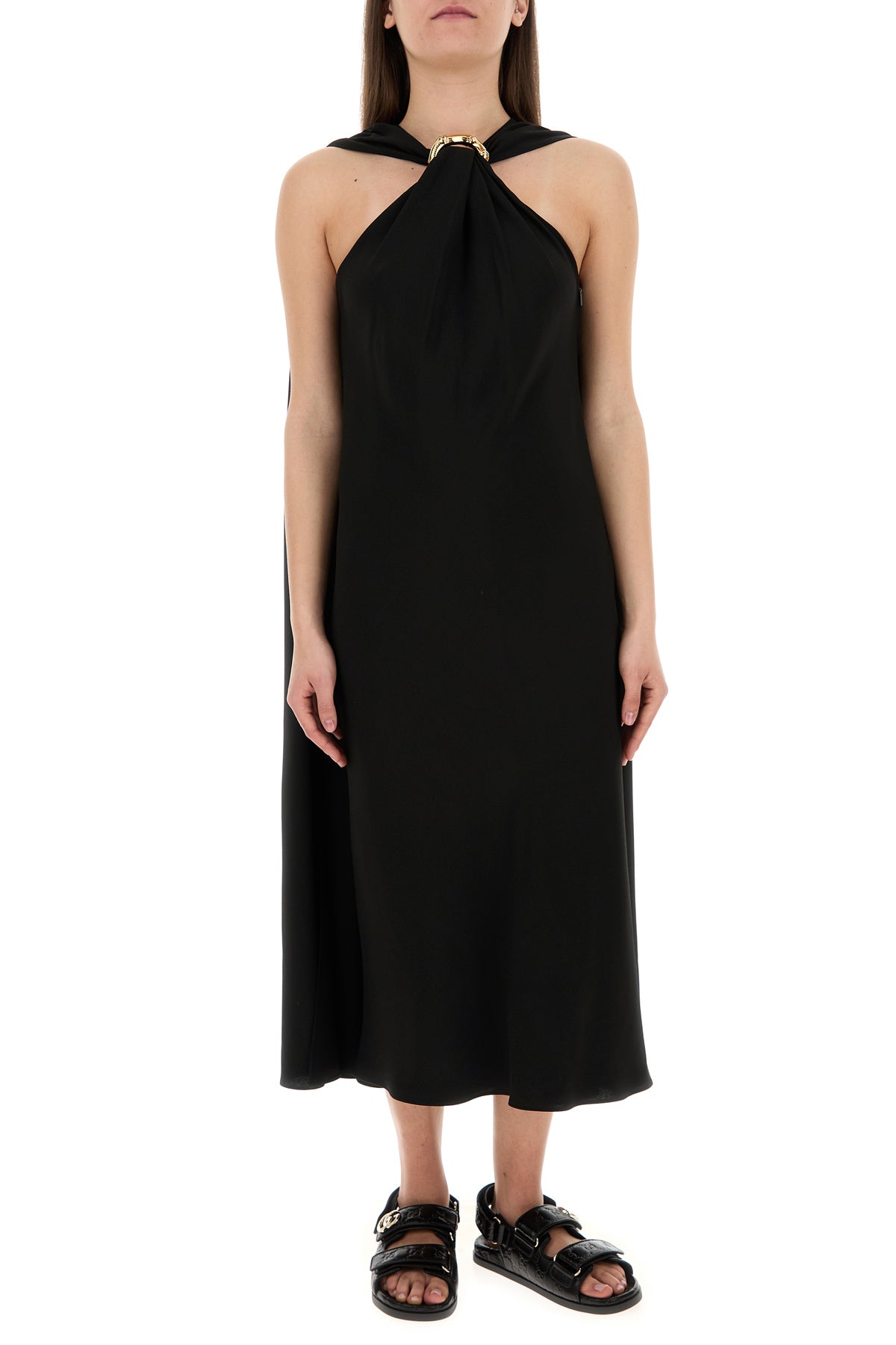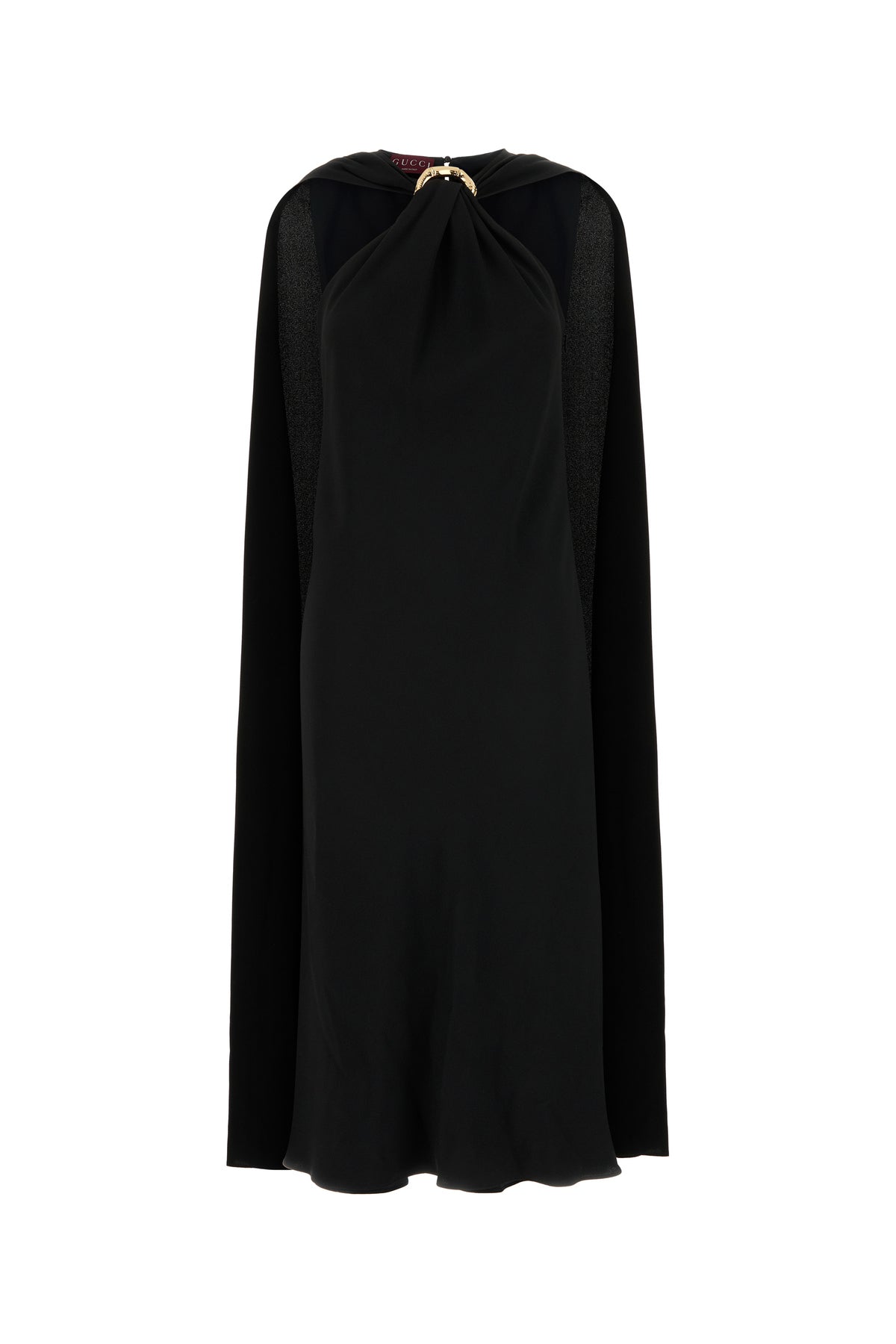 Midi-length dress realized in crepe enriched by metal Gucci Bamboo insert at the top and tonal fabric panel at the back.