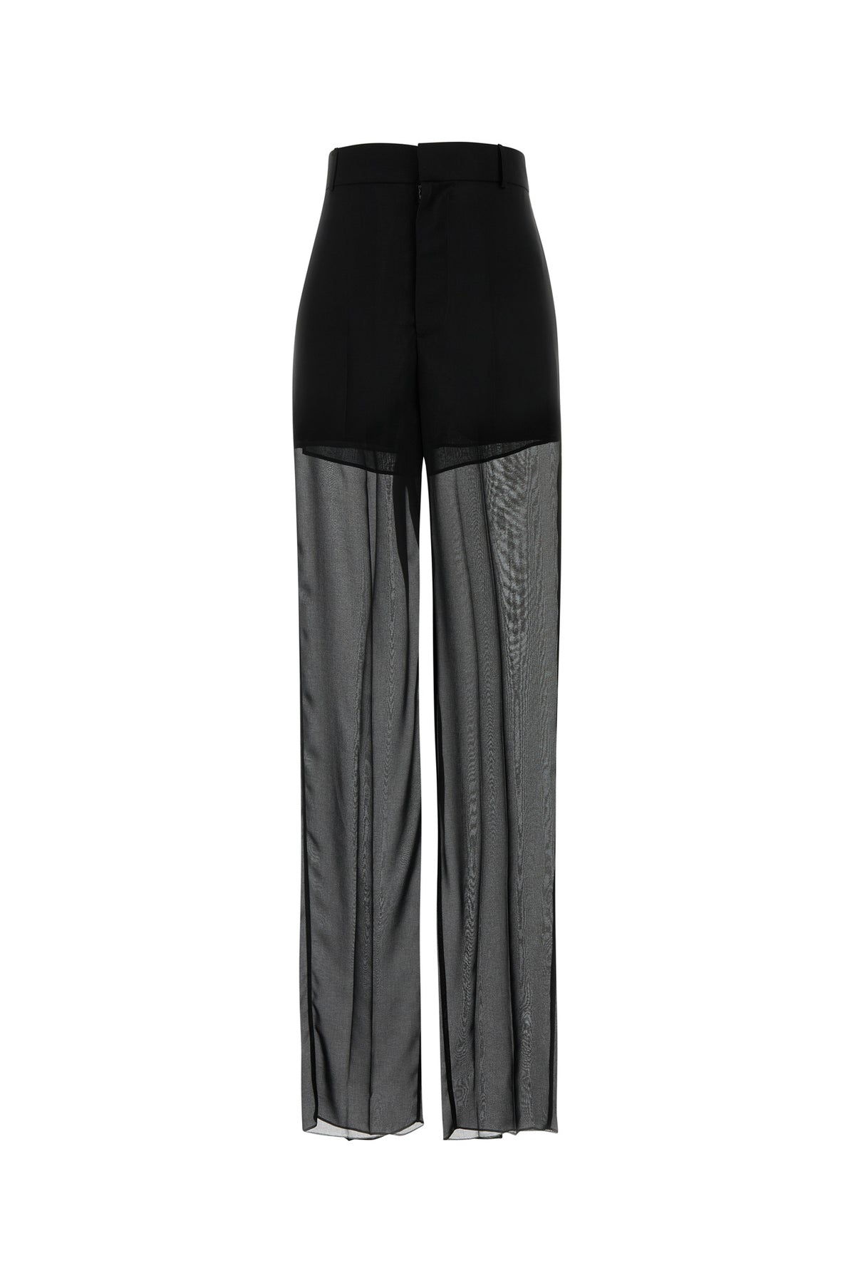 Semi-transparent pant realized in crepe characterized by central ironed pleats.