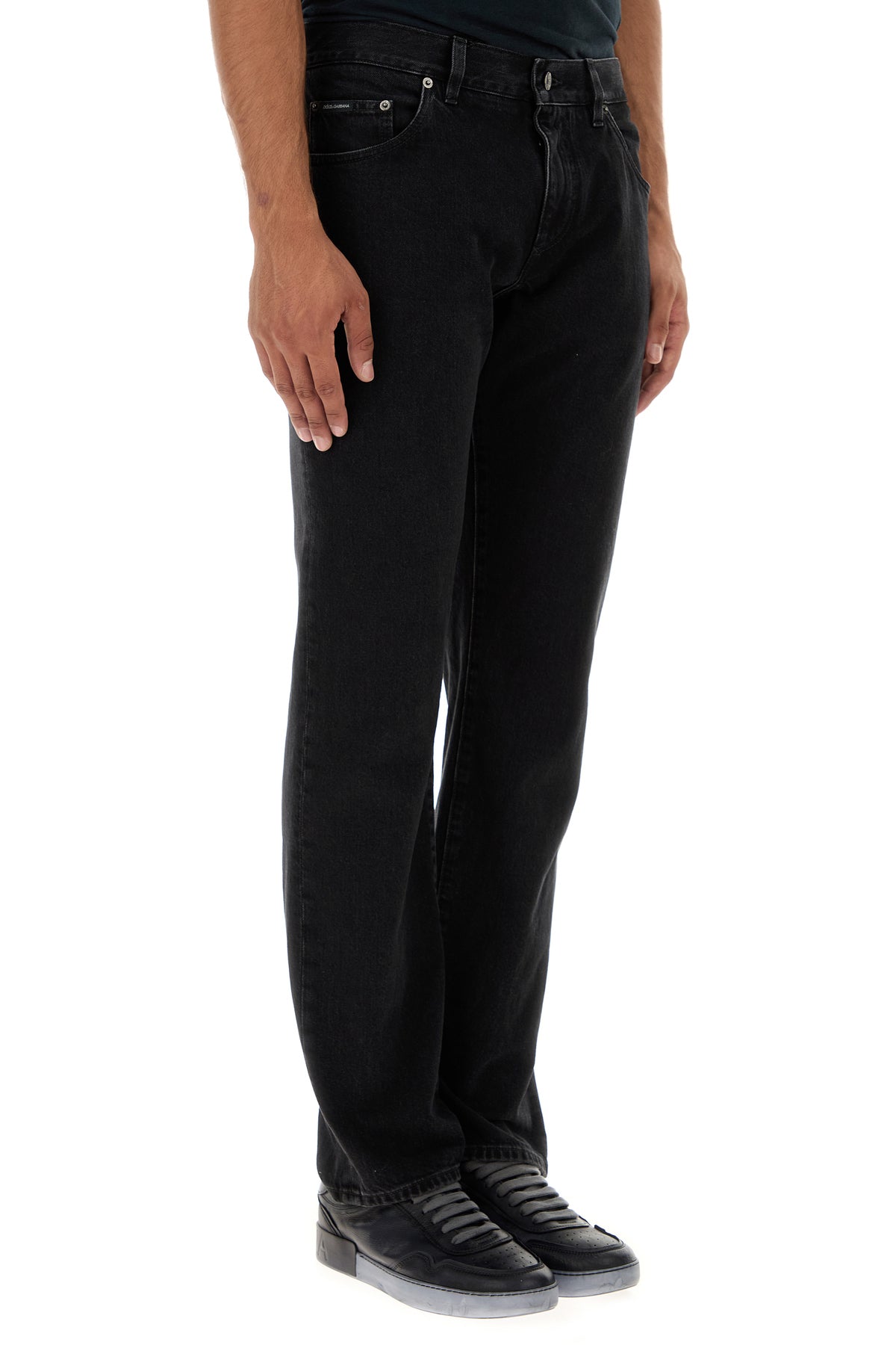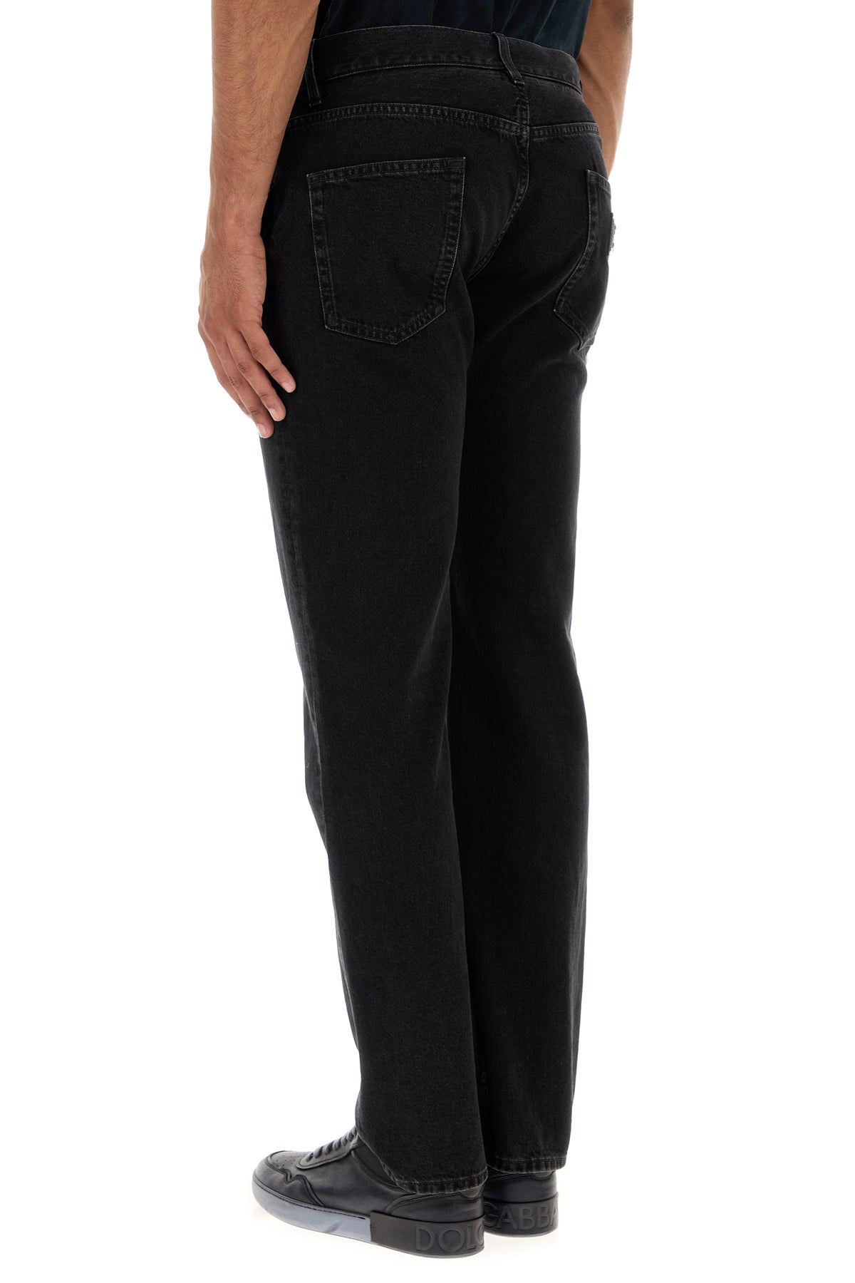 Jeans realized in pure cotton denim enriched by metal logoed plate at the back.