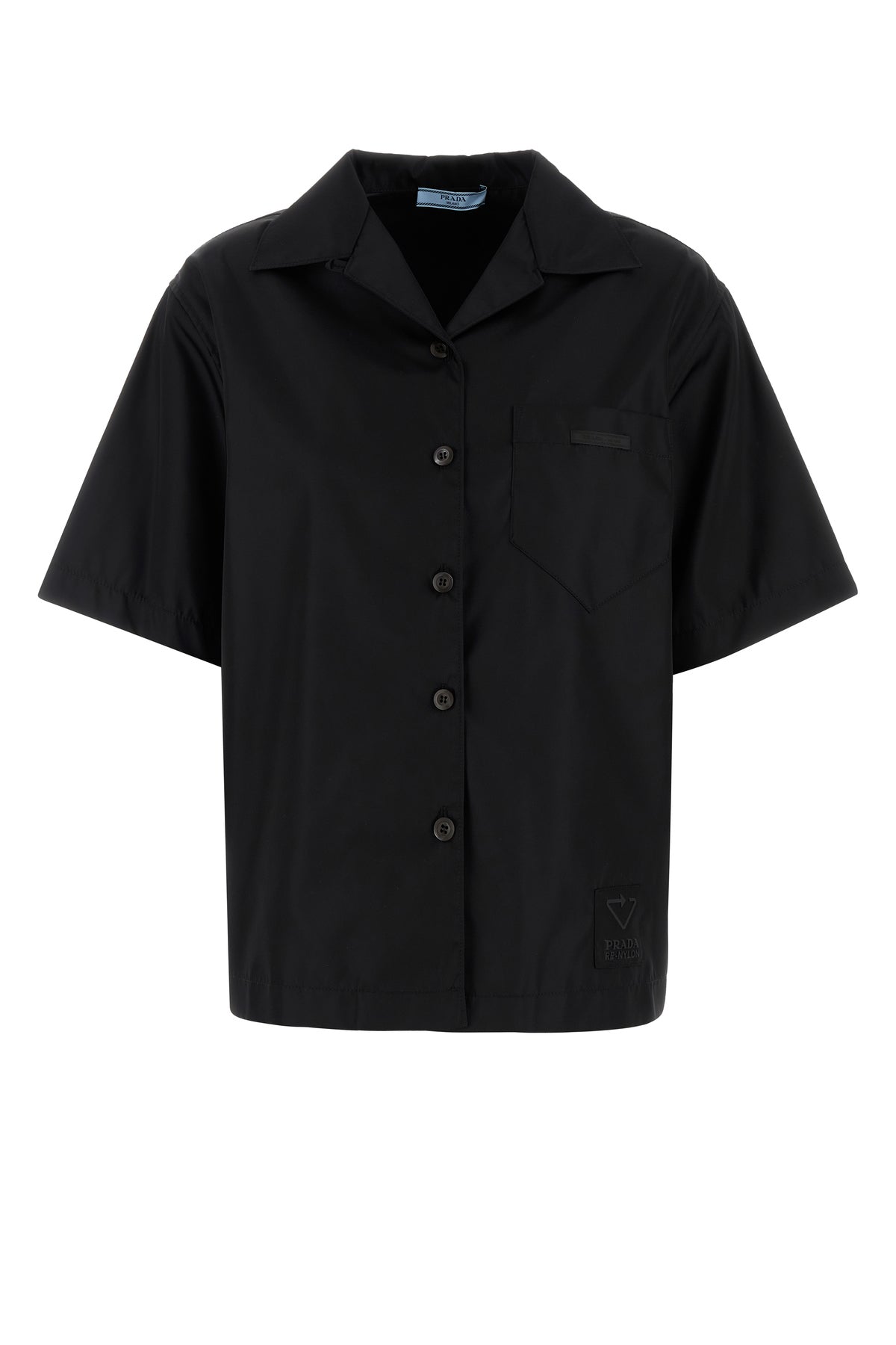 Short-sleeves shirt realized in gabardine enriched by logoed patch on the hemline.
