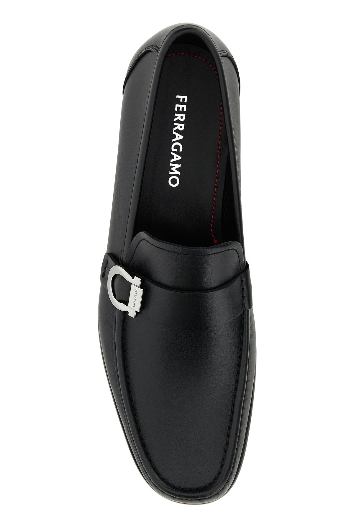 Loafers realized in slightly pebble calf leather enriched by Gancini metal detail on the vamp.