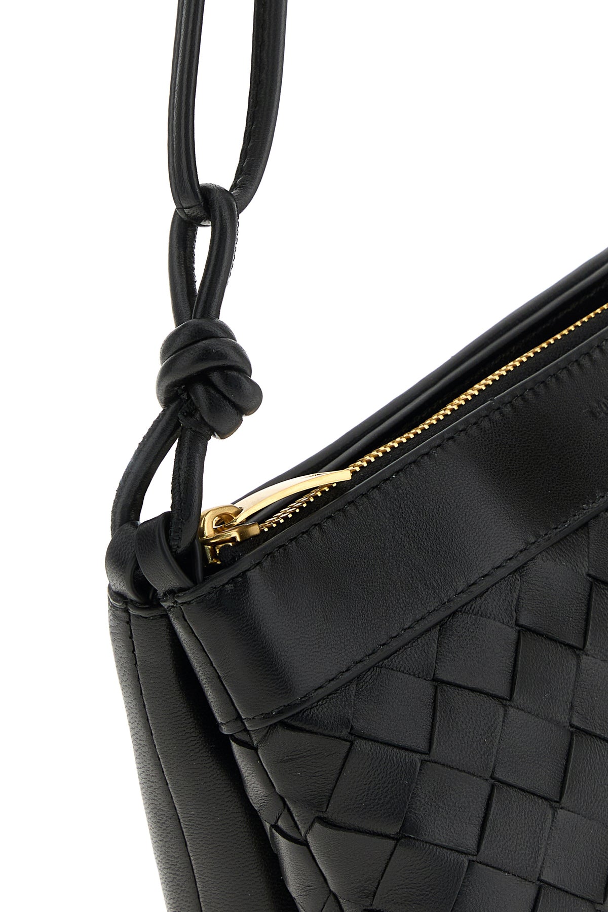 Crossbody bag realized in leather characterized by iconic Intrecciato motif at the front and embossed logo at the top.