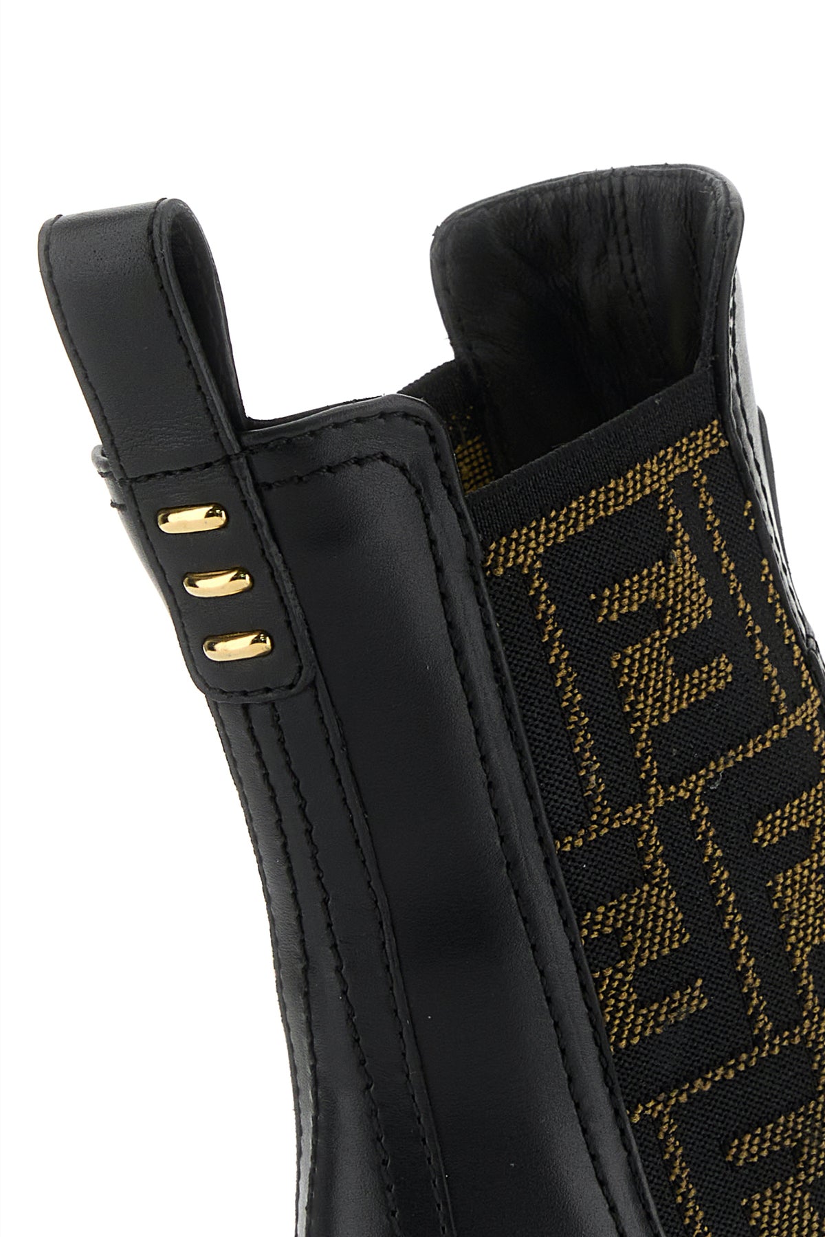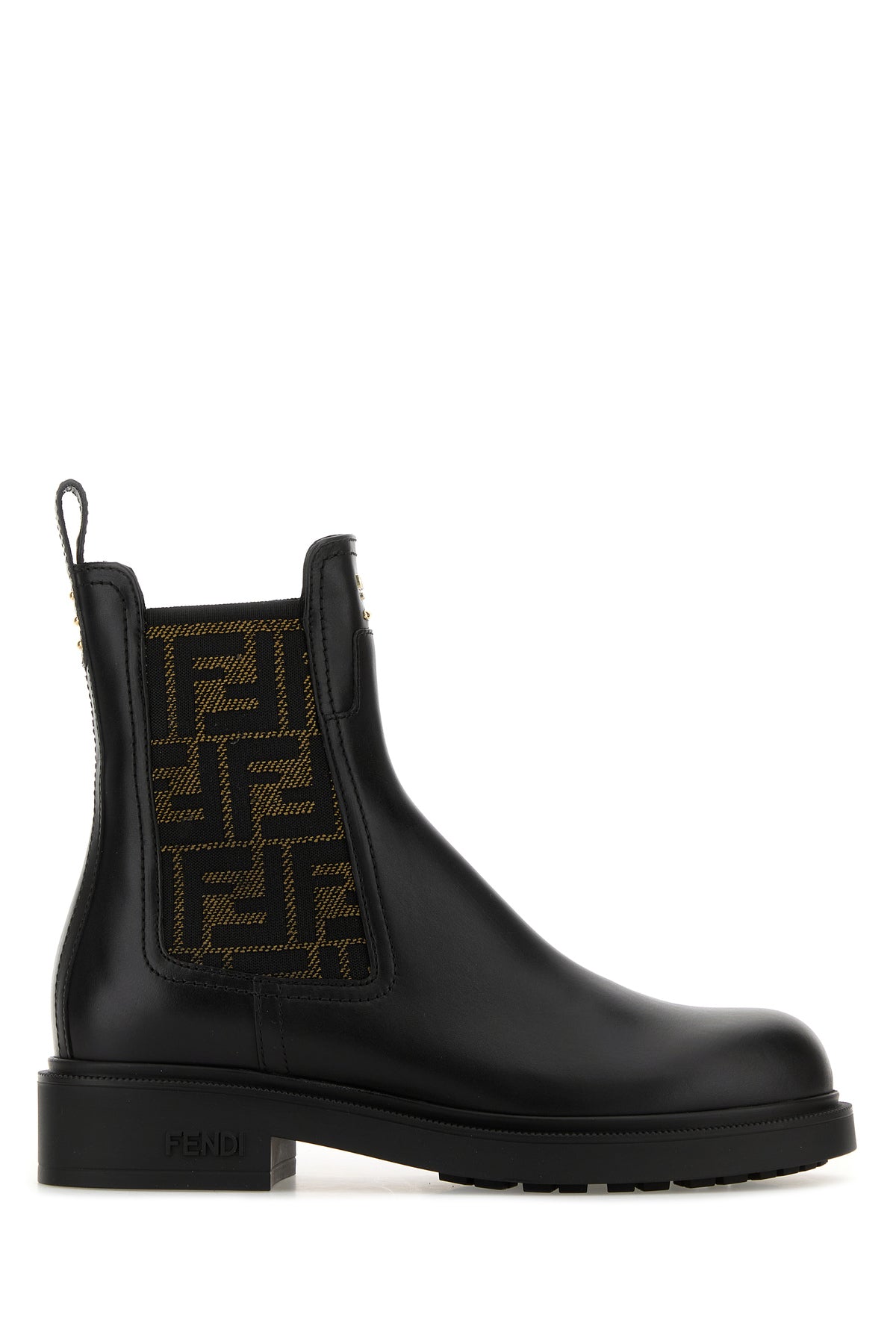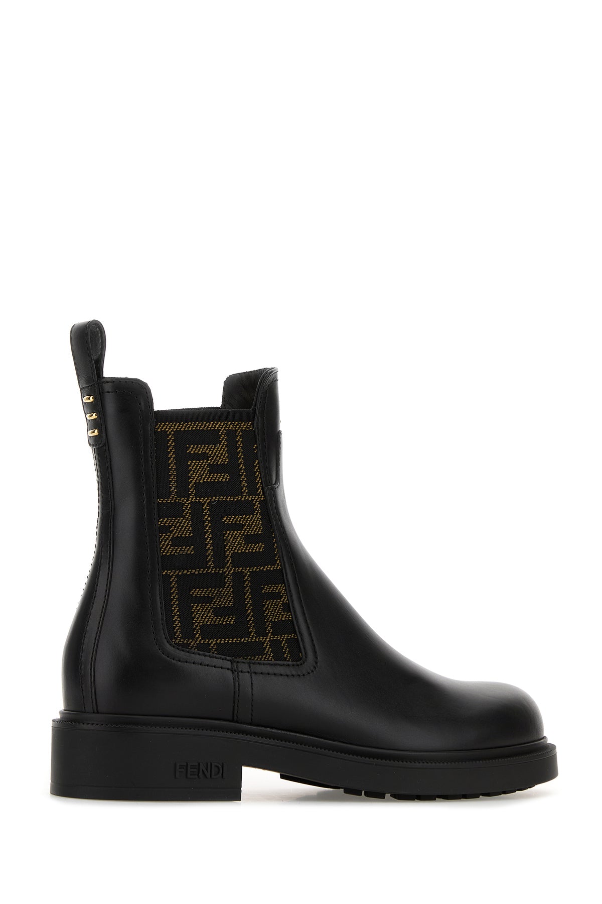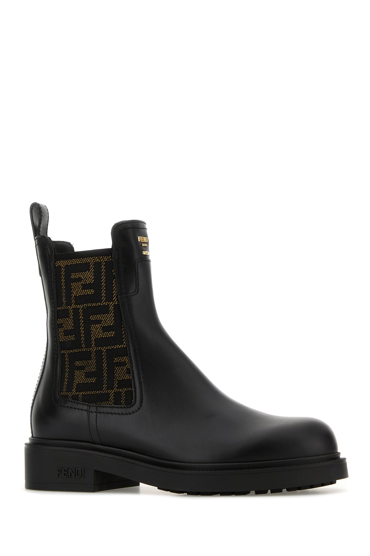 Ankle boots realized in smooth calf leather characterized by Ff embroidery on the lateral elastic inserts enriched by metal lettering logo at the front.