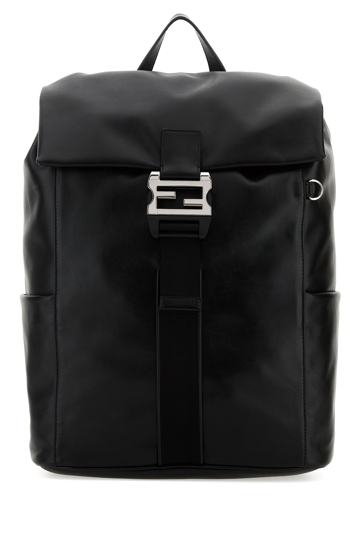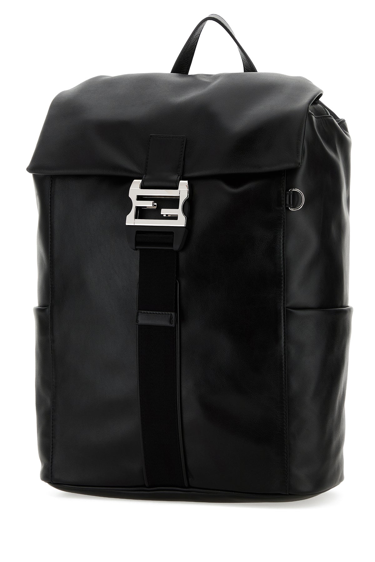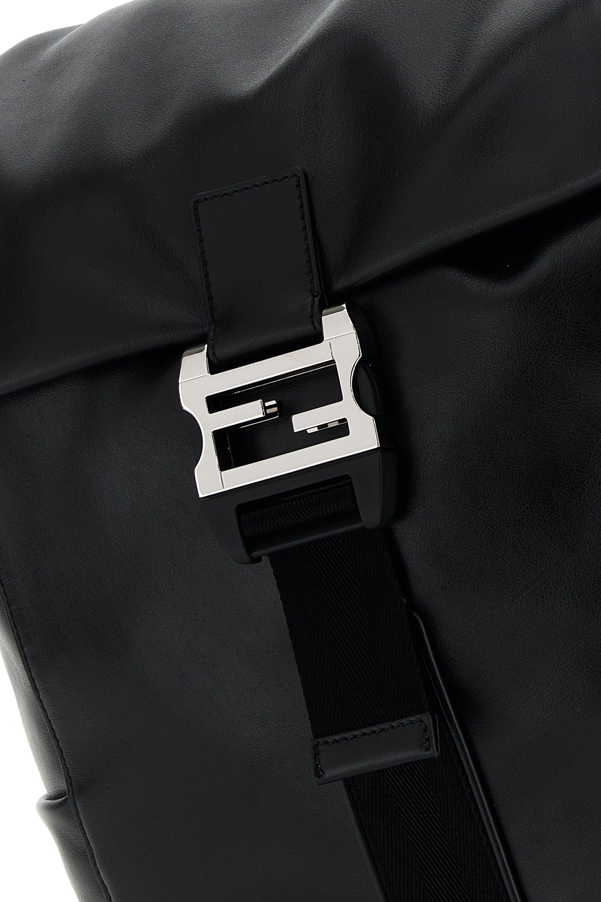 Backpack realized in calf leather characterized by FF safety buckle closure.