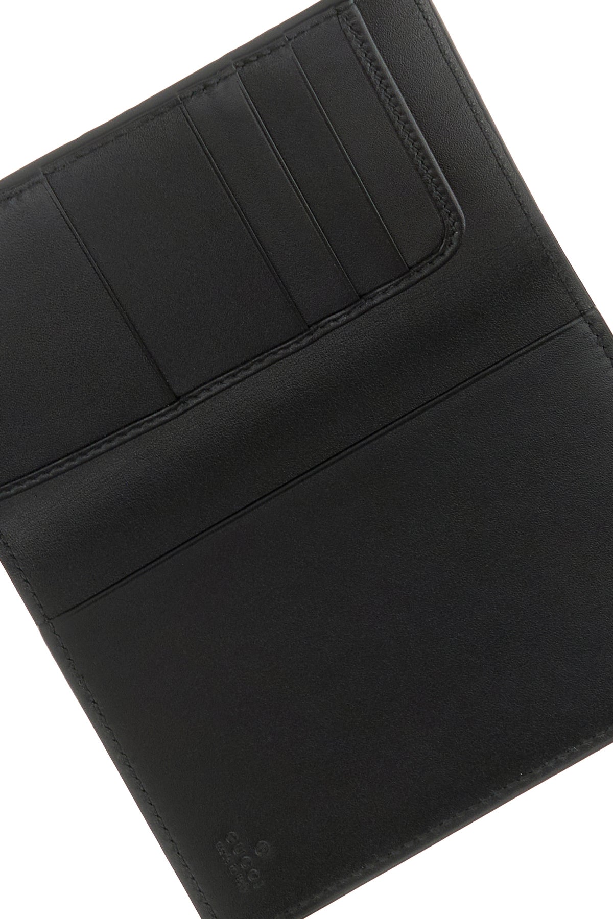 Passport holder realized in leather characterized by GG motif on the entire surface.