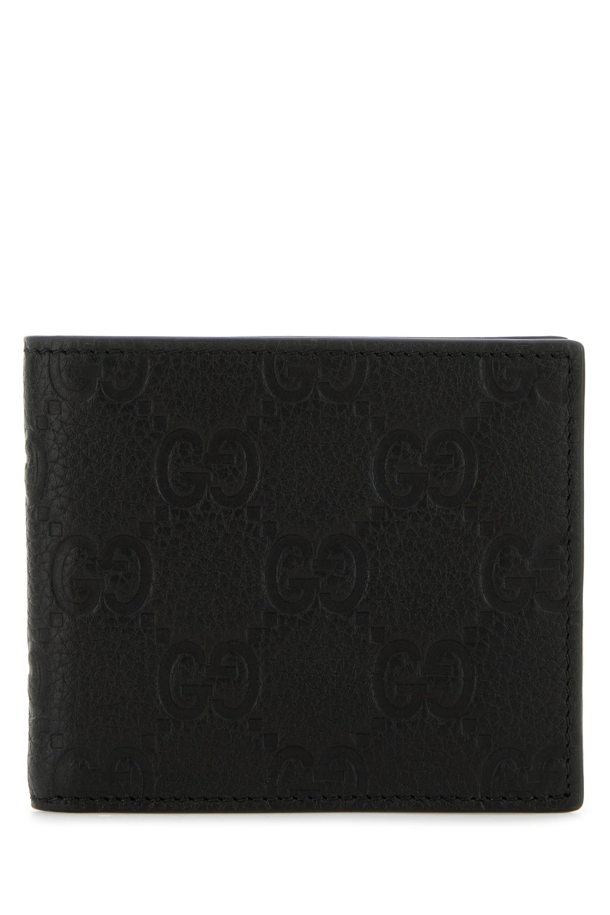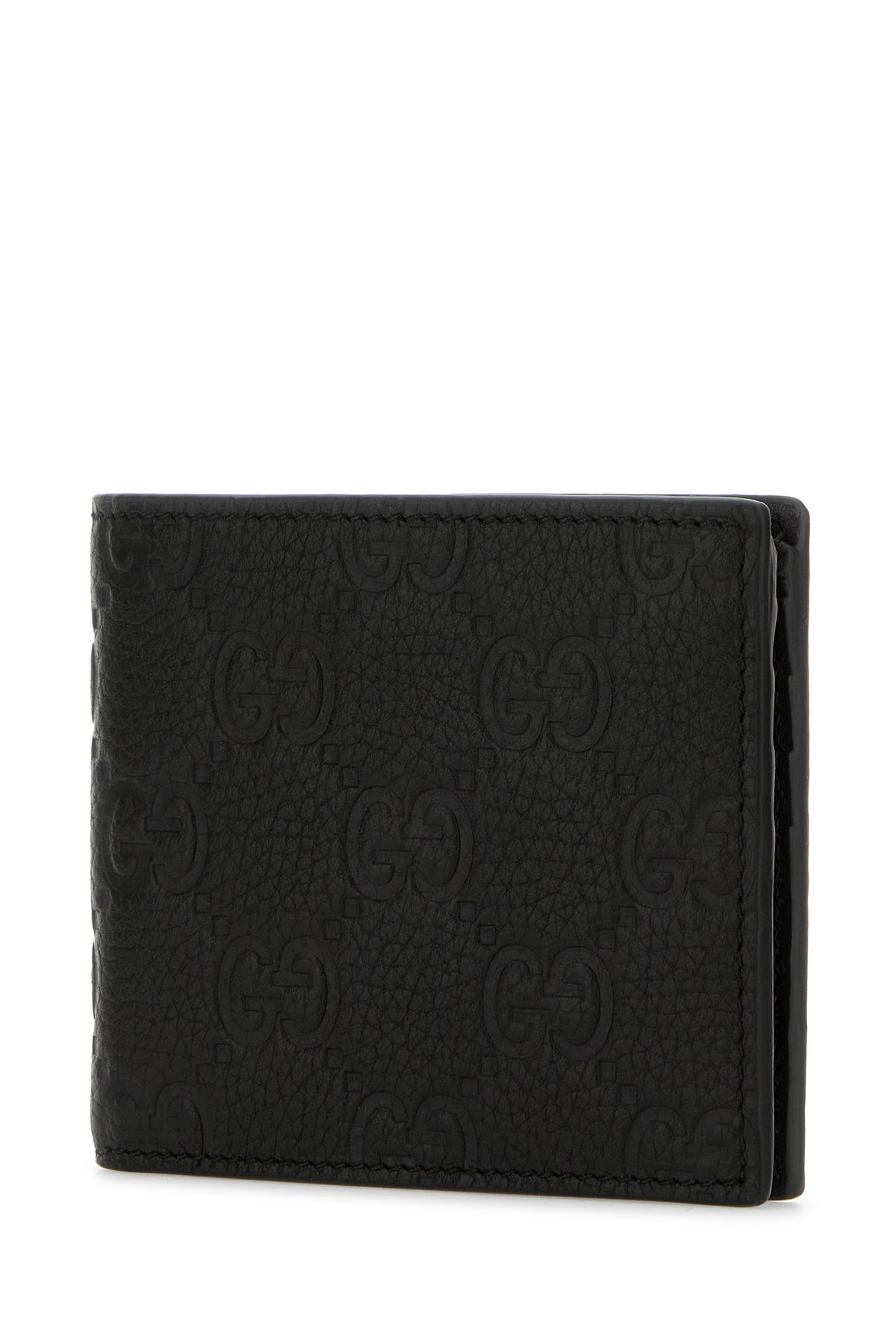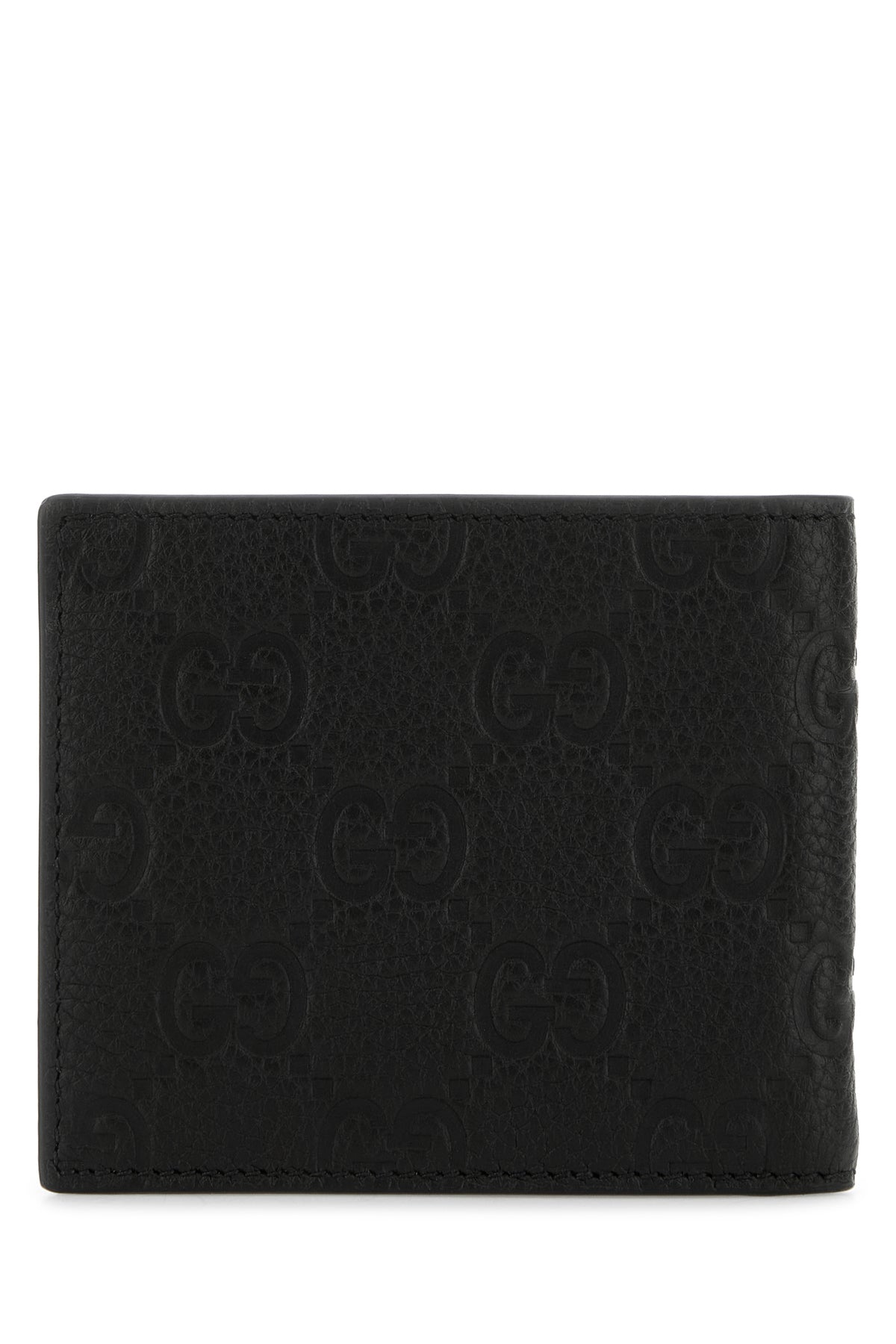 Wallet realized in pebble leather characterized by GG motif embossed on the entire surface.