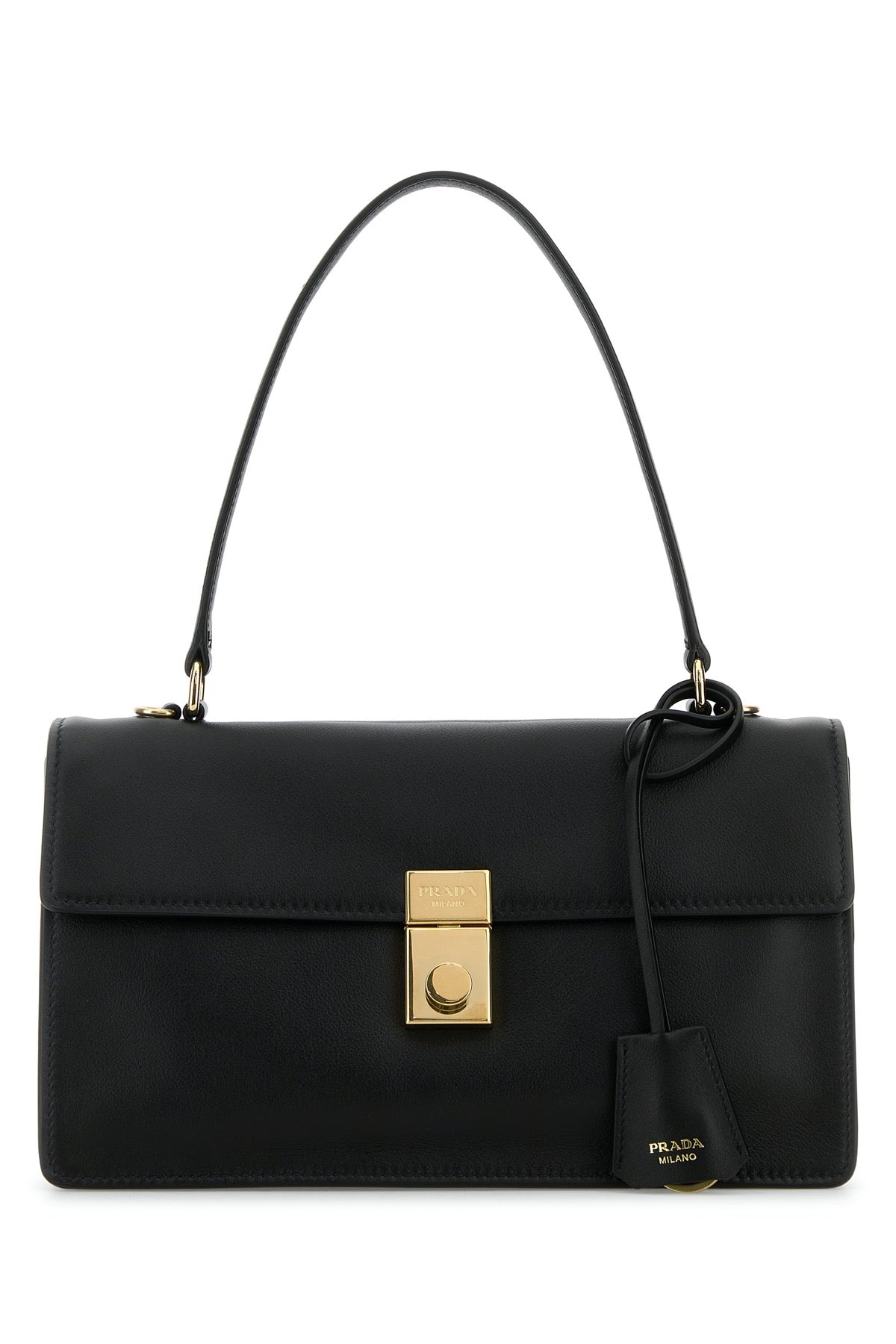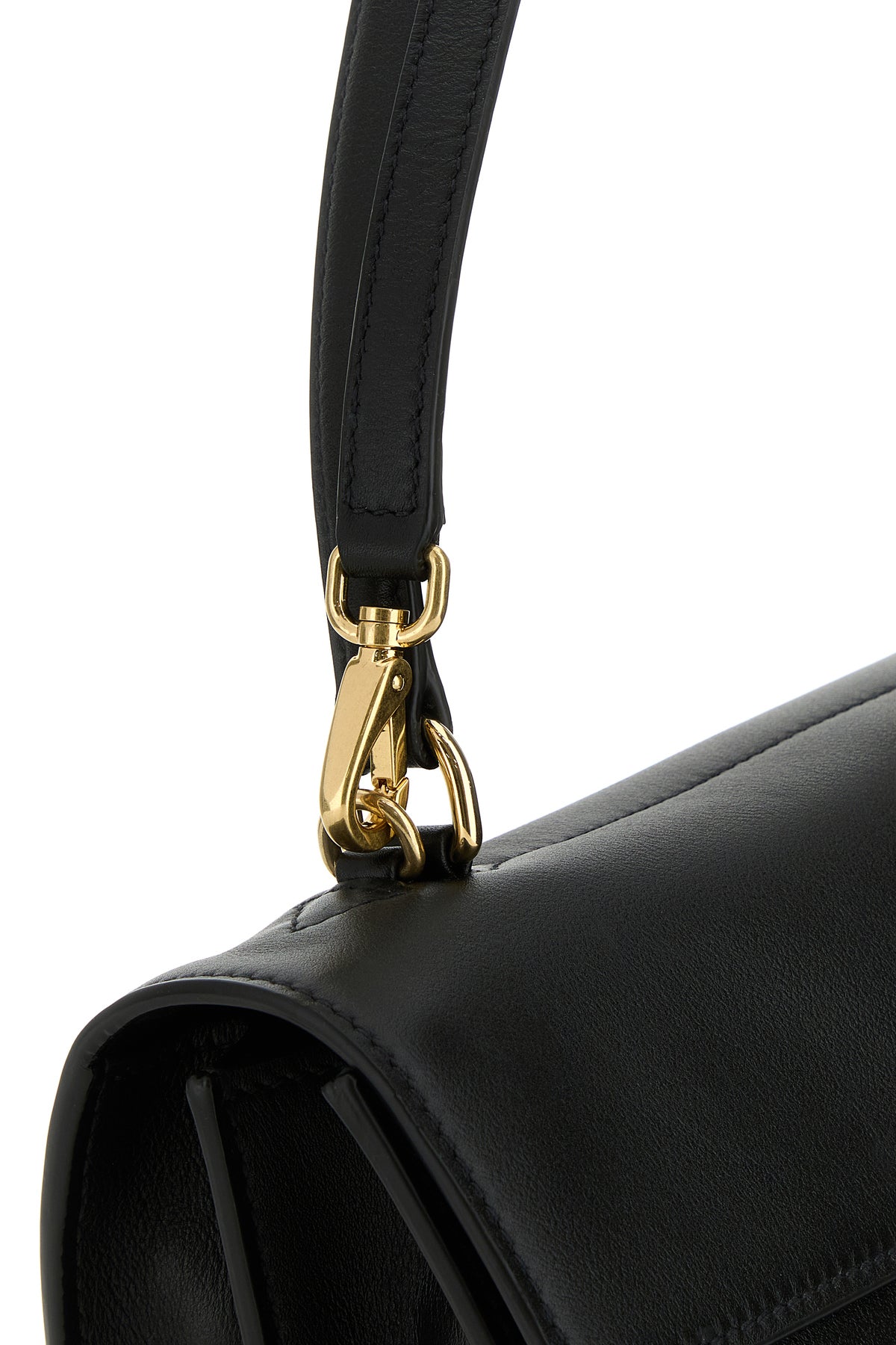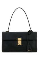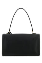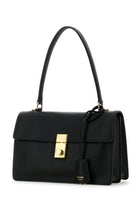 Handbag realized in slightly pebble leather characterized by embossed logo on the snap-fit closure.