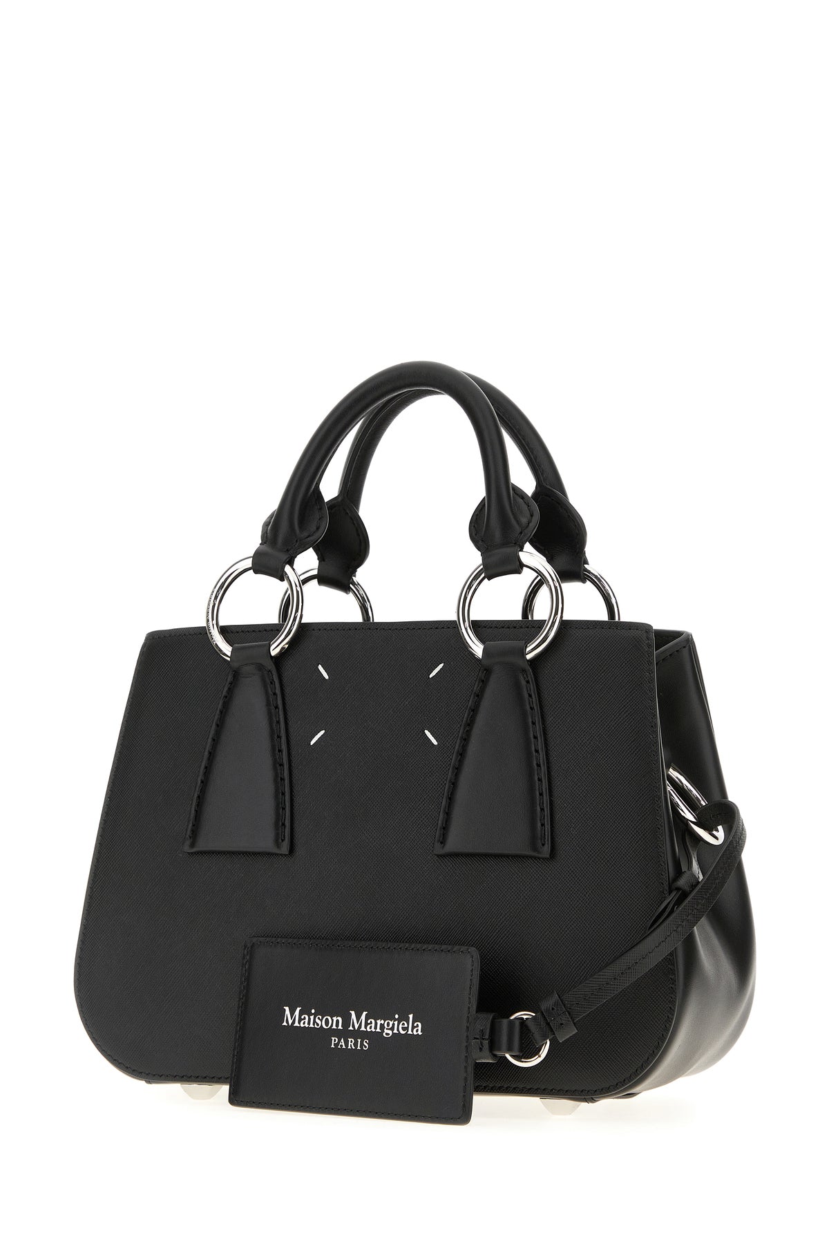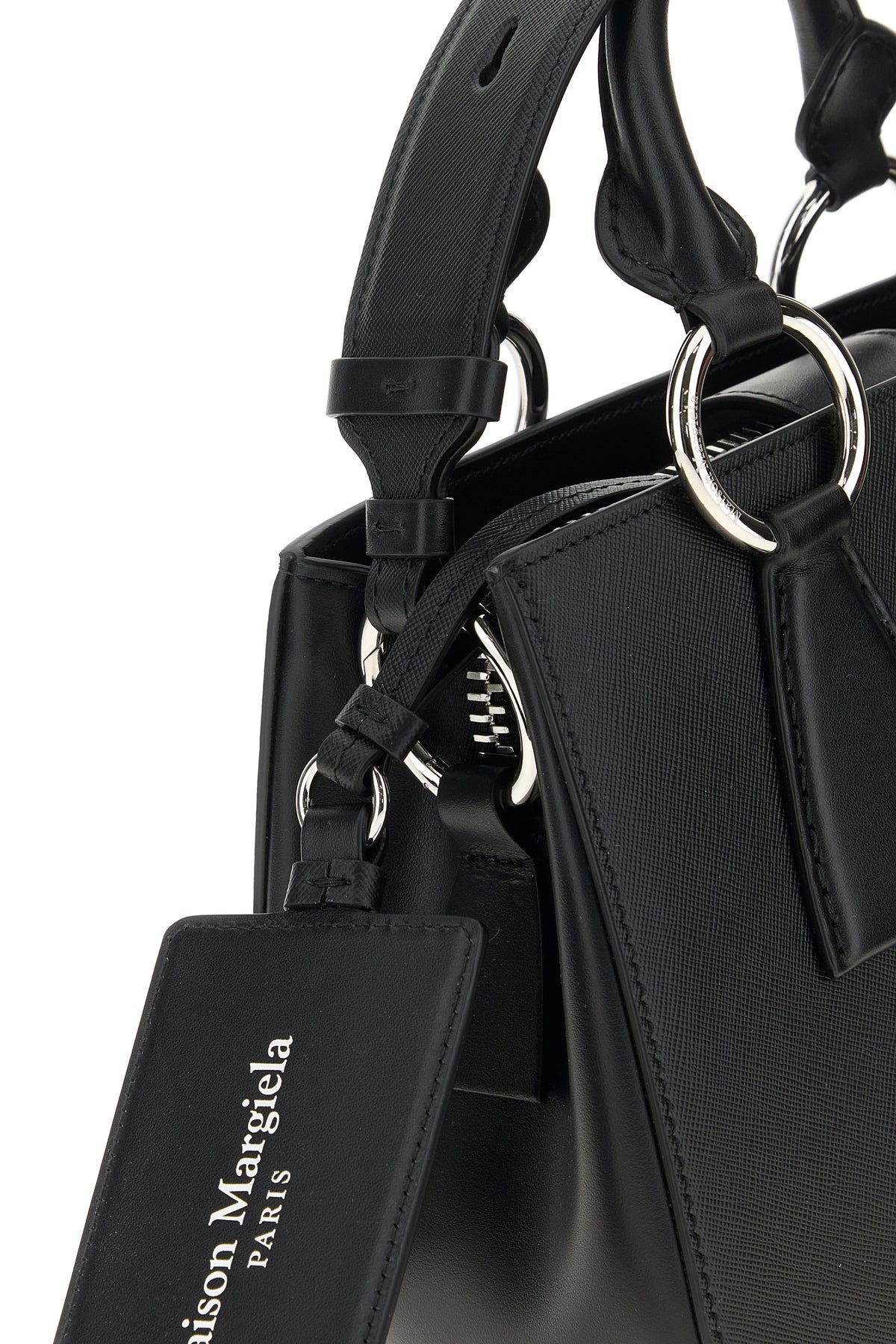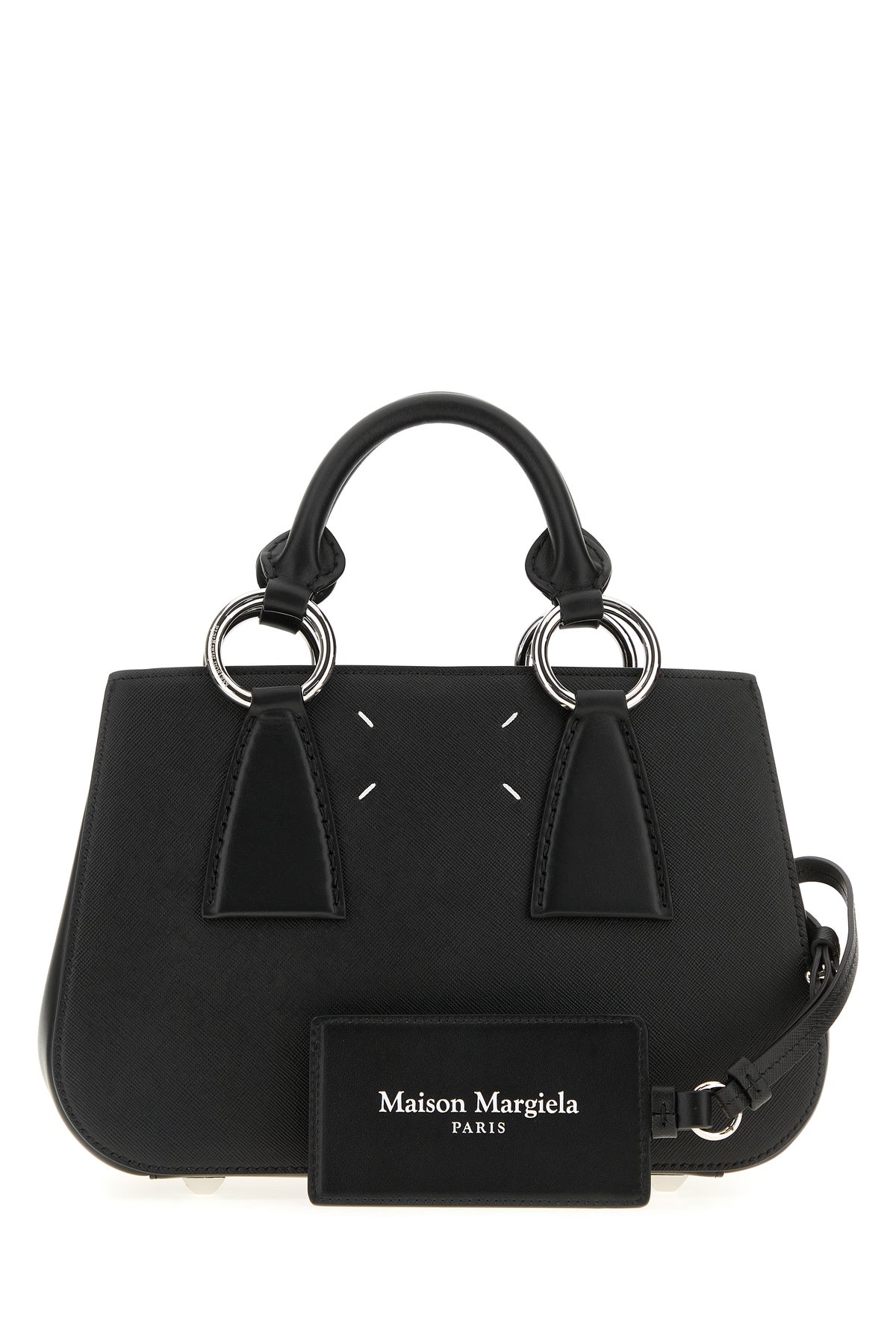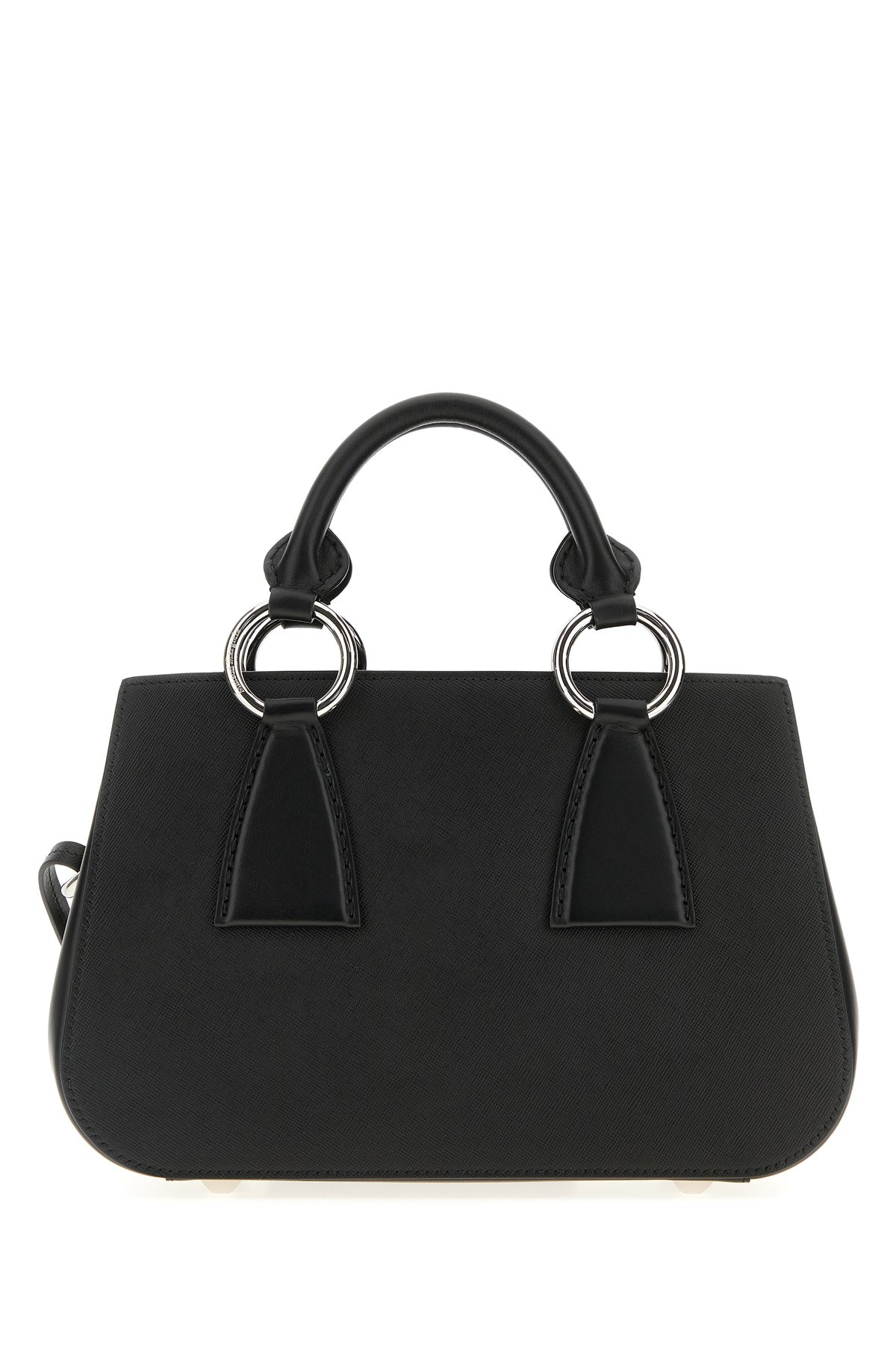 Handbag realized in grained leather characterized by iconic contrasting stitching at the front.