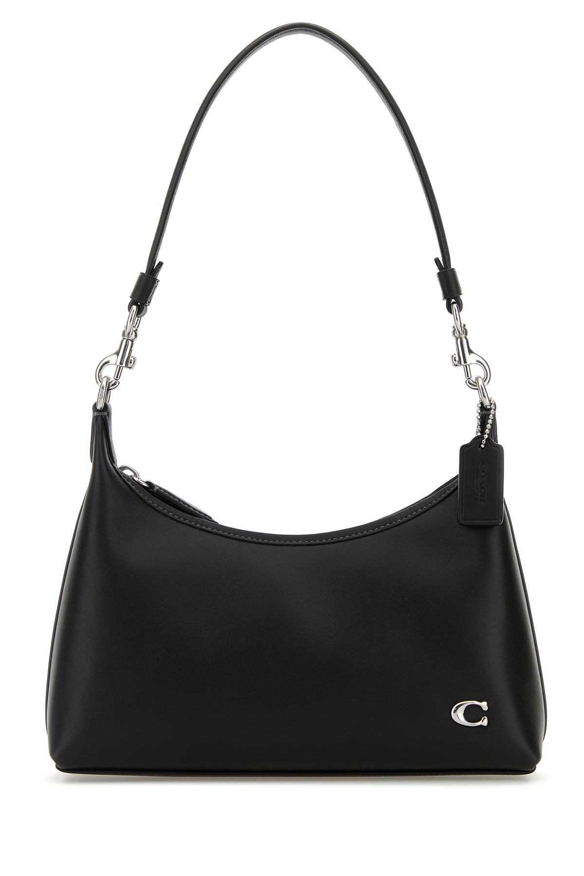 Shoulder bag realized in smooth leather enriched by logoed metal detail at the front
