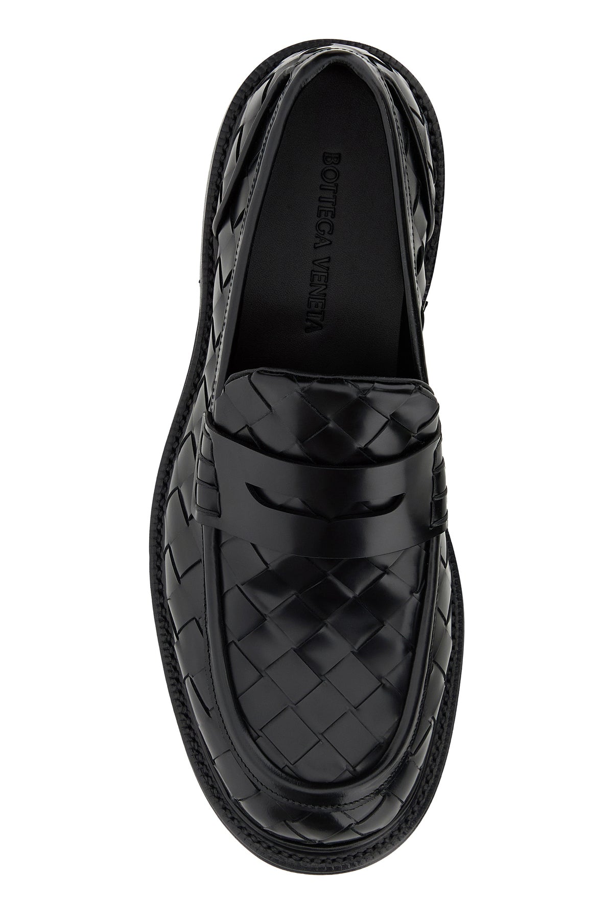 Loafers realized in calf leather characterized by iconic Intrecciato motif on the entire surface.