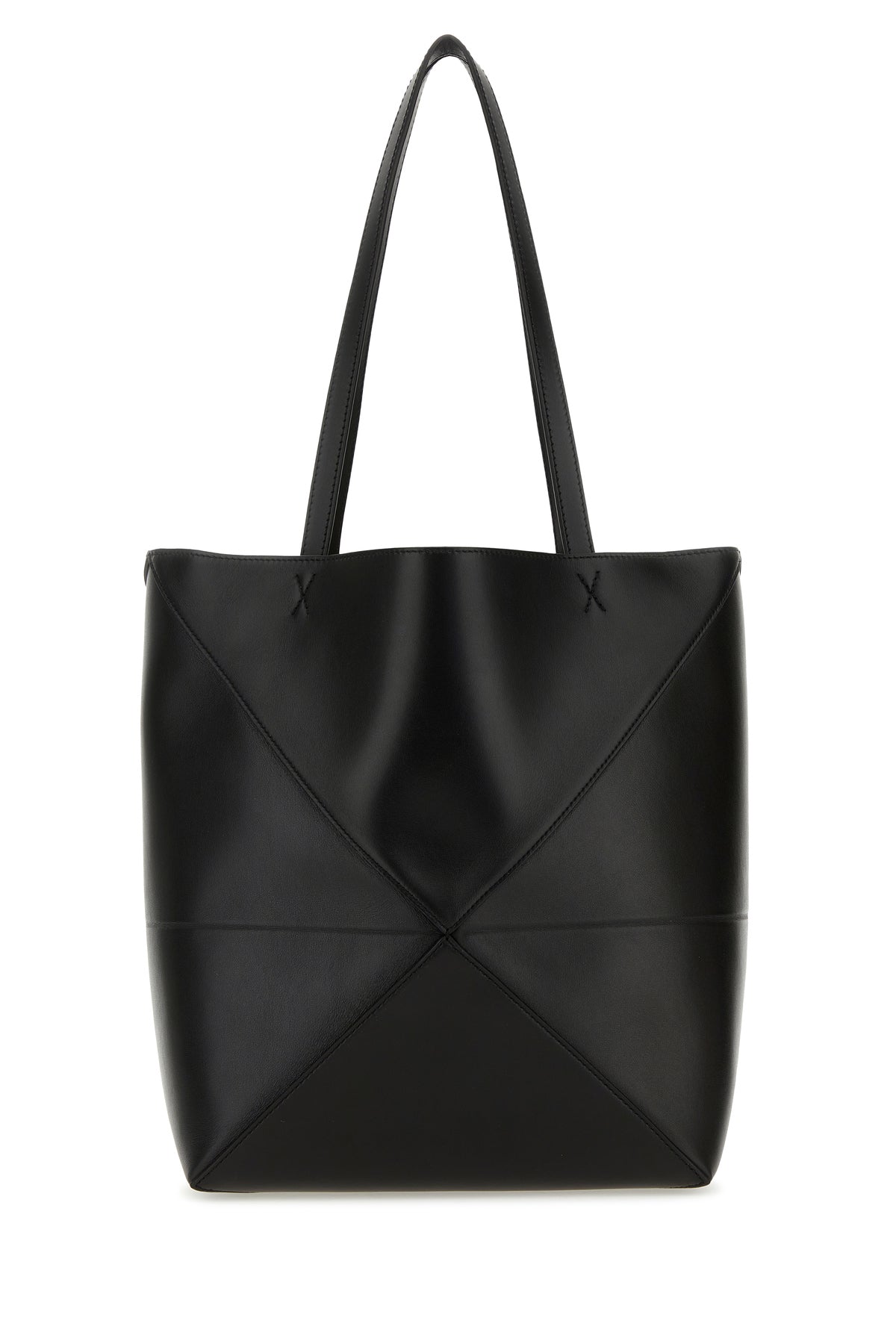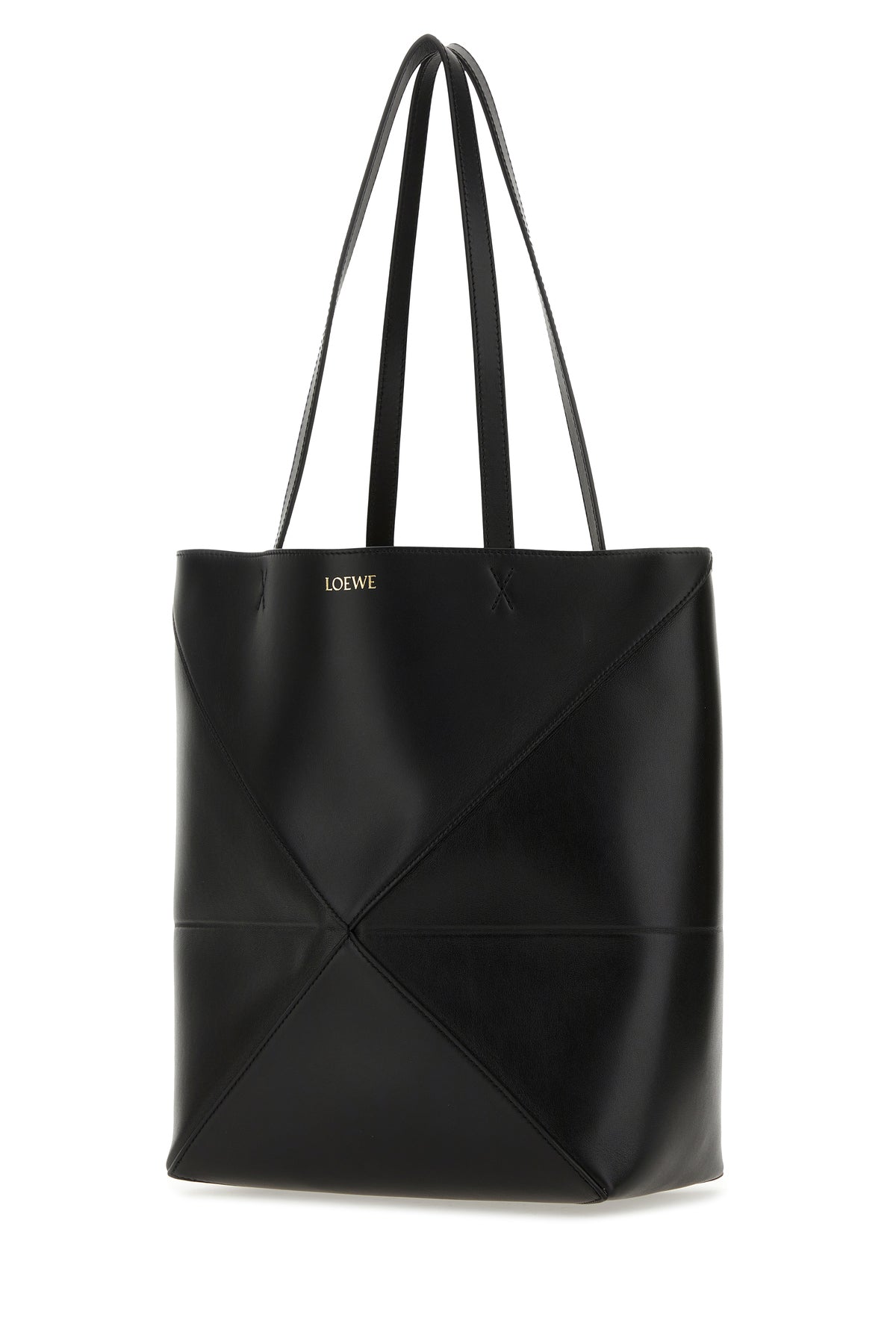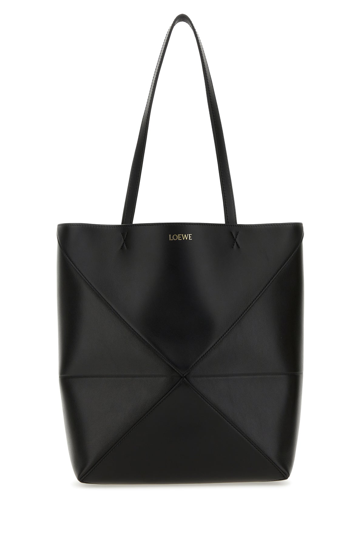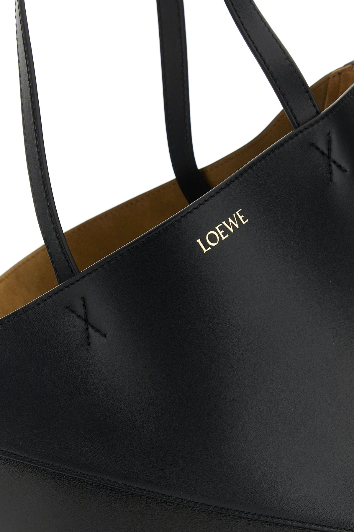 Shopping bag realized in smooth calf leather characterized by laminated printed logo at the front and iconic geometric motif on the entire surface.