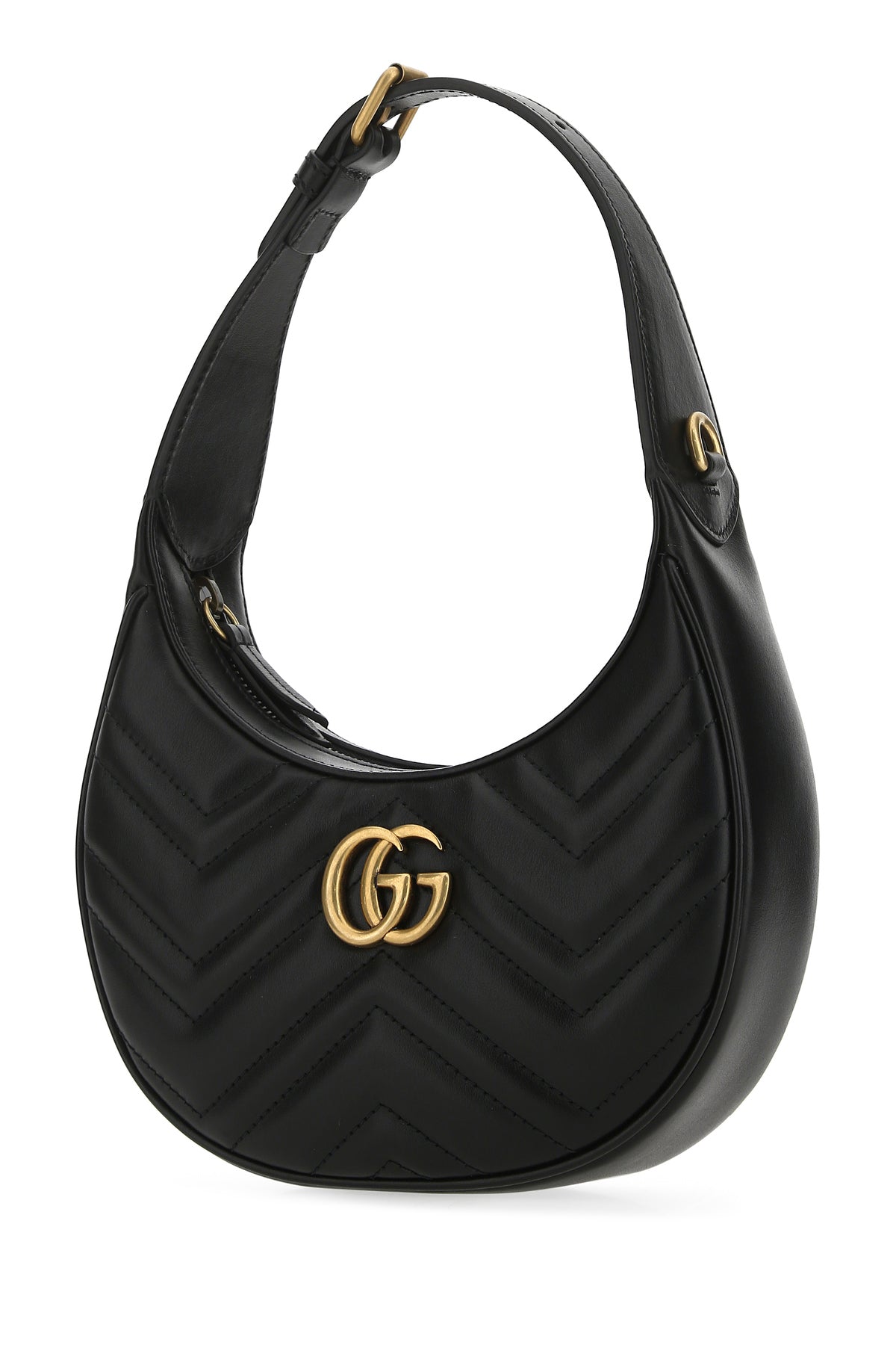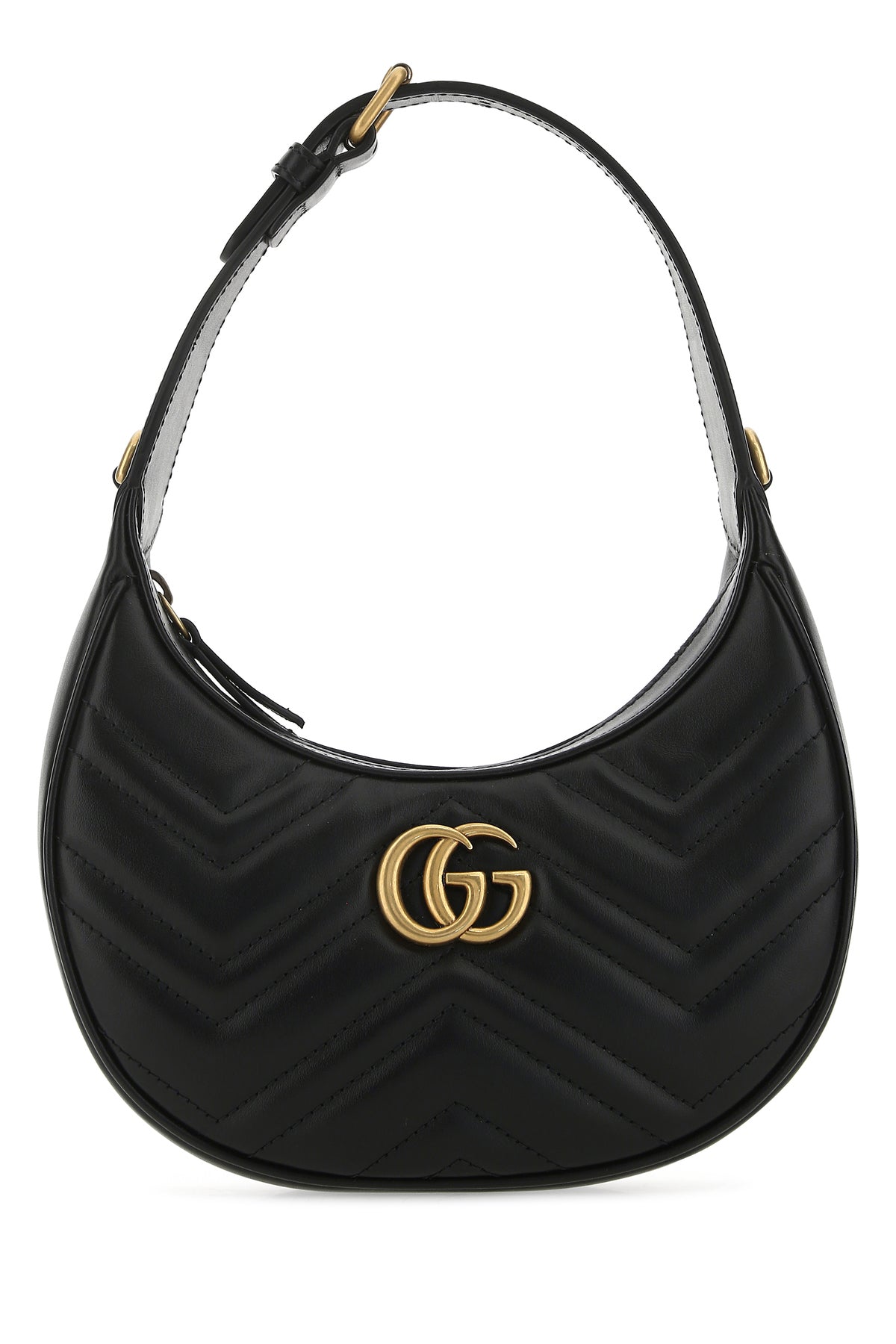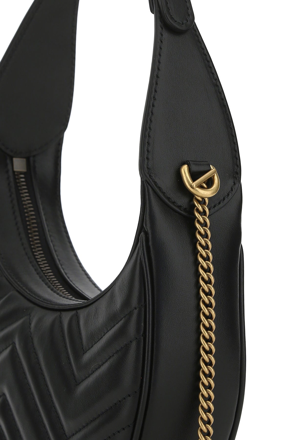 Handbag realized in chevron motif quilted leather enriched by metal GG detail at the front.