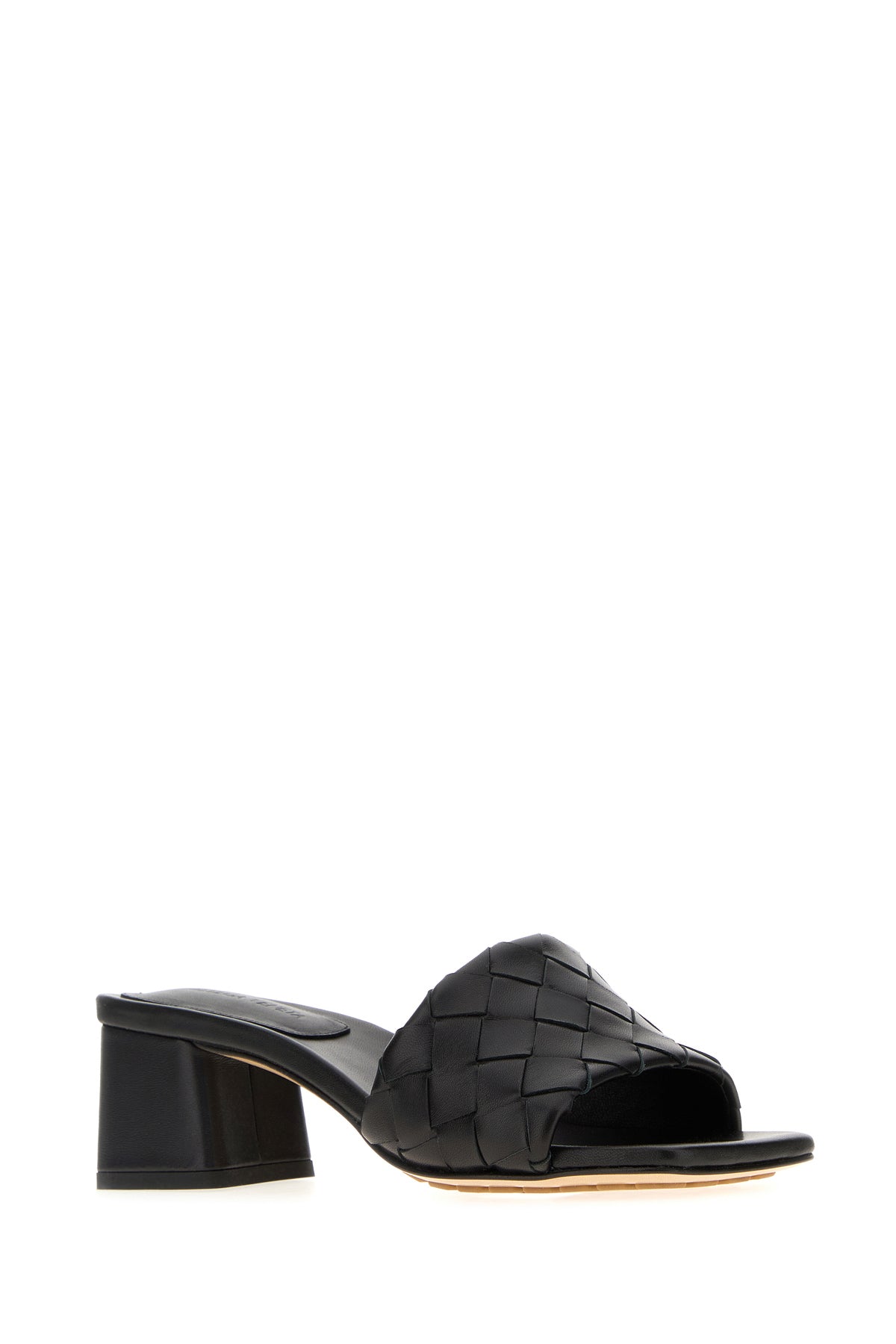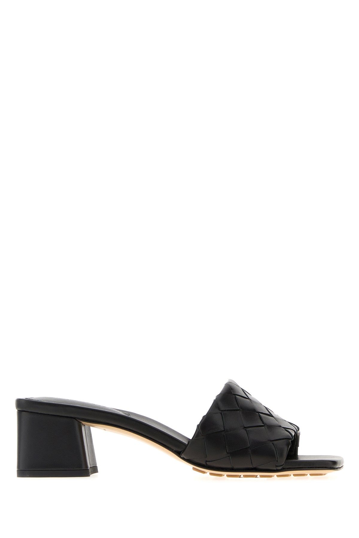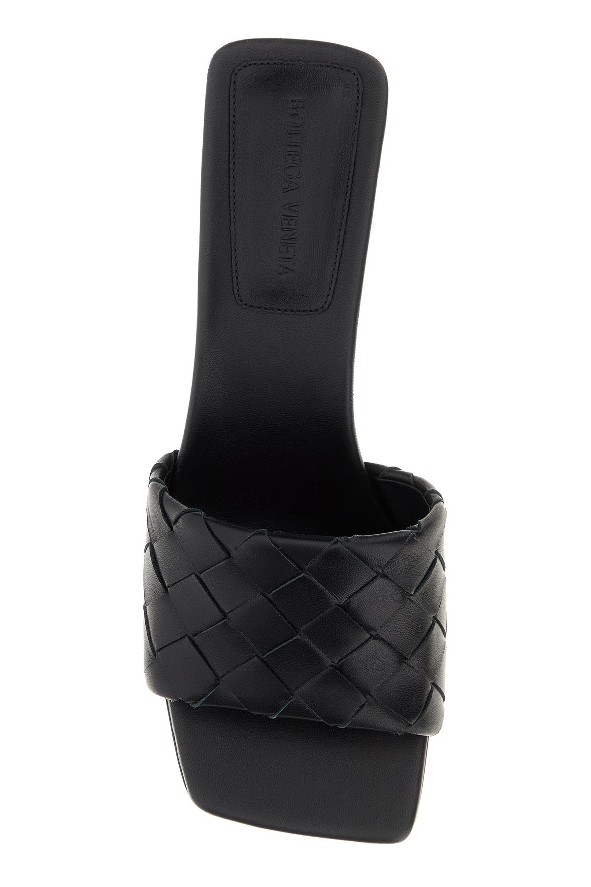 Mules realized in leather characterized by iconic Intrecciato motif on the instep.