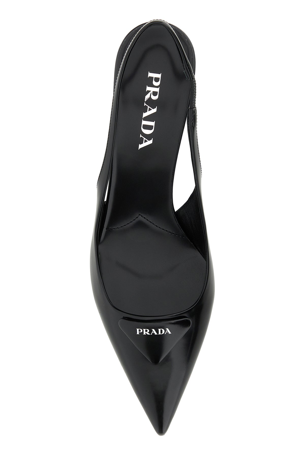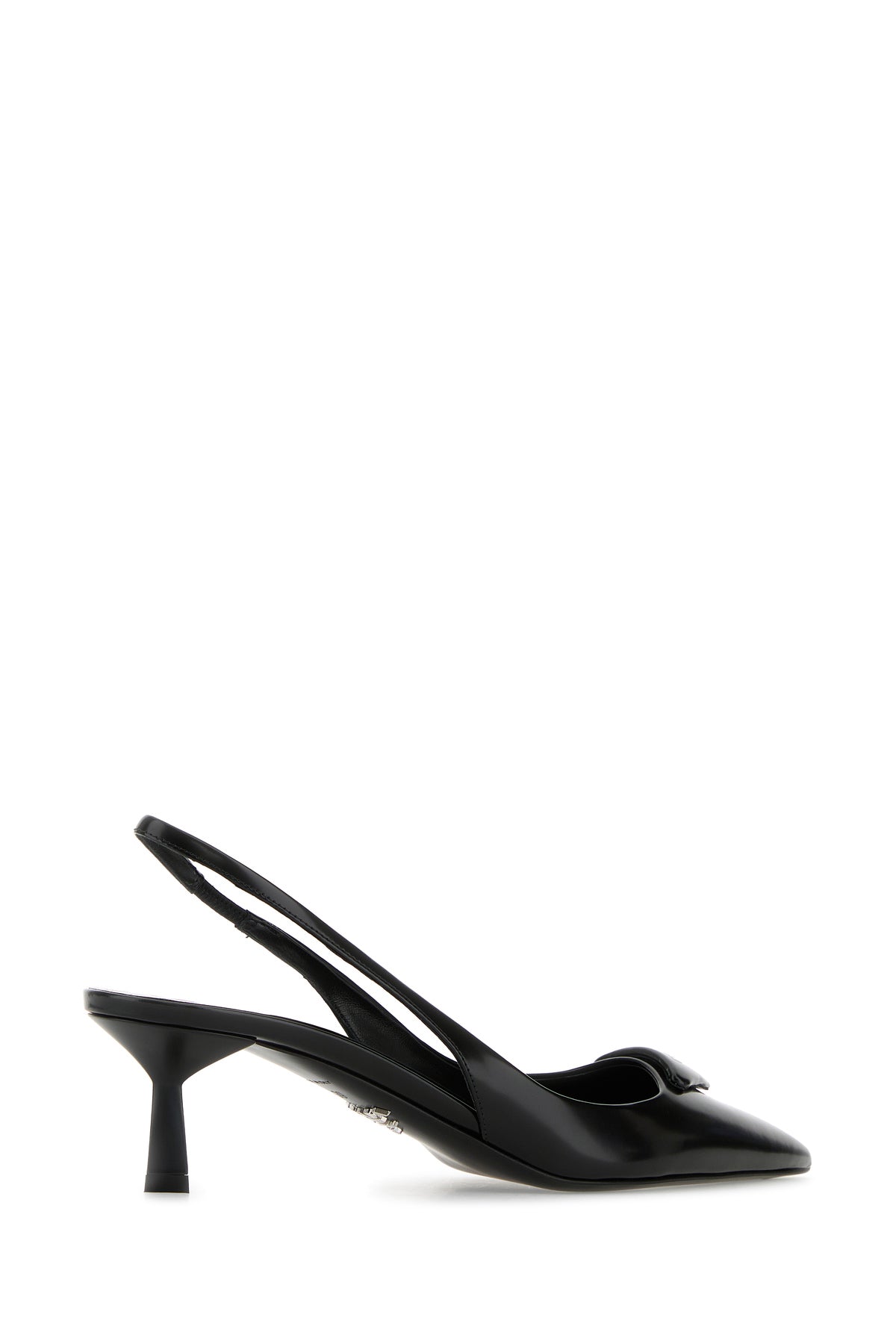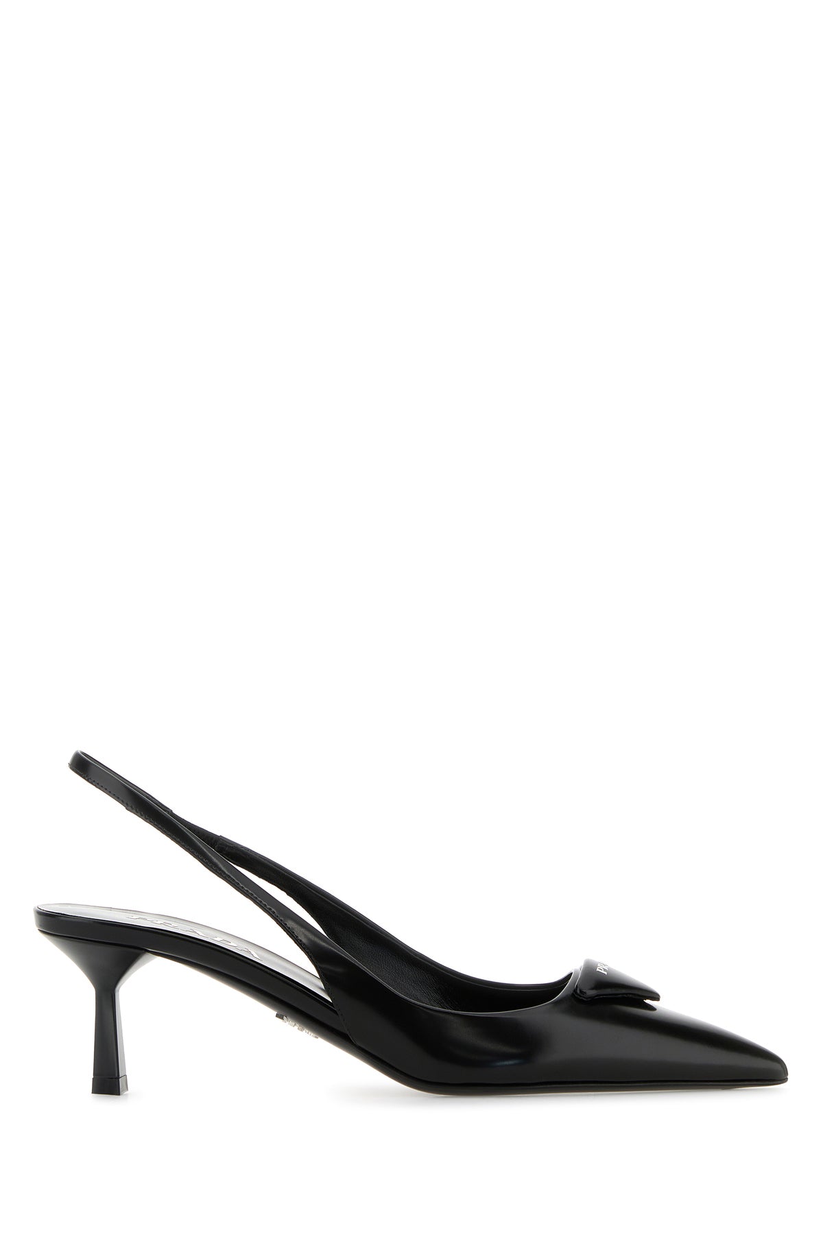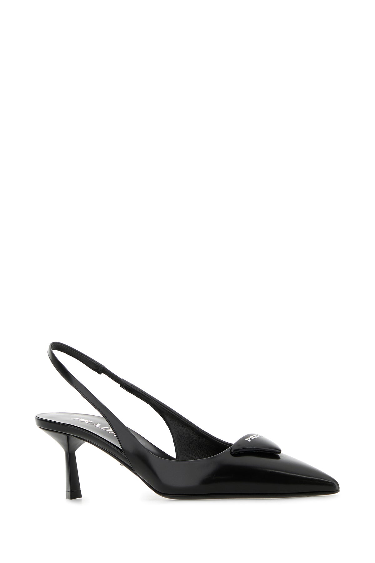Slingback realized in polished-finish smooth leather characterized by iconic tonal leather logoed triangle at the front.