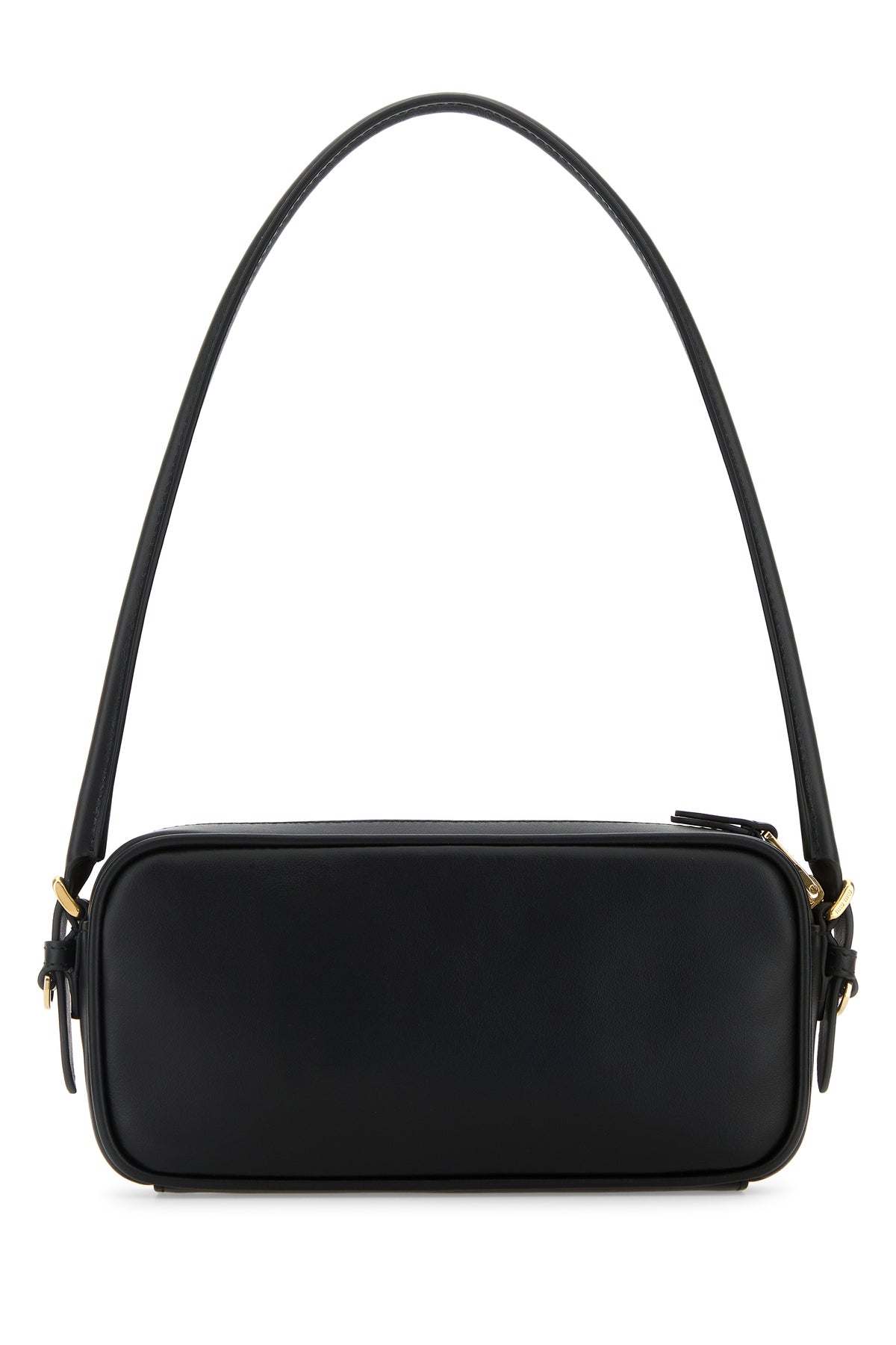 Shoulder bag realized in leather enriched by tonal logoed patch at the front.