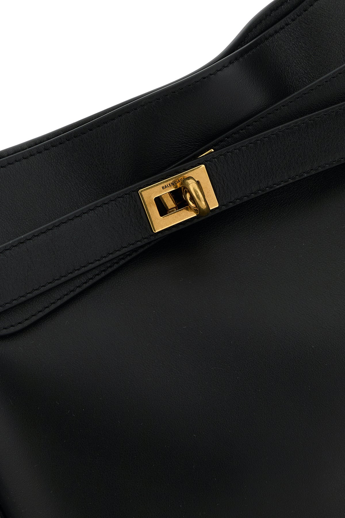 Shoulder bag realized in smooth calf leather enriched by detachable keyring accessory and metal logoed plate at the back.