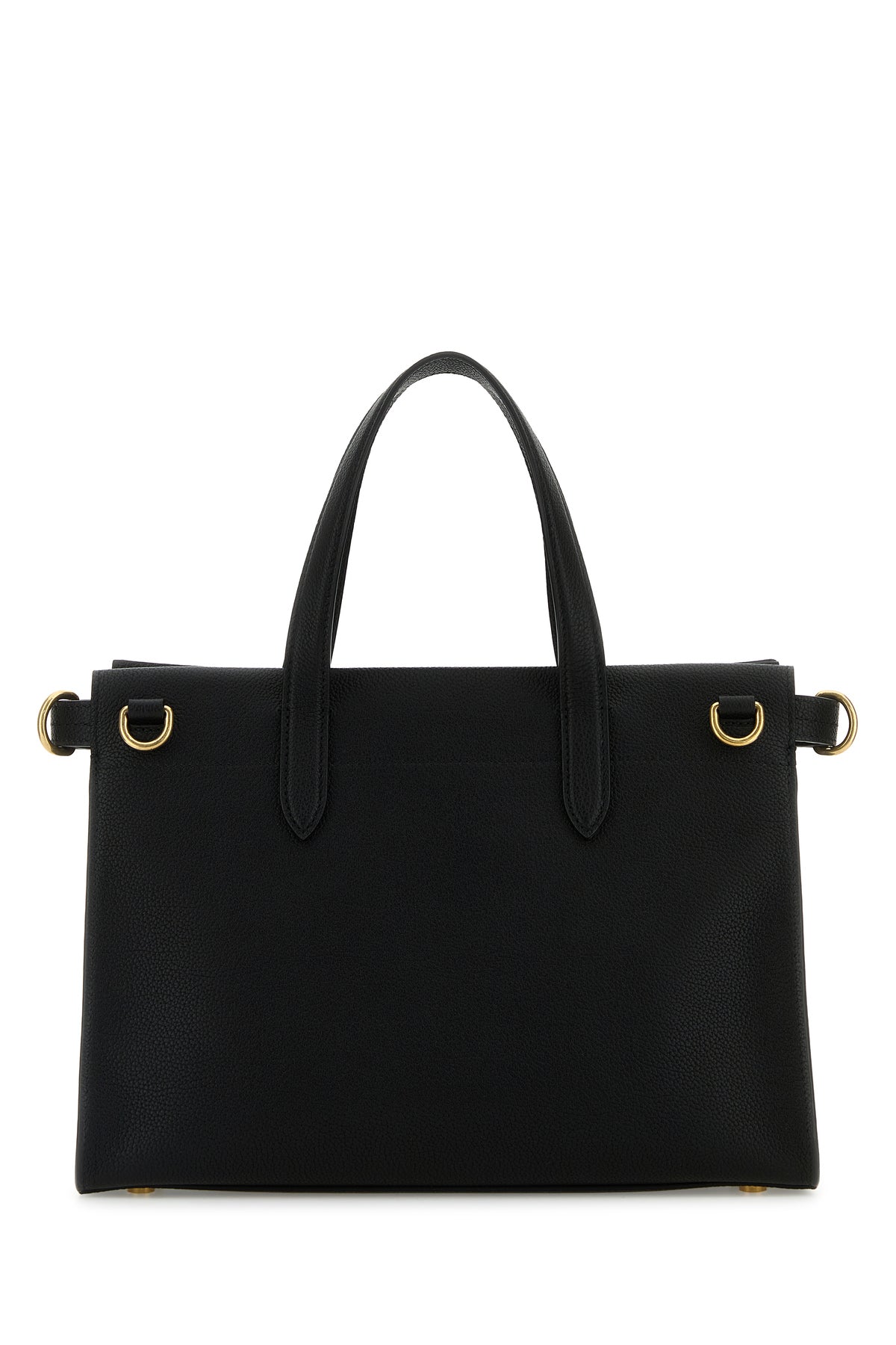 Handbag realized in pebble calf leather characterized by laminated printed logo at the front.