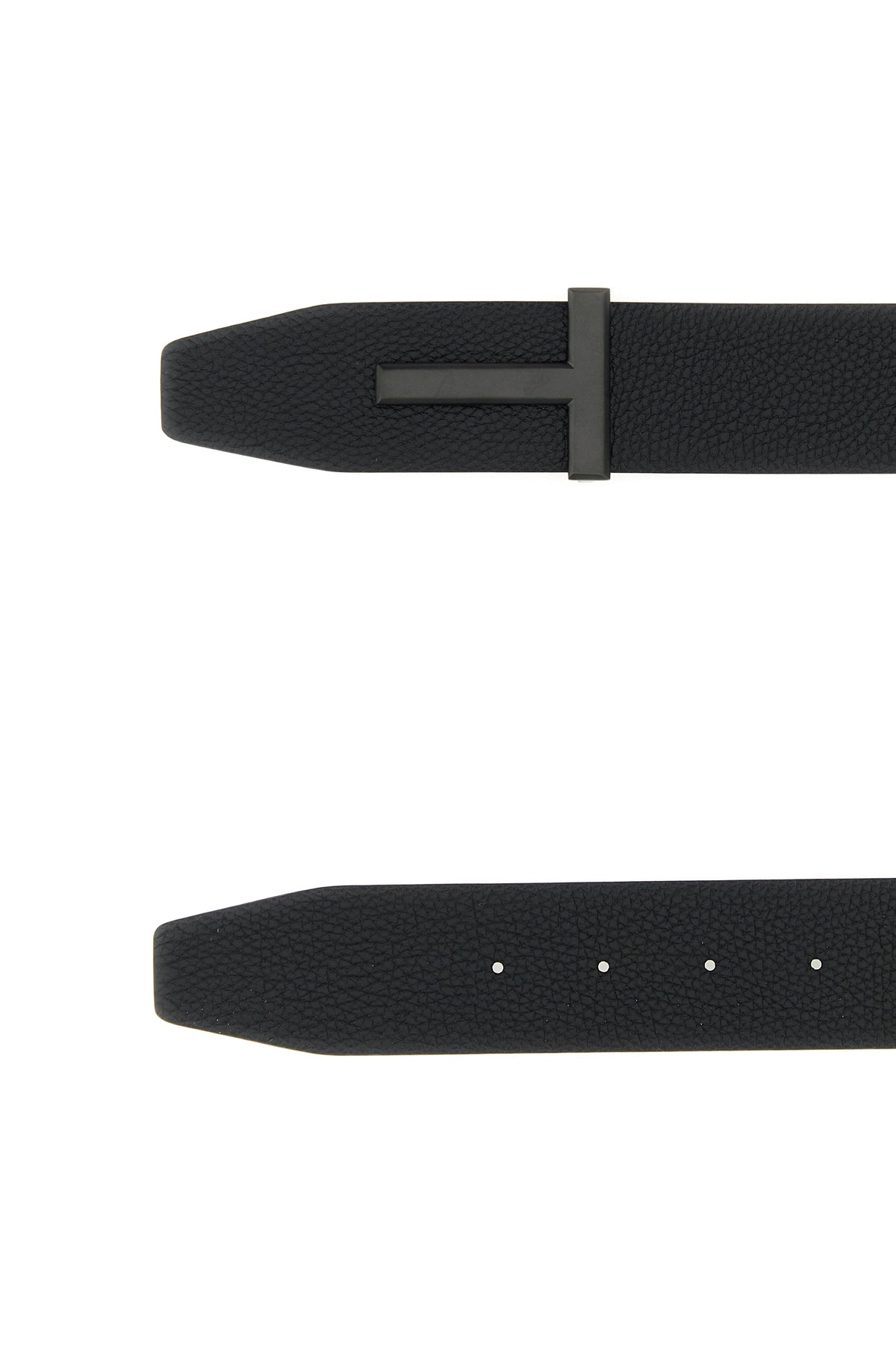 Belt realized in pebble leather enriched by metal T Icon buckle.