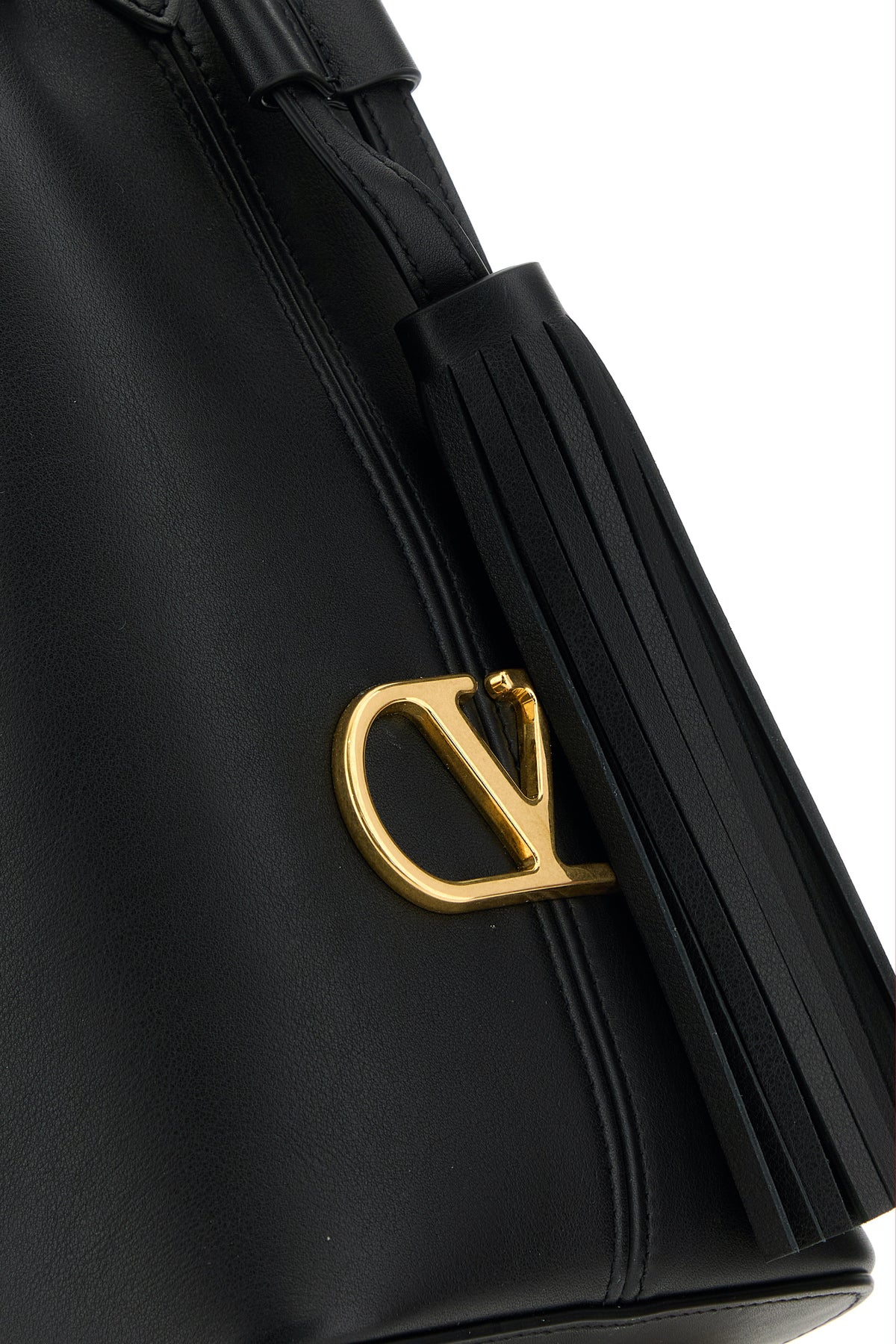 Bucket bag realized in pebble leather enriched by VLogo Signature metal detail on the side.