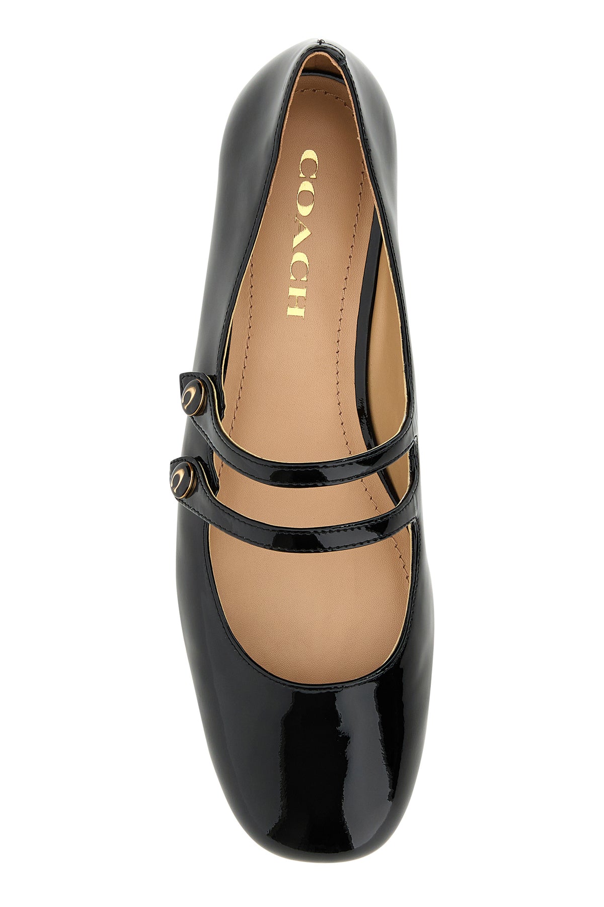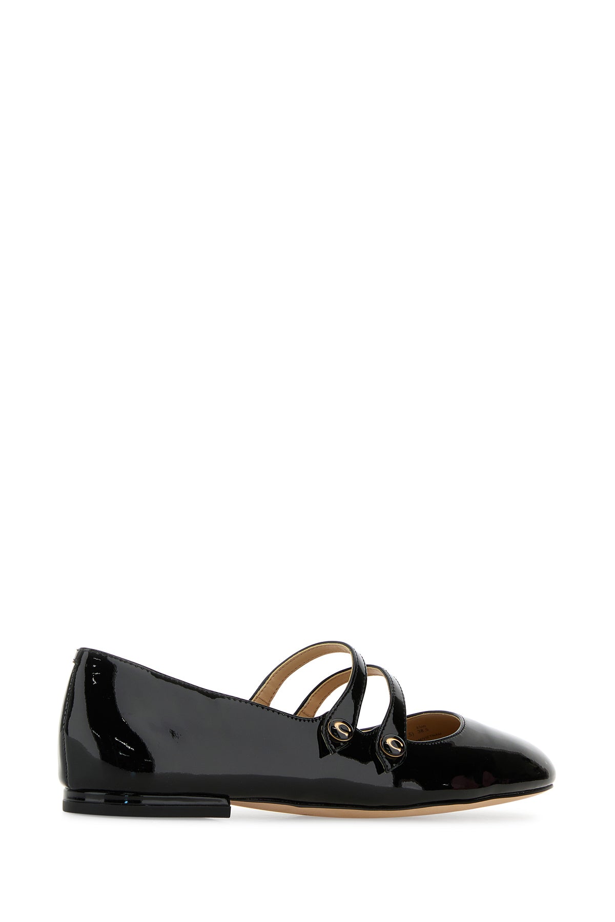 Ballerinas realized in patent leather enriched by straps on the instep.