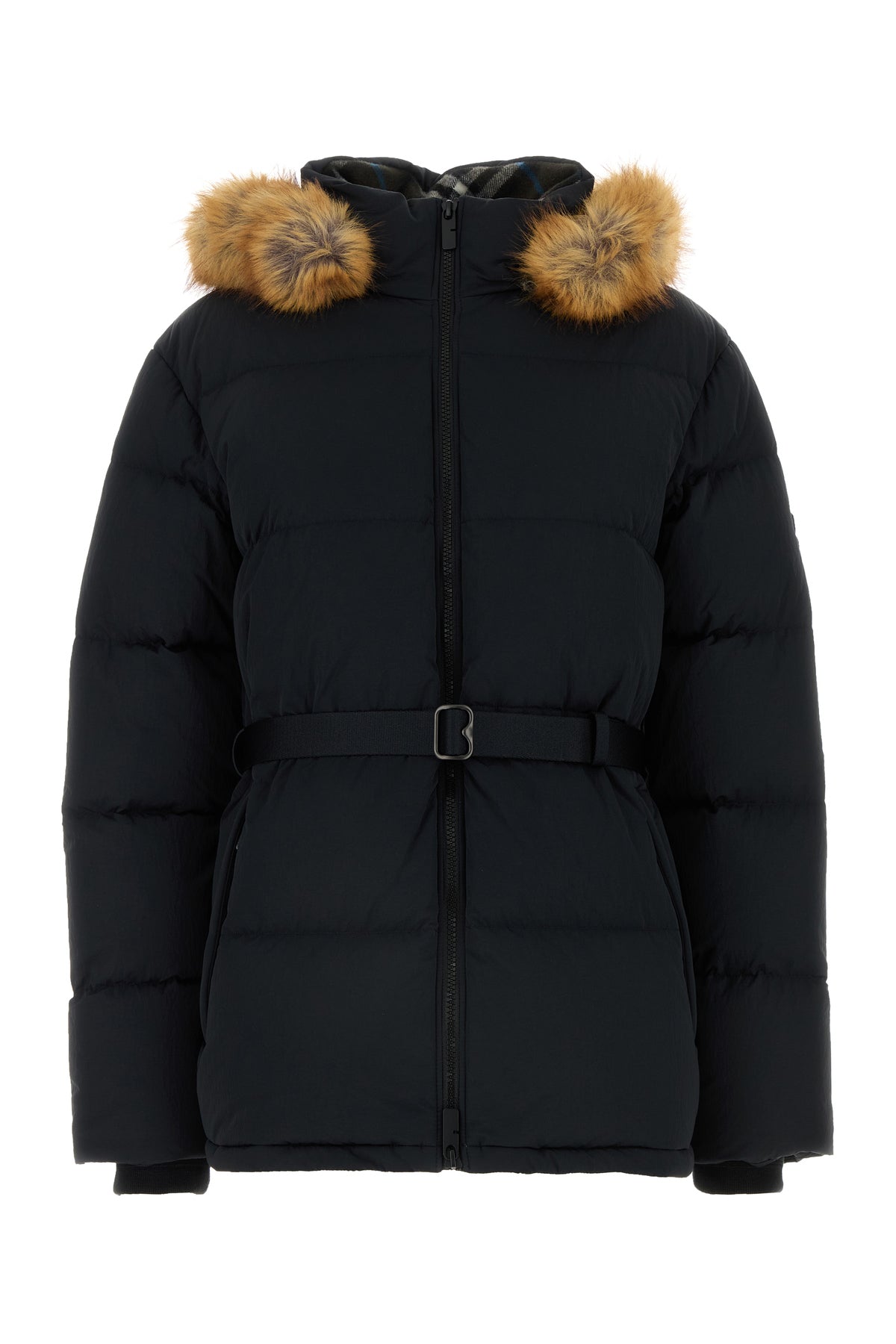 Down jacket realized in quilted nylon enriched by tonal B Shield patch on the sleeve.