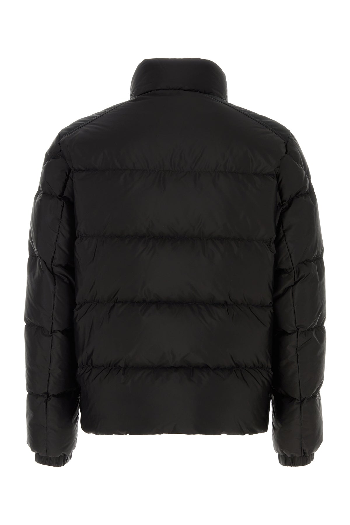 Down jacket realized in quilted nylon enriched by contrasting logoed patch on the sleeve.