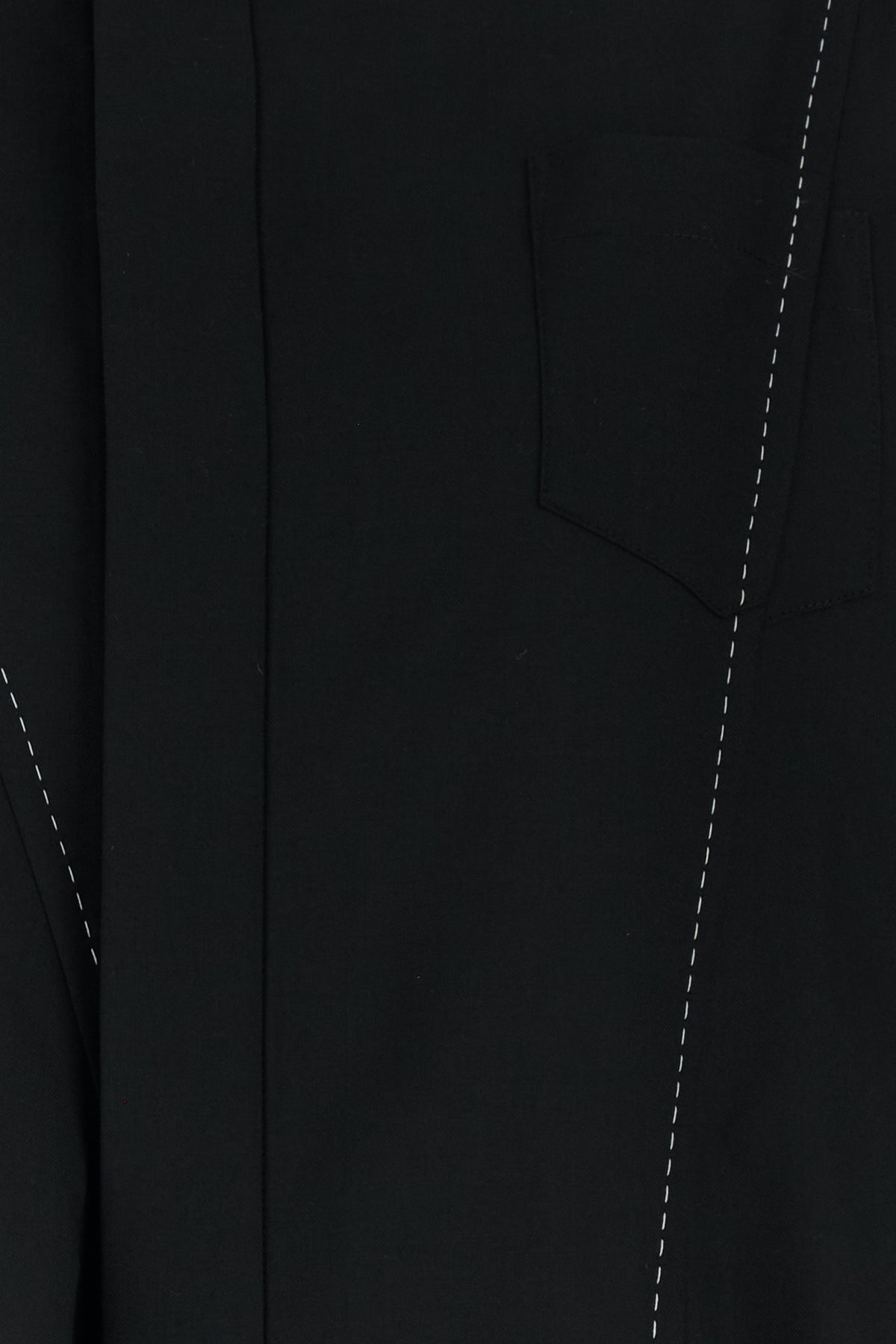 Shirt realized in polyester blend characterized by peculiar contrasting stitchings at the front and at the back.
