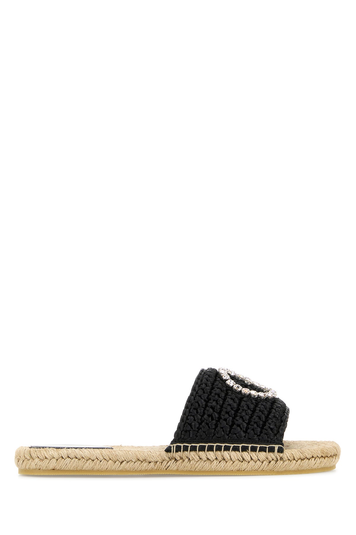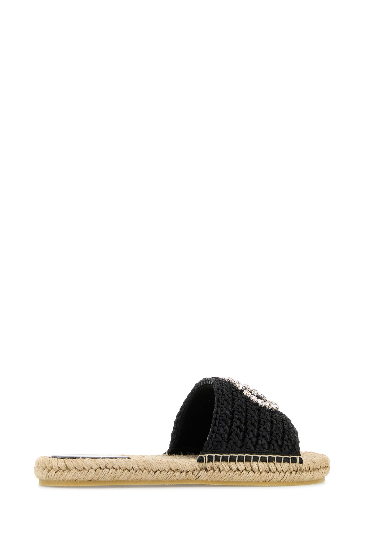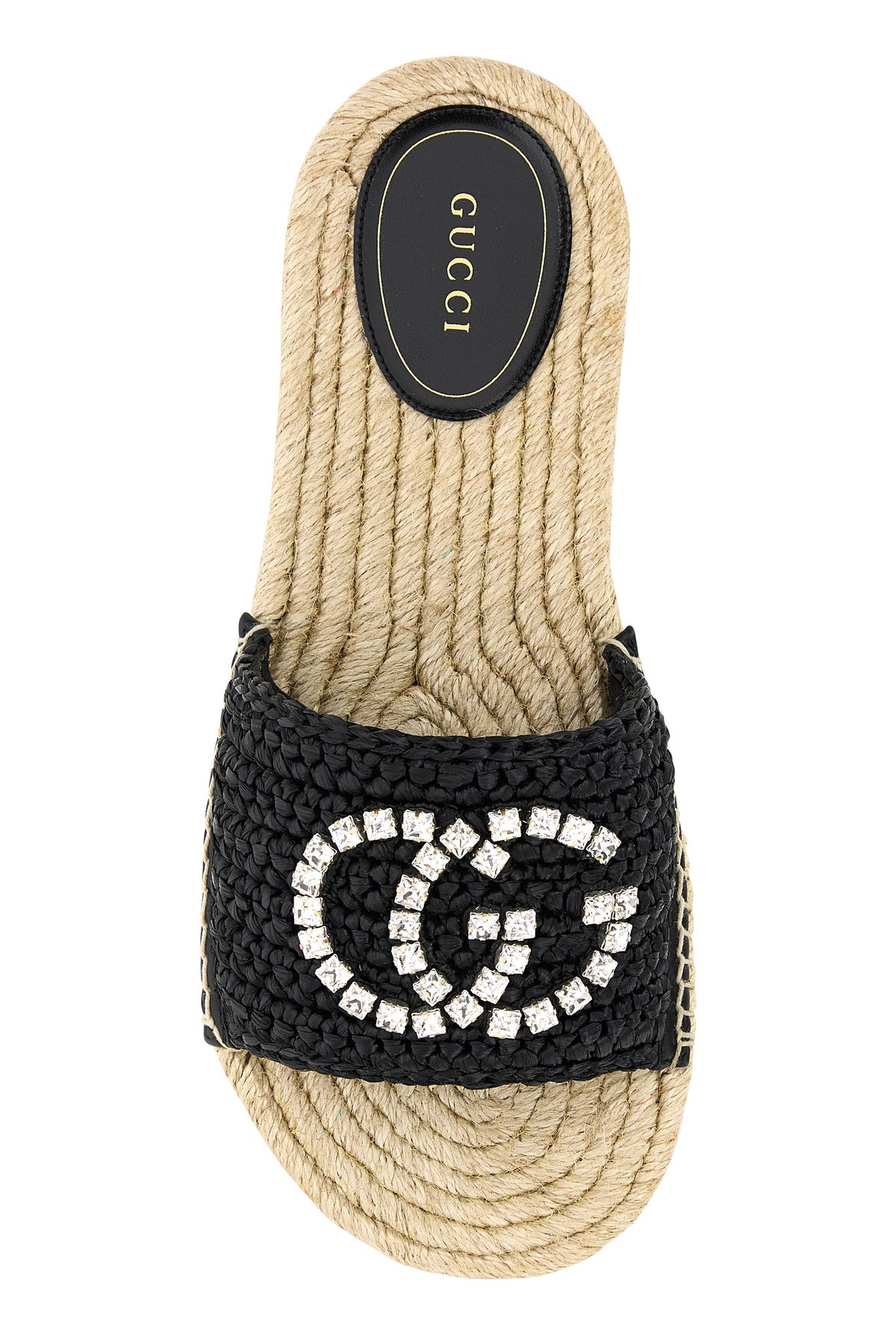 Slippers realized in raffia enriched by rhinestones Incrocio GG on the instep.