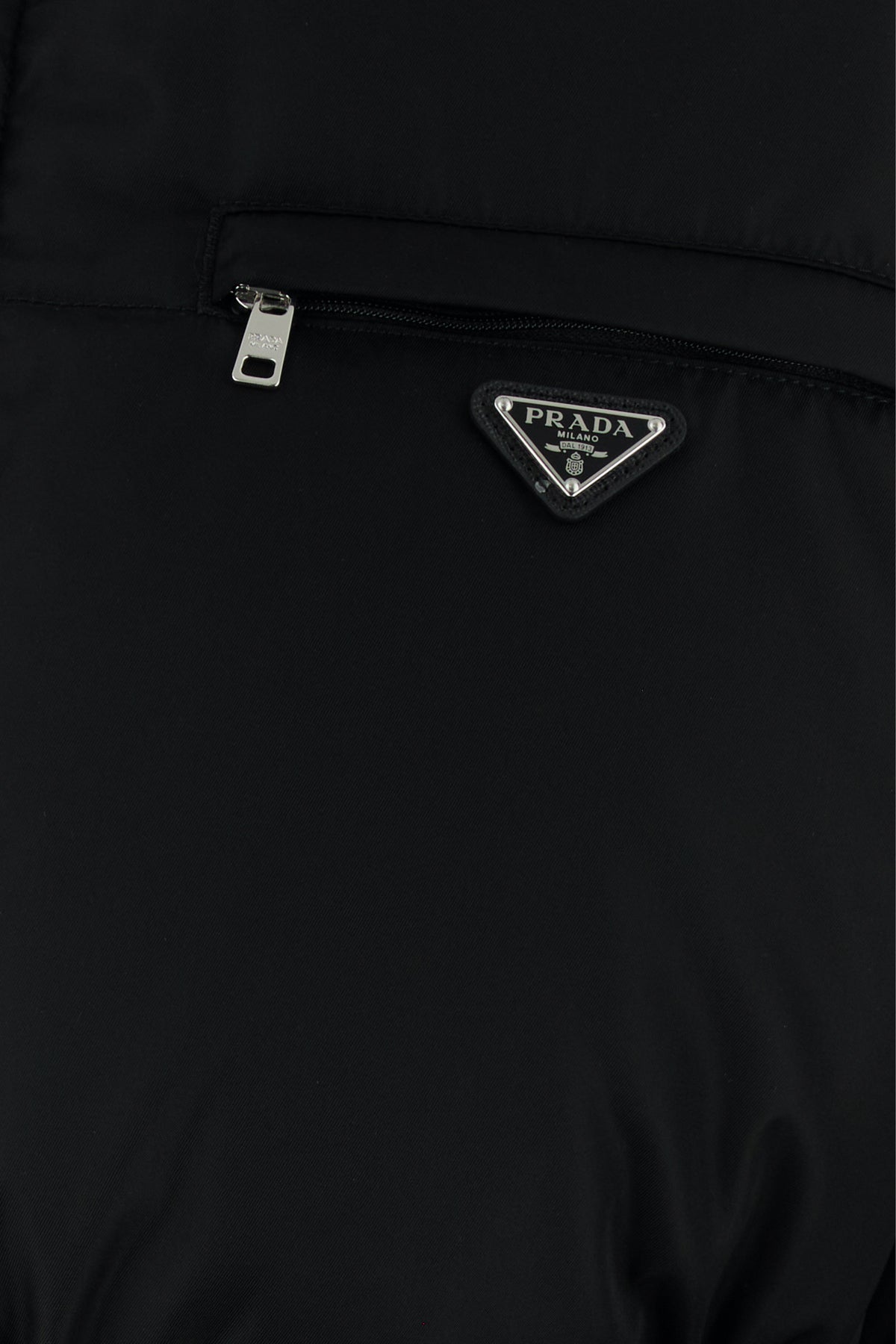 Down jacket realized in quilted Re-Nylon enriched by metal iconic logoed triangle on the chest.