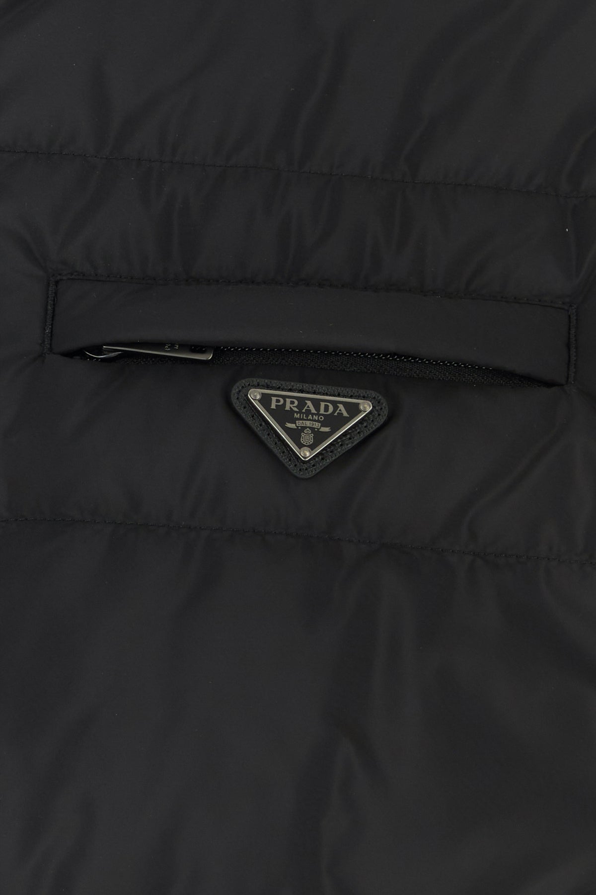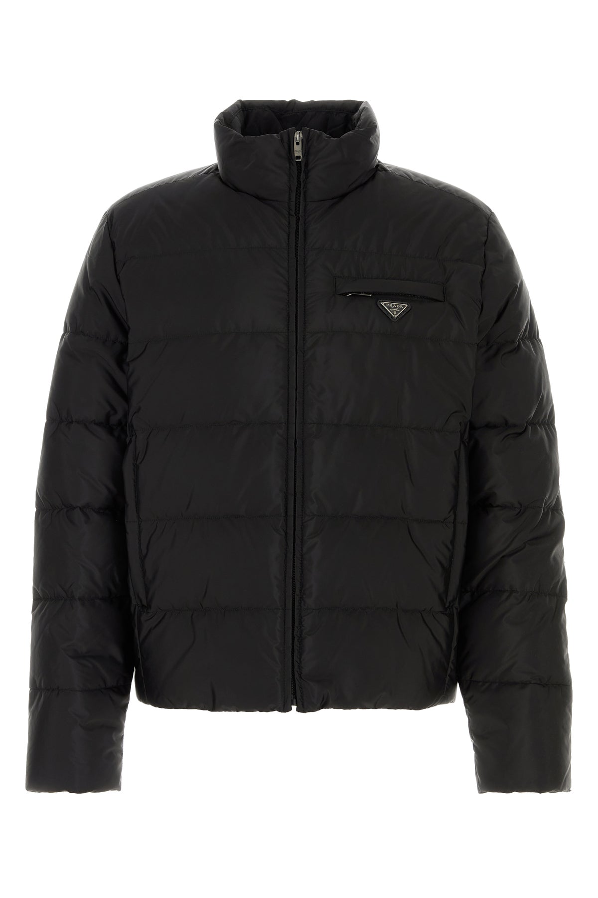 Down jacket realized in Re-Nylon enriched by iconic logoed metal triangle on the chest.