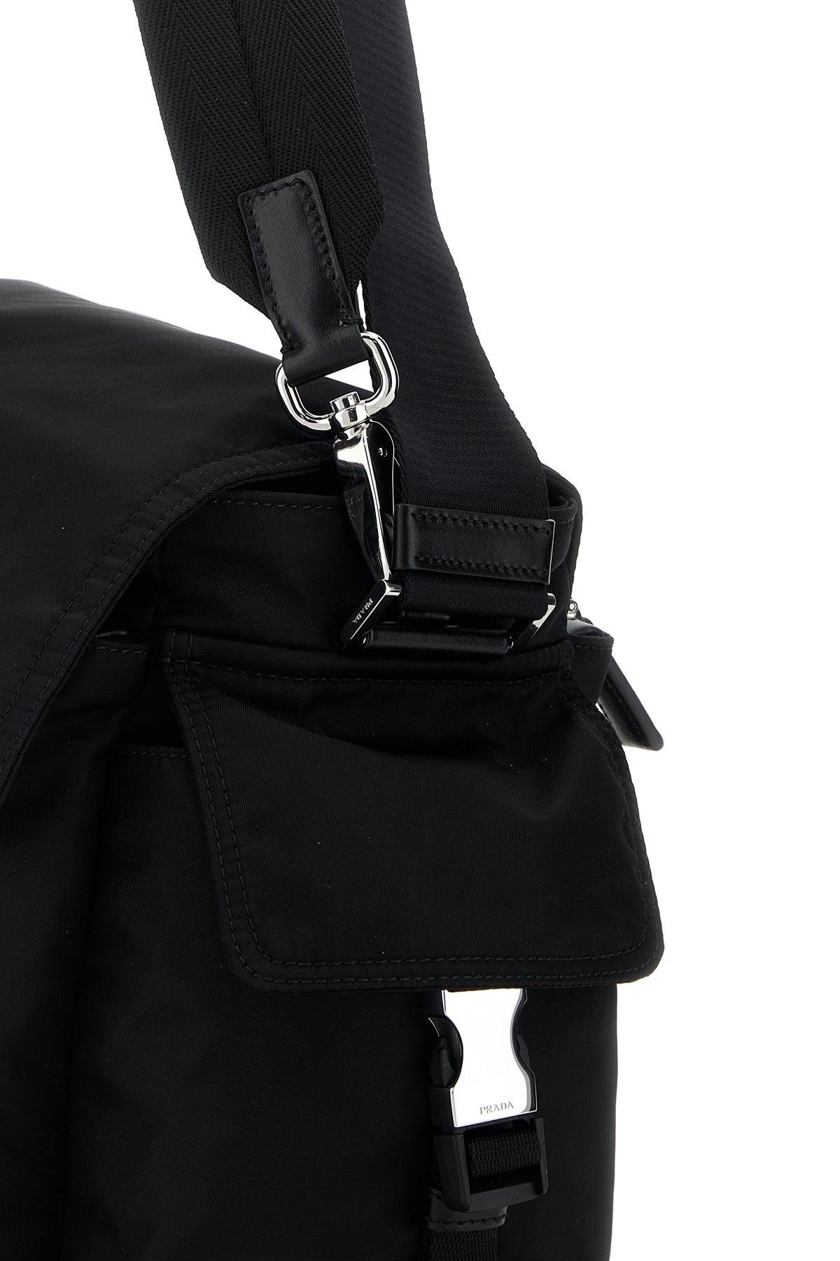 Shoulder bag realized in Re-Nylon enriched by iconic logoed metal triangle at the front.